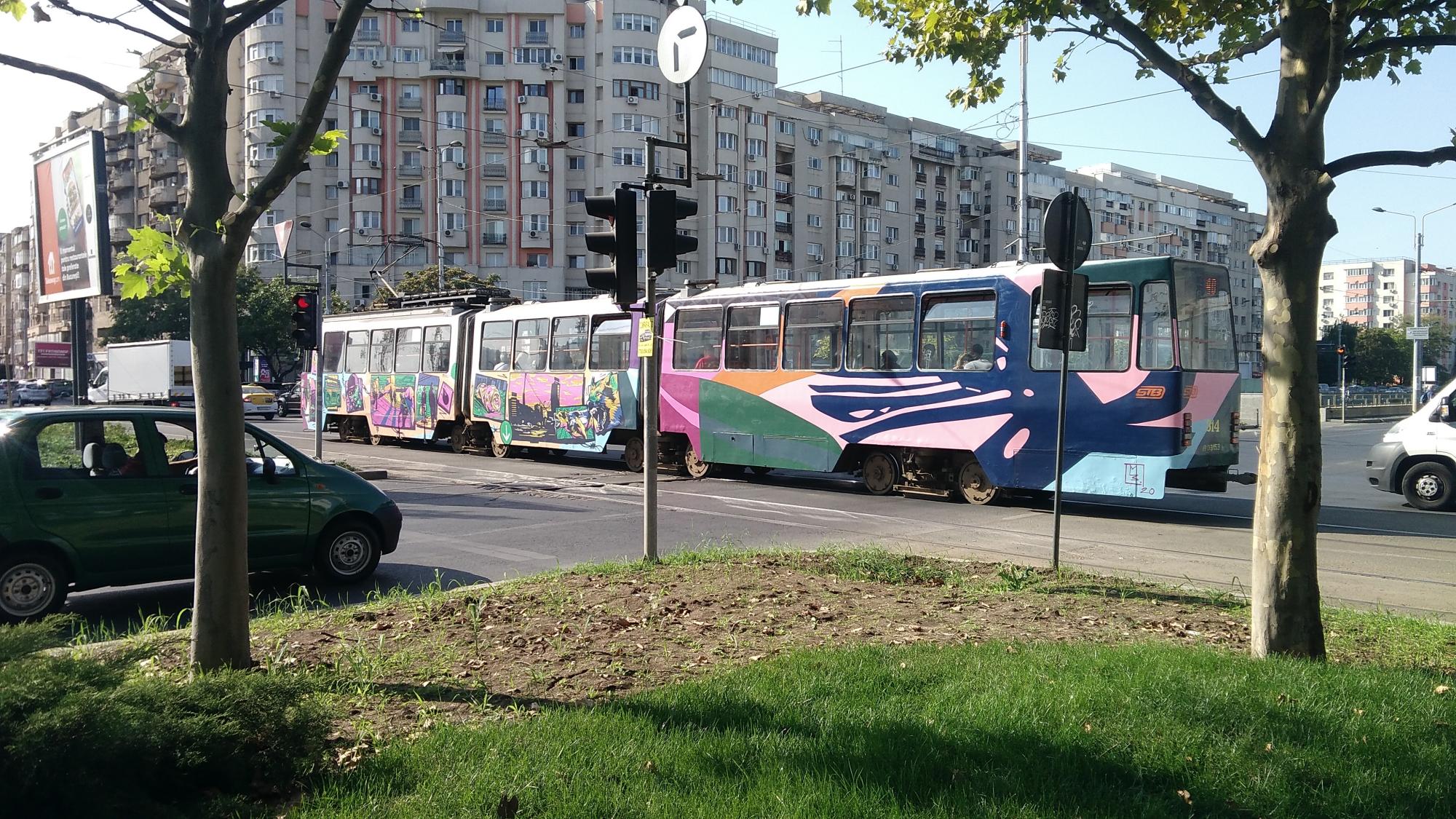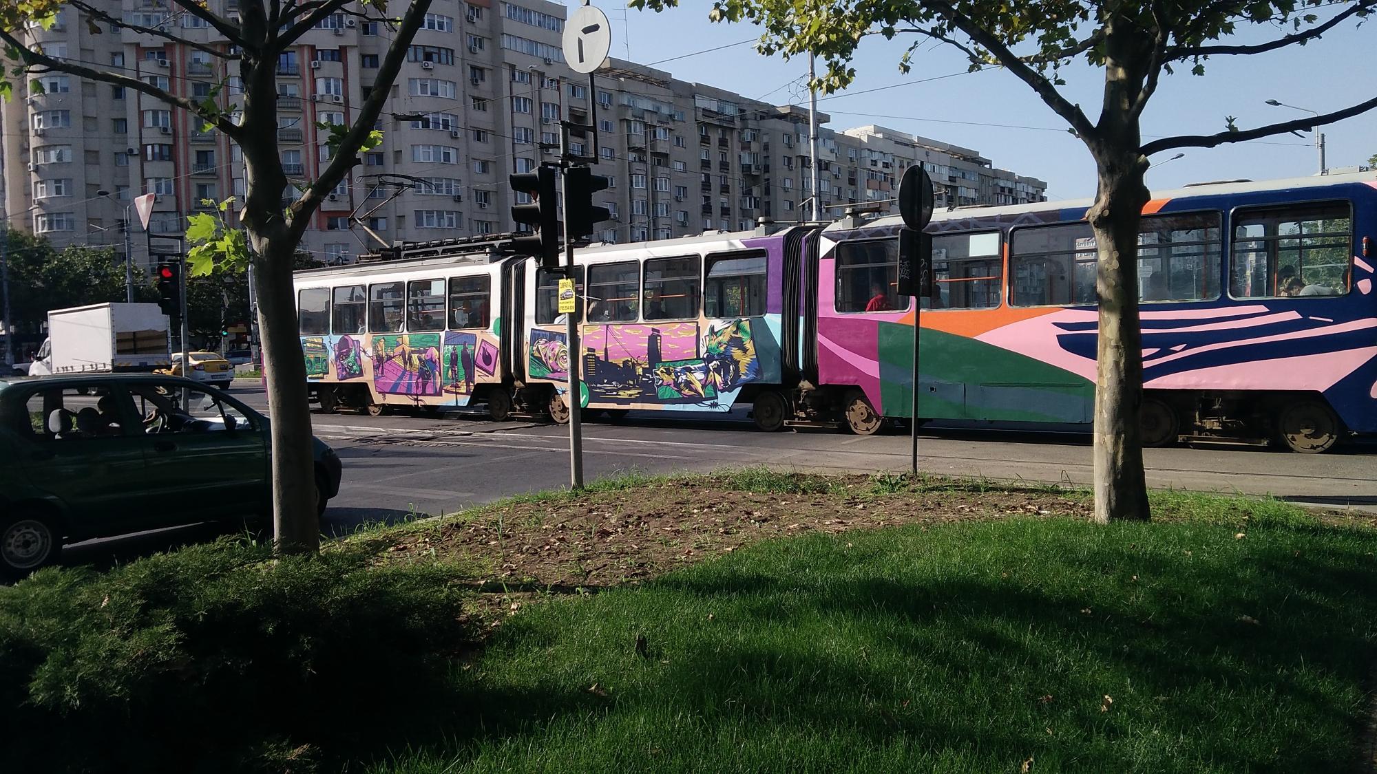 De azi avem cateva tramvaie moscolite/mozolite/pictate/imbogatite cultural/whatever prin Bucuresti. N-am surpins decat unul dingur din cele 6-7...