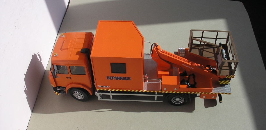 Salut.As dori sa va prezint cateva din machetele pe care le-am facut de-a lungul timpului.Tin sa precizez ca sunt facute plecand de la kituri de constructie aflate pe piata.Incep cu o masina de interventie pt liniile electrice ale tramvaielor si troleelor.Aceasta nu este o copie fidela existand mai multe modele functie de sasiul folosit sau de aria de interventie.