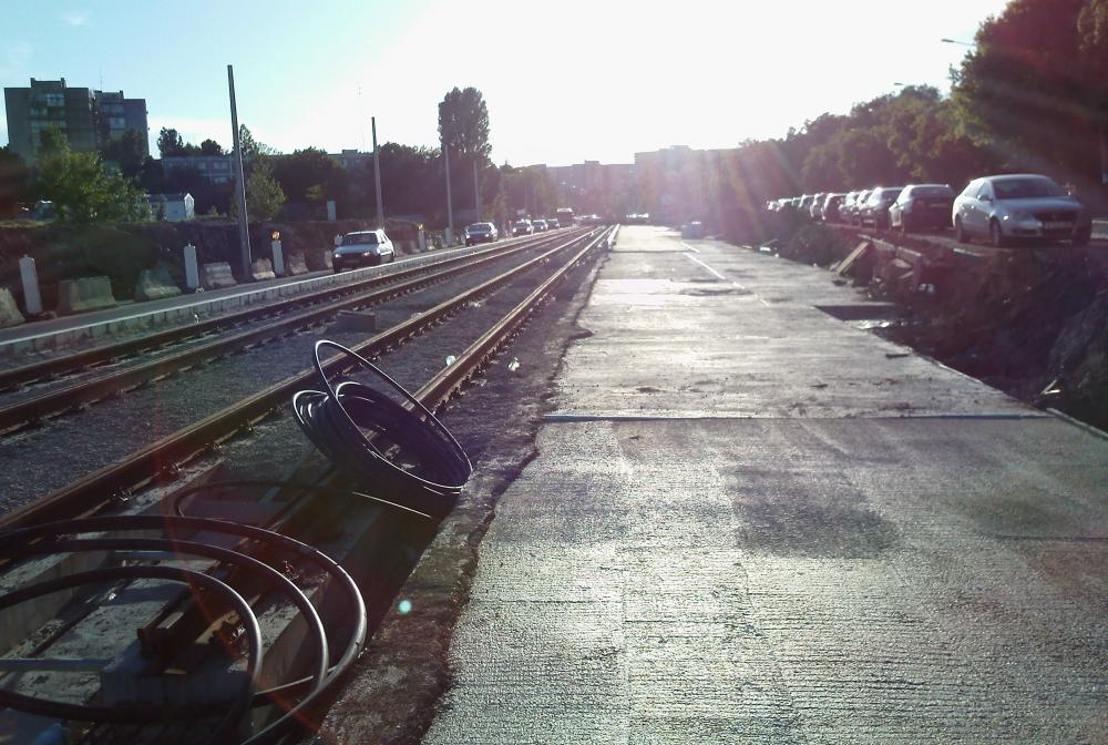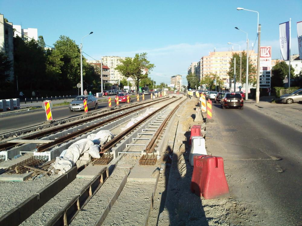 Saga tramvaiului se apropie de un final agonizant. S-au lipit toate amortizoarele pe linii, mai sunt doua refugii de pavat si aranjat, niste semafoare si niste pamant pluz accesoriile de la sistemul de irigare si... gata(?).