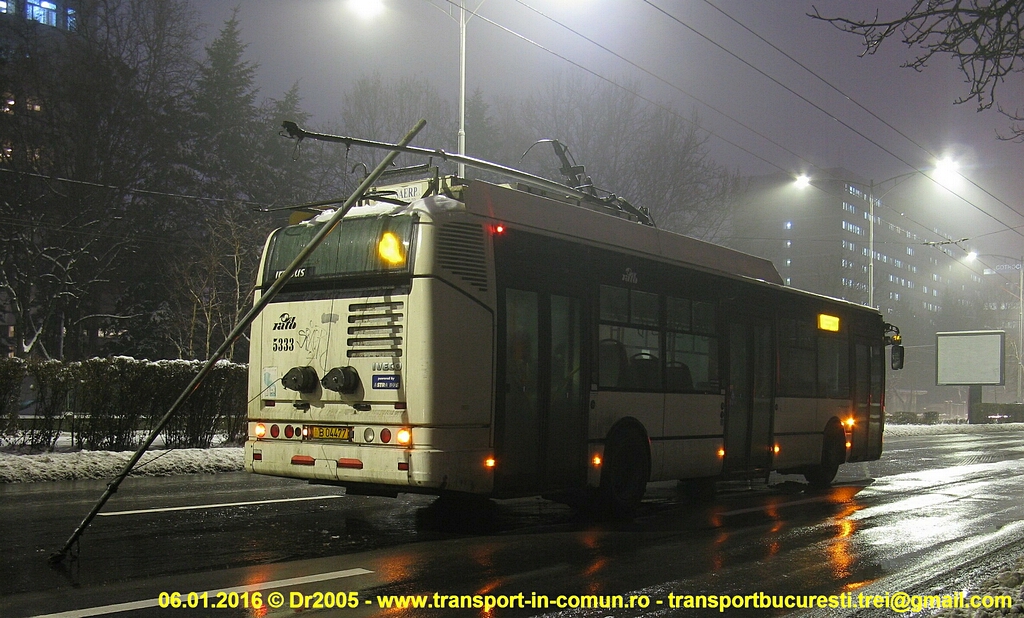 #5333 (linia 90) şi-a rupt un captator acum câteva ore în zona macazului de pe Bd. Iuliu Maniu. Macazul respectiv face probleme de ieri, se schimbă doar când vrea şi cum vrea (ca în fiecare iarnă), dar cum o fi reuşit şoferul să smulgă captatorul... a defirat şi a agăţat inima de încrucişare? Altă explicaţie nu văd.