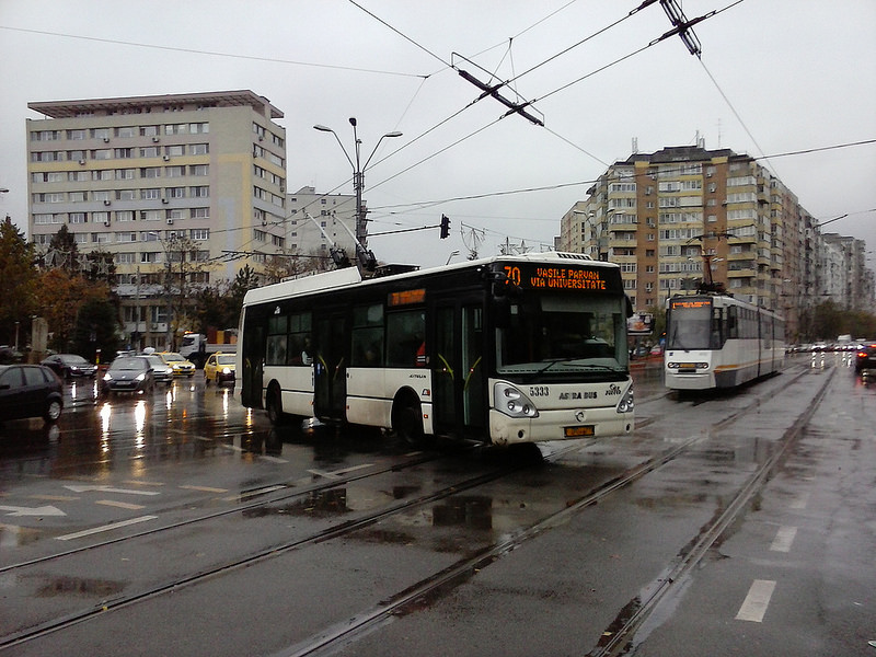 Dacă aveţi nevoie de troleibuzele de pe liniile 61, 62, 69, 90, 91, 93, 96, mai bine o luaţi pe jos. Un Irisbus a rupt macazul de la Podul Eroilor (pe Splai, sensul spre Cotroceni). Evident, a fost decuplat centrul de alimentare respectiv (alimentat de substaţia Cotroceni), ceea ce a lăsat pe dreapta toate troleibuzele de pe Şos. Cotroceni şi Str. Constantin Noica.