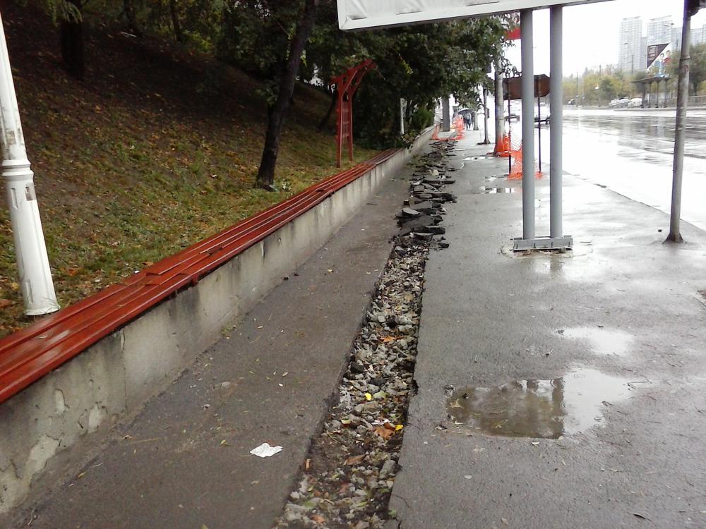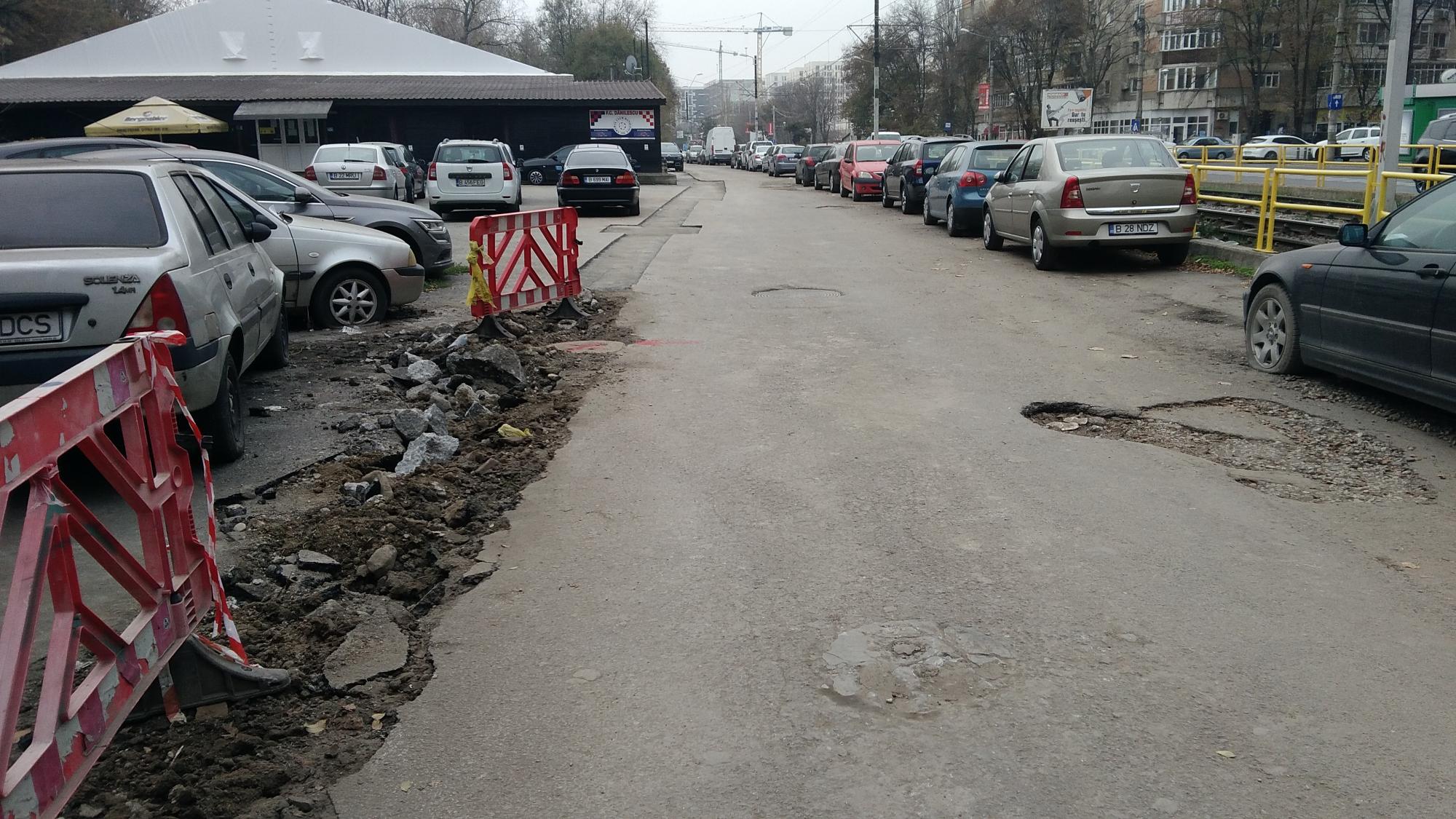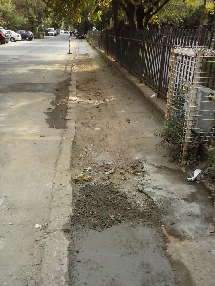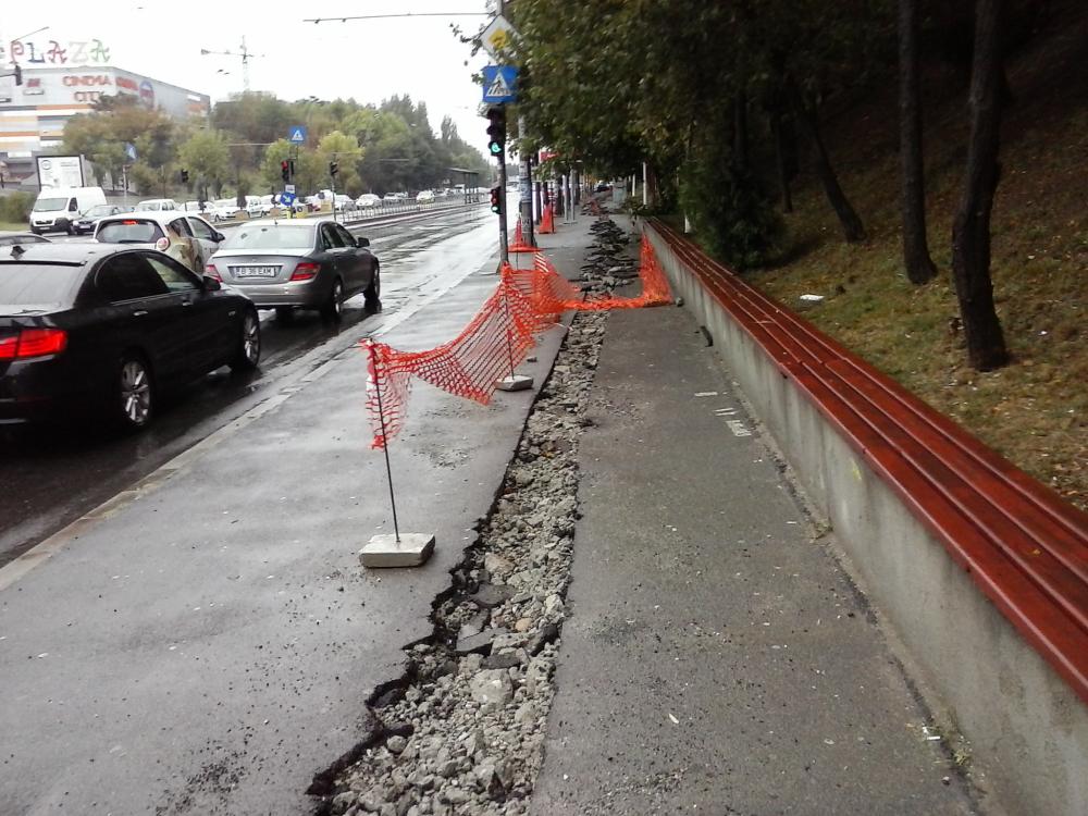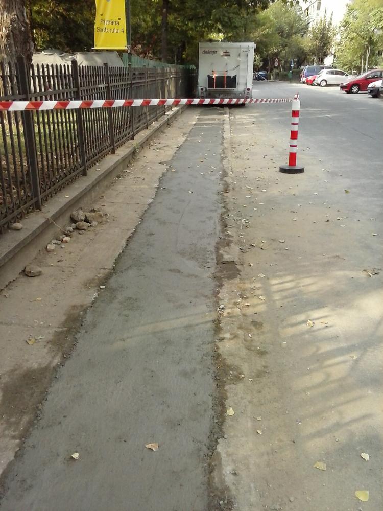 Marcajele de pe Vacaresti, zona Arhive, deja s-a inceput spargerea trotuarului.