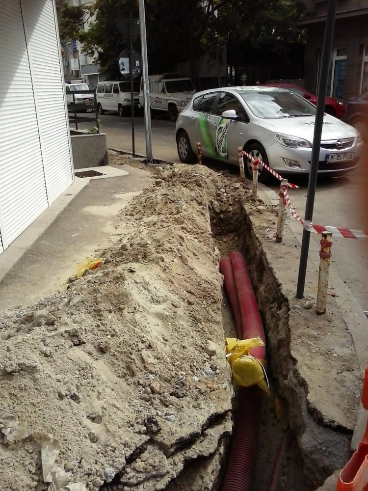 Pe Bd. Geniului de la Leu spre Razoare se trage ceva racord electric, se vad copexuri rosii dar si tubulatura rigida. Mai departe e posibil sa mearga lucrarea in lungul liniei de tren spre AFI dat fiind ca la trecerea la nivel cu CF de pe Milea se executa si niste foraje orizontale pe sub bulevard.