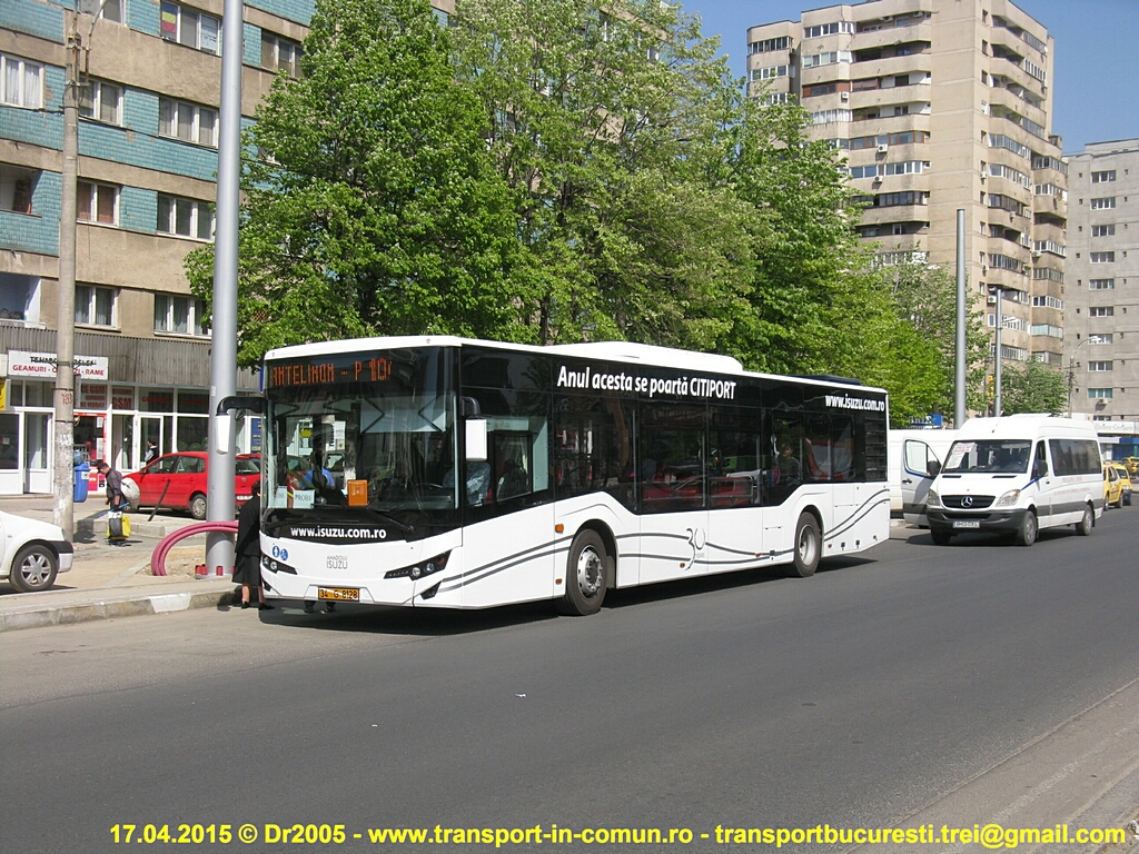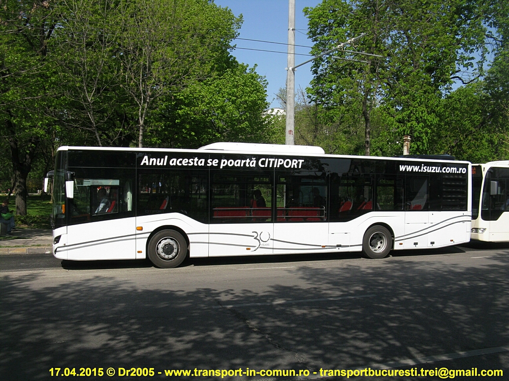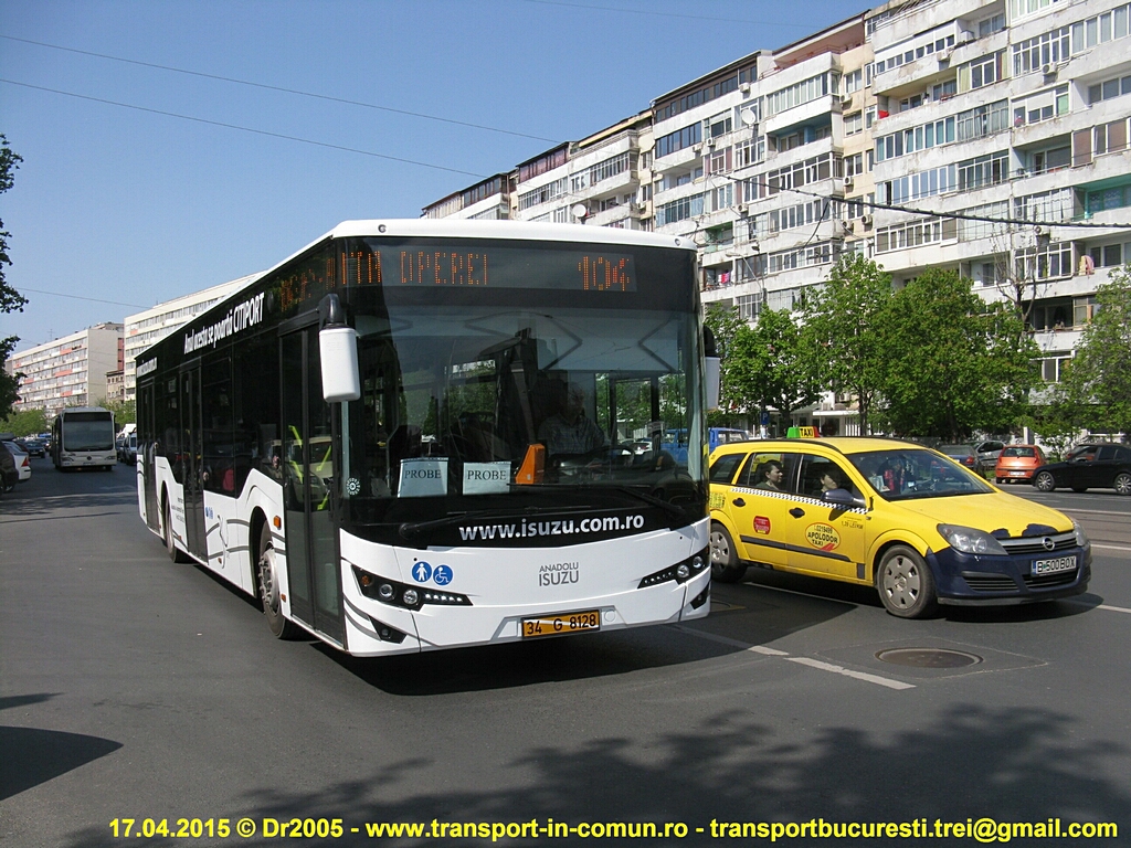 Autobuzul Isuzu Citiport cu numărul de înmatriculare 34-G-8128 se află în probe la RATB până la data de 1 Mai 2015. Călătoria este gratuită, chiar dacă în autobuz se află în permanenţă un controlor. Va circula în continuare pe linia 104.