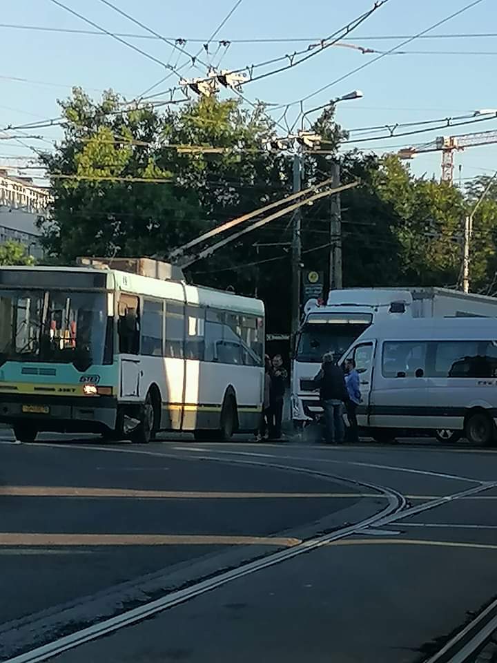 Astazi in jurul oreu 06:02, un troleibuz de pe linia 97 a fost implicat într-o tamponare ușoară în zona pod Constanța.