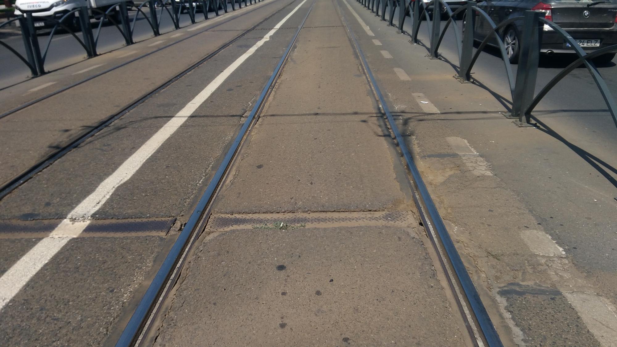 Problema si mai mare va fi cand va ploua si anvelopele vor slini si mazga si noroi. Scurgerile din canalul sinei sunt toate infundate de jeg, la fel si gratarele transversale, n-au mai fost desfundate de secole.