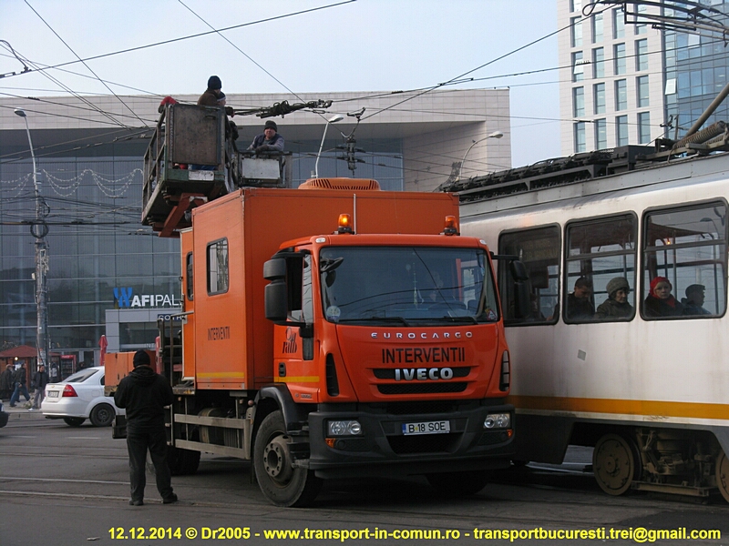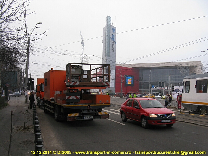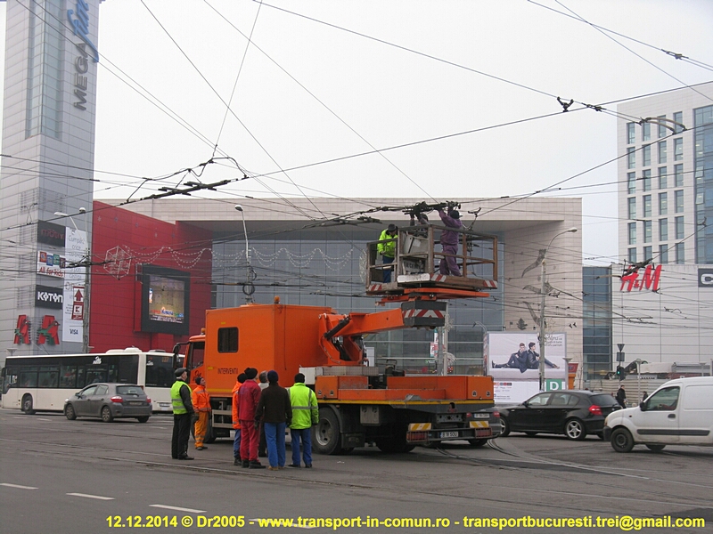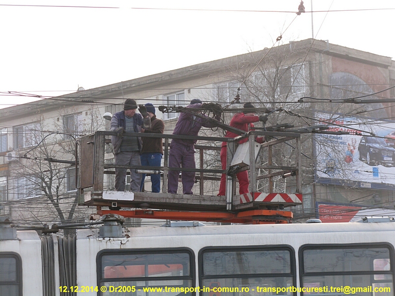 Cum curentul e oprit, se încearcă ,,reparaţia provizorie"... în zonă sunt 2 autoturnuri (în curând vine şi al treilea) şi o maşină de tractare, cu o groază de personal RATB. Lucrează 4 oameni pe platformă + şoferul care dirijează maşina şi cu ,,Nea Ion" care fac semne de jos cum să mute maşina. Restul se uită, discută, îşi dau cu părerea...