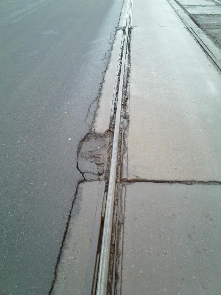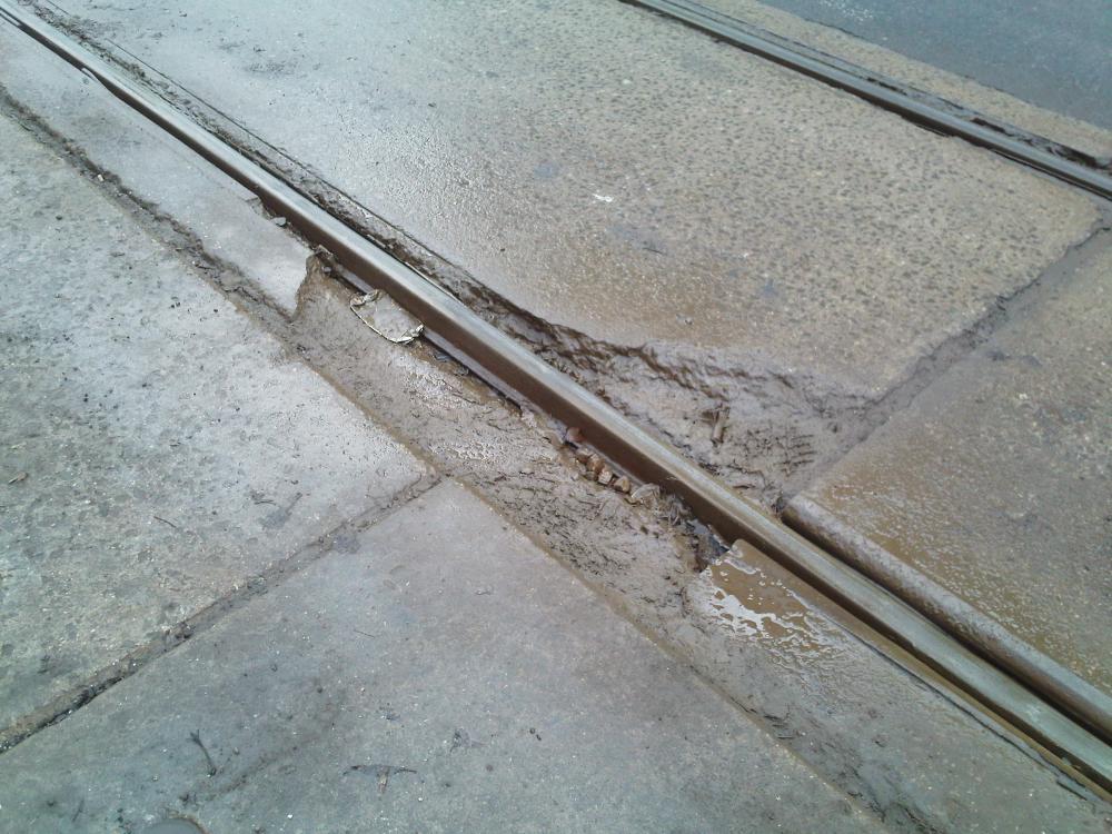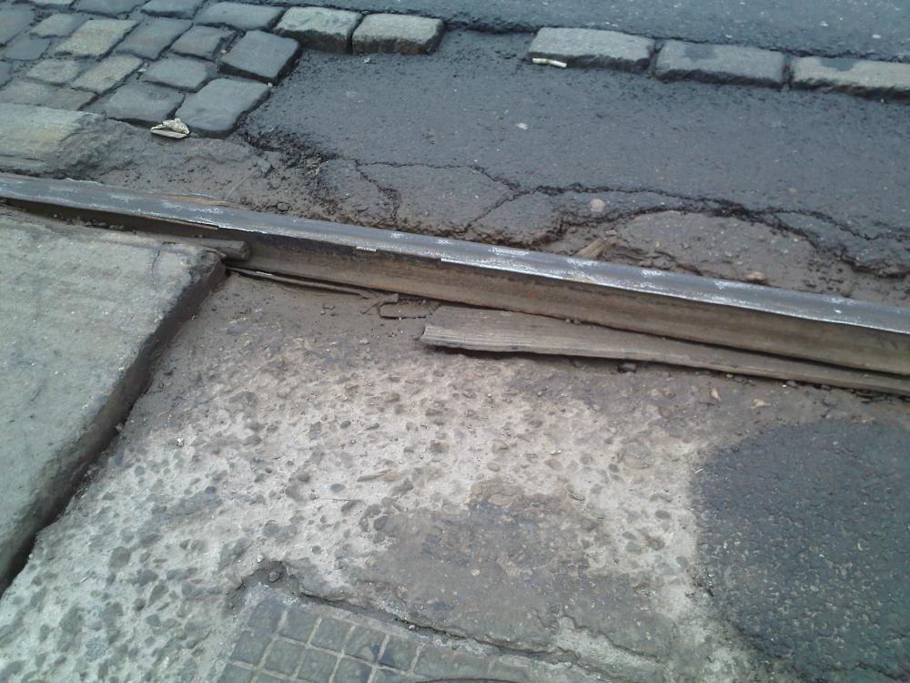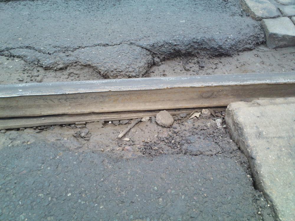 Pana acum mi-am facut probleme numai legat de partea de infrasctructura de tramvai cea mai veche, pe sistemul longrine cu sina "otelul rosu". Zilele trecute insa a fost o deraiere pe Mosilor vechi. Azi... din intamplare am observat ceva pe str. Viitorului. :shock: :o