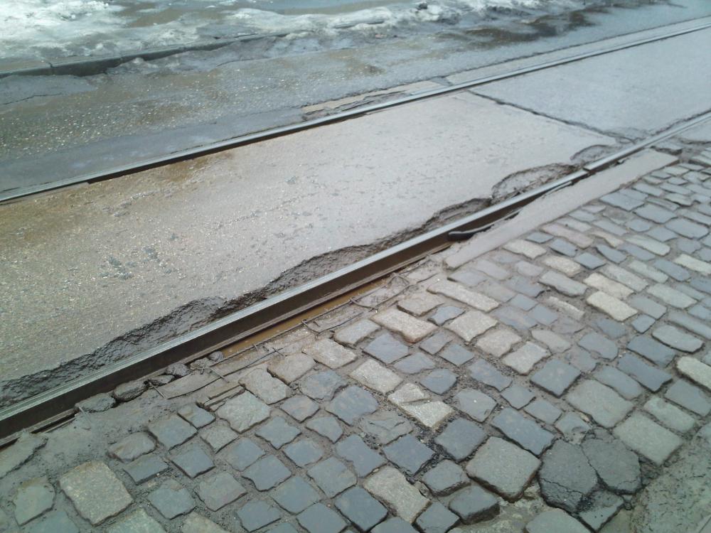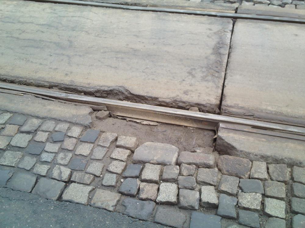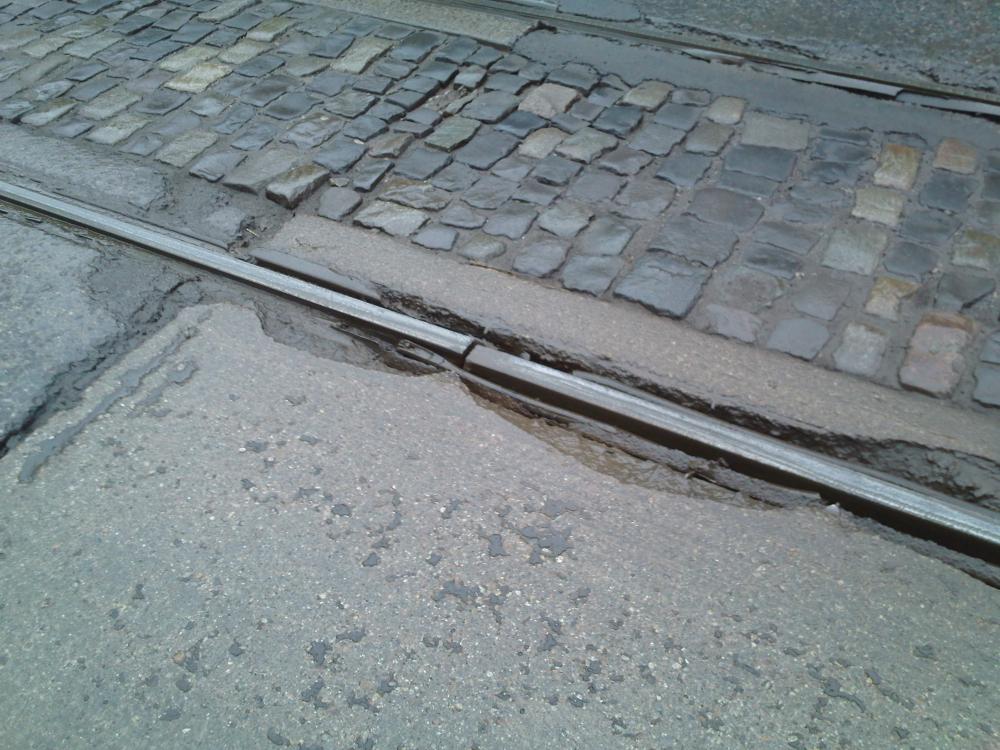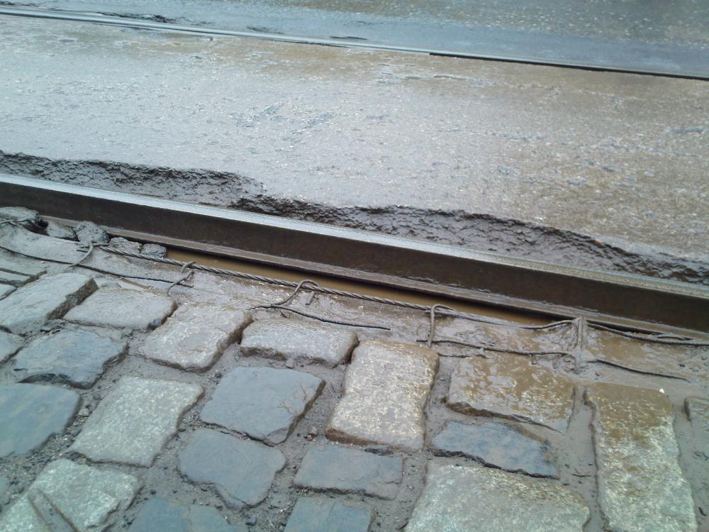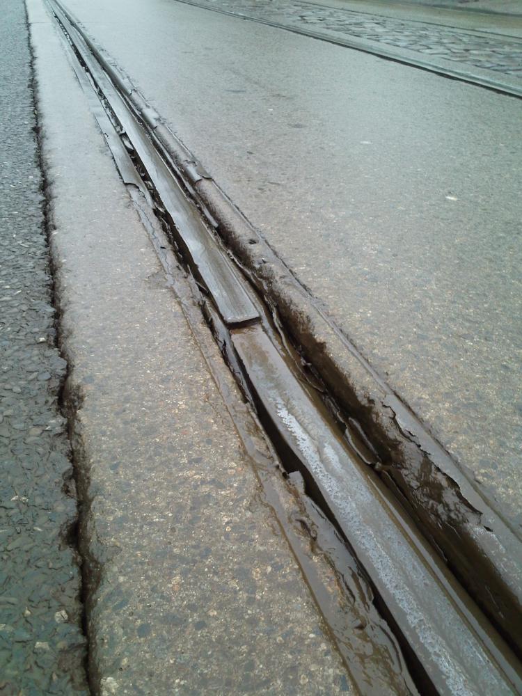 Pana acum mi-am facut probleme numai legat de partea de infrasctructura de tramvai cea mai veche, pe sistemul longrine cu sina "otelul rosu". Zilele trecute insa a fost o deraiere pe Mosilor vechi. Azi... din intamplare am observat ceva pe str. Viitorului. :shock: :o