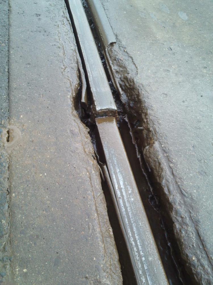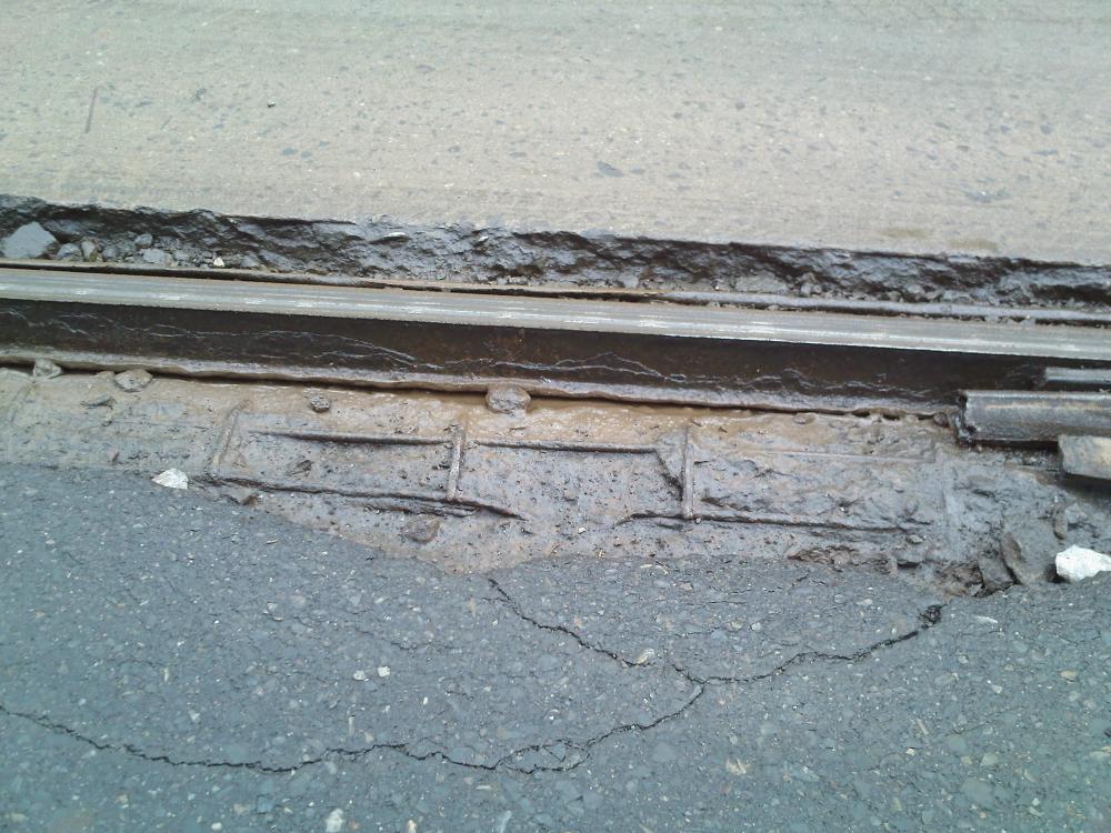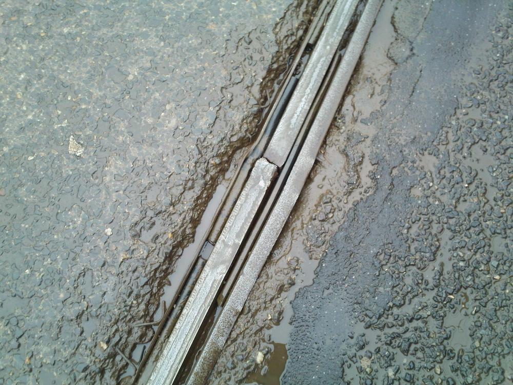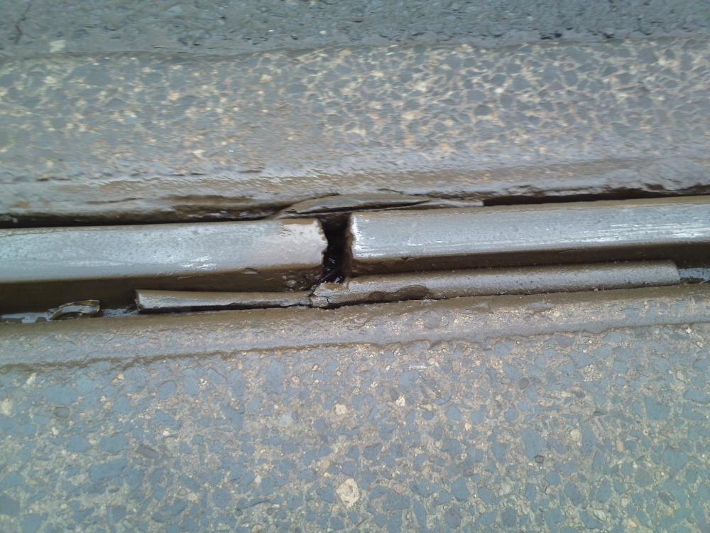 Asa arata zona in cauza azi. Carpeala abominabila, joanta sudata si intarita cu platbanda sudata pe lateralul sinei, ca loc este destul canalul sinei nu mai exista de multa vreme.