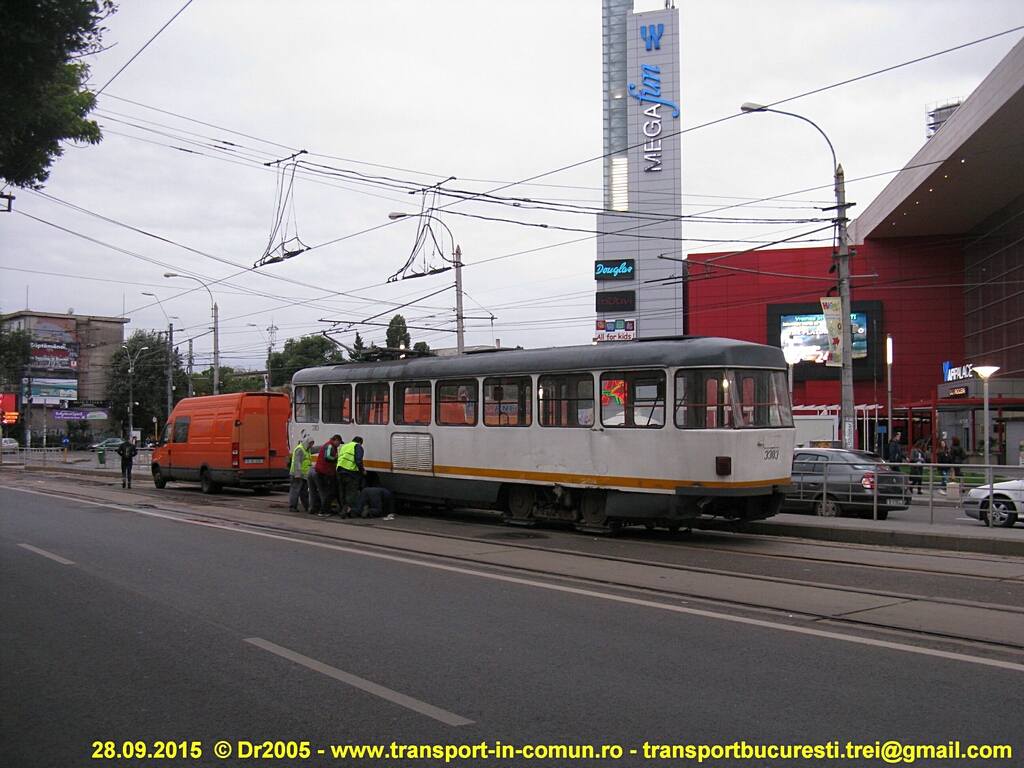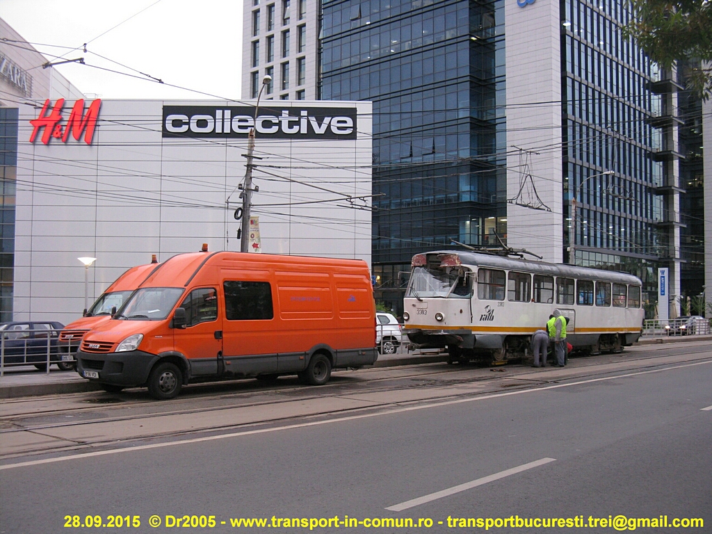 15:15 #3382 l-a luat in cupla pe un nene grabit care a trecut cu Cielo cam pe rosu la interectia Timisoara cu Valea Oltului. Avariile vagonului sunt minore. A continuat cursa.