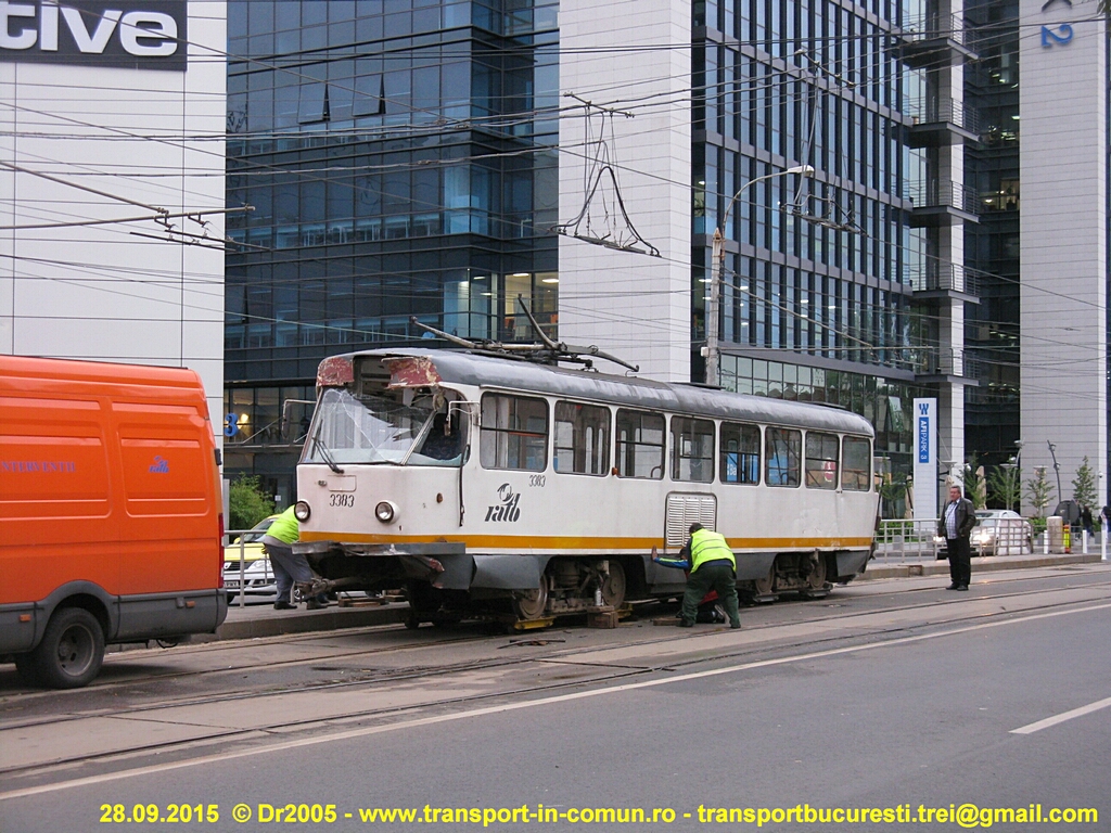 Vagonul #3383 (cu afişaj lateral pe linia 35) avea partea din faţă tamponată, era lovit pe partea stângă, avea pantograful rupt şi părea a avea probleme cu boghiurile, acestea fiind urcate pe cărucioare, ceea ce poate arăta probleme cu crapodina, osiile montate, traversa dansantă sau, cel mai grav, şasiul:
