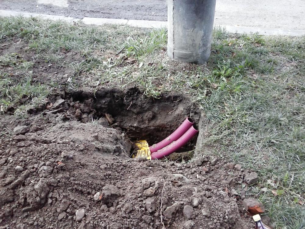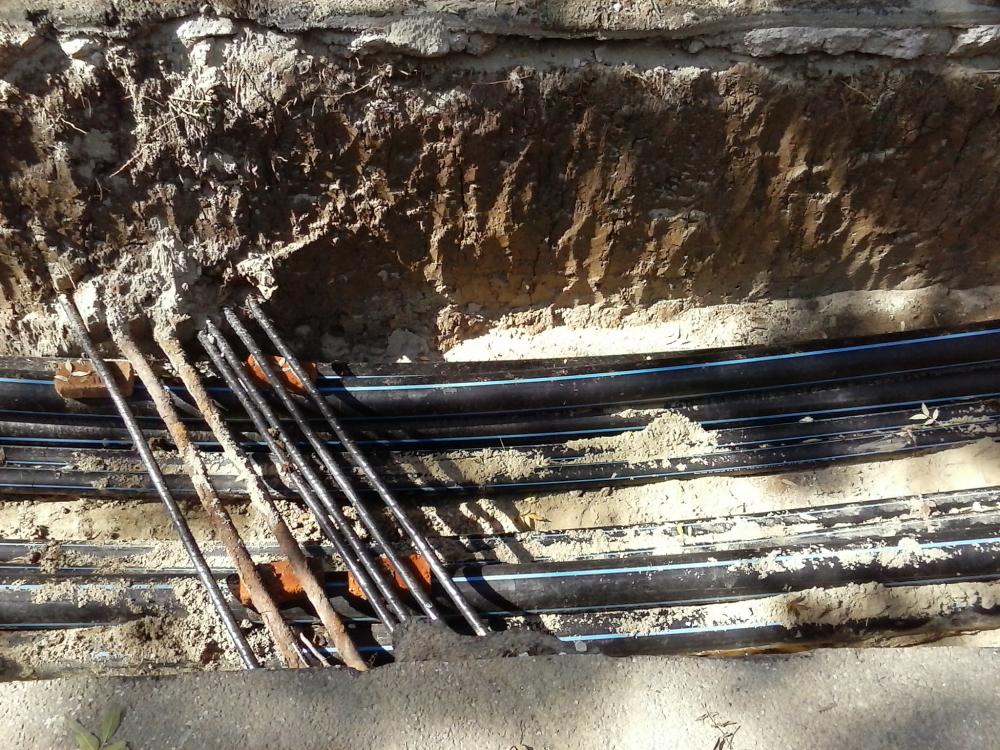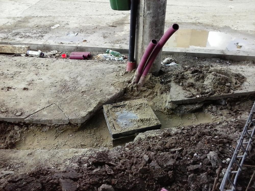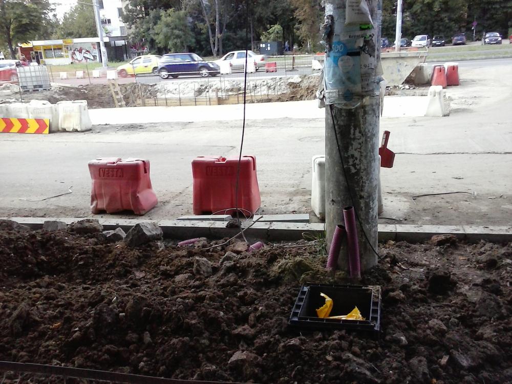Avem cabluri trase prin tuburi, pentru iluminat. Stalpi metalici... ca peste tot.