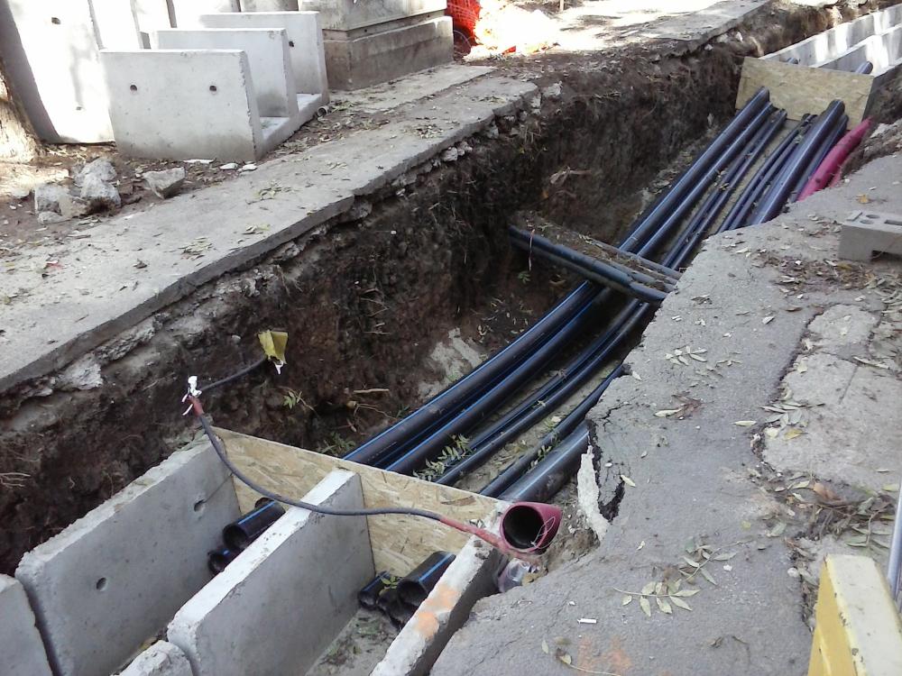 Din zona acces CH pleaca santul asta pentru iluminat prin spate pe la DT65. Prin fata pe la DT65 este un alt sant, la bulevard, tot pentru iluminat.