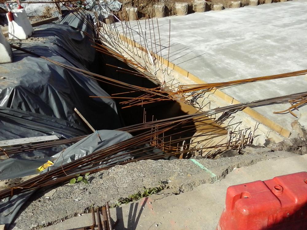 Niste capete de coloane forate sparte. Ma intreb, cum va fi cu infiltratiile acolo unde planseul superior nu sade pe coloane si este prind in mustati infipte. Cu tot casetatul...