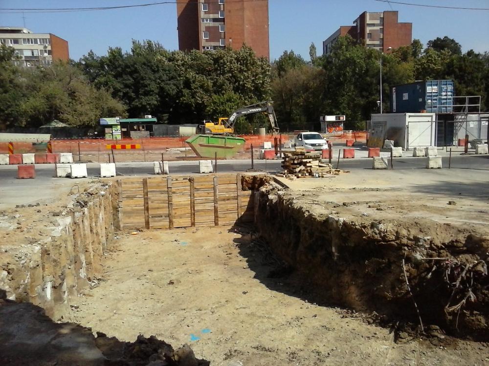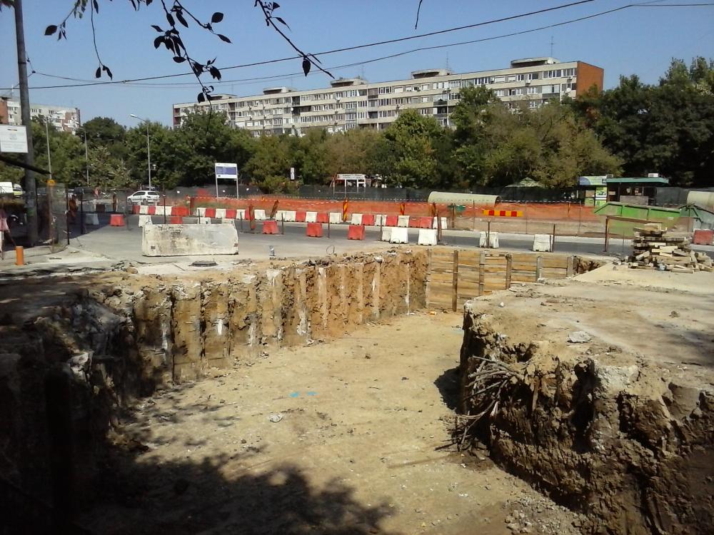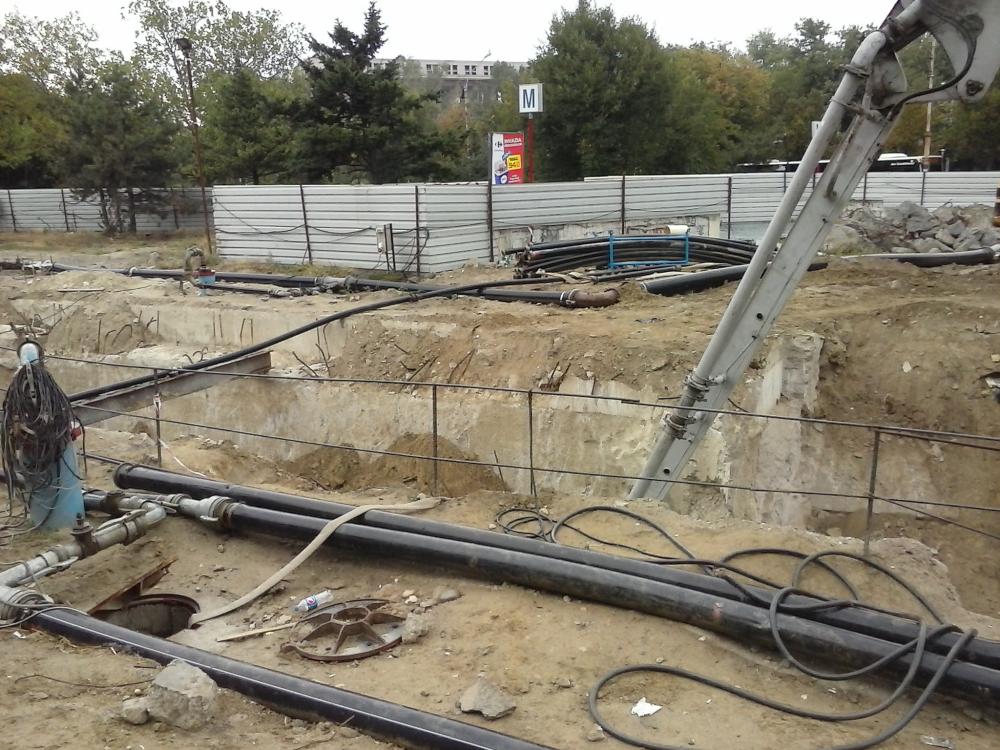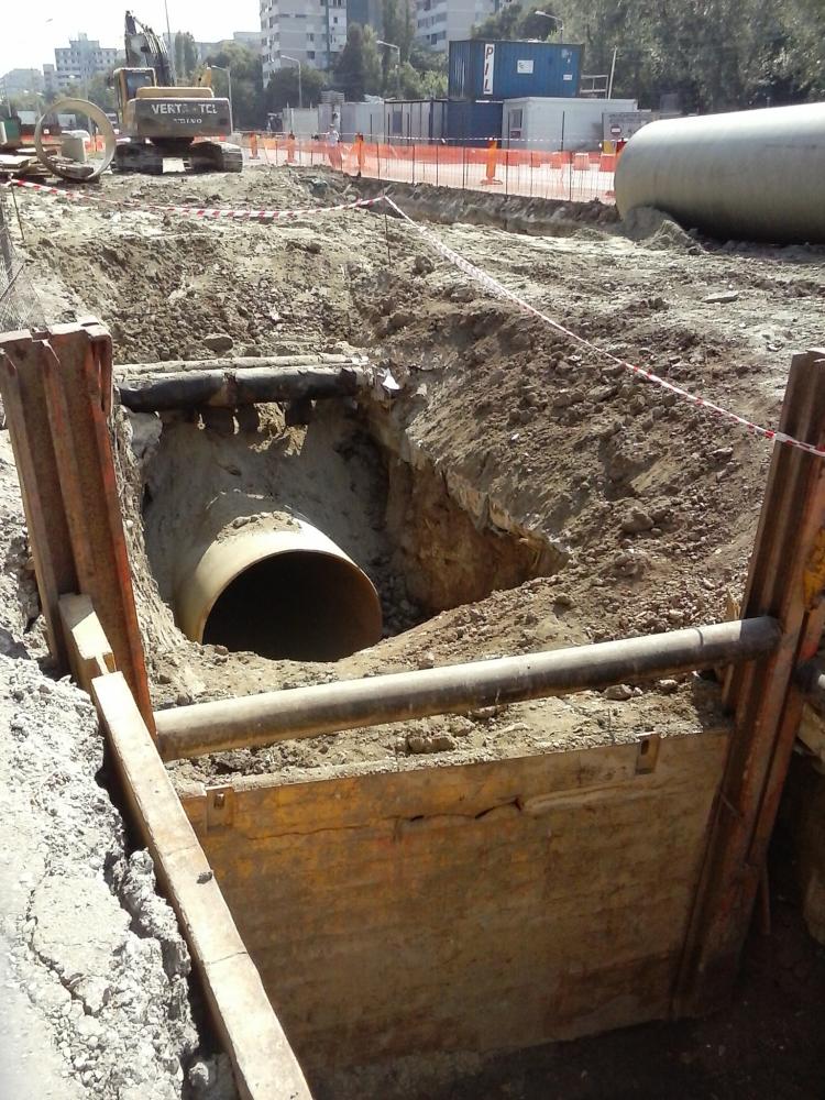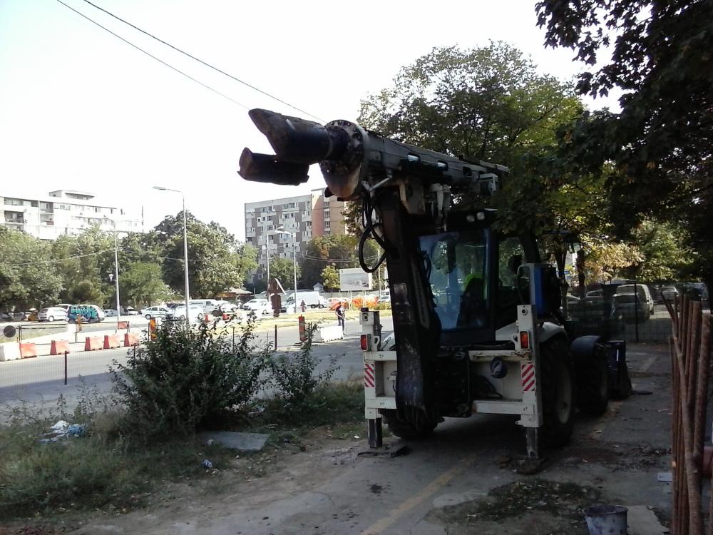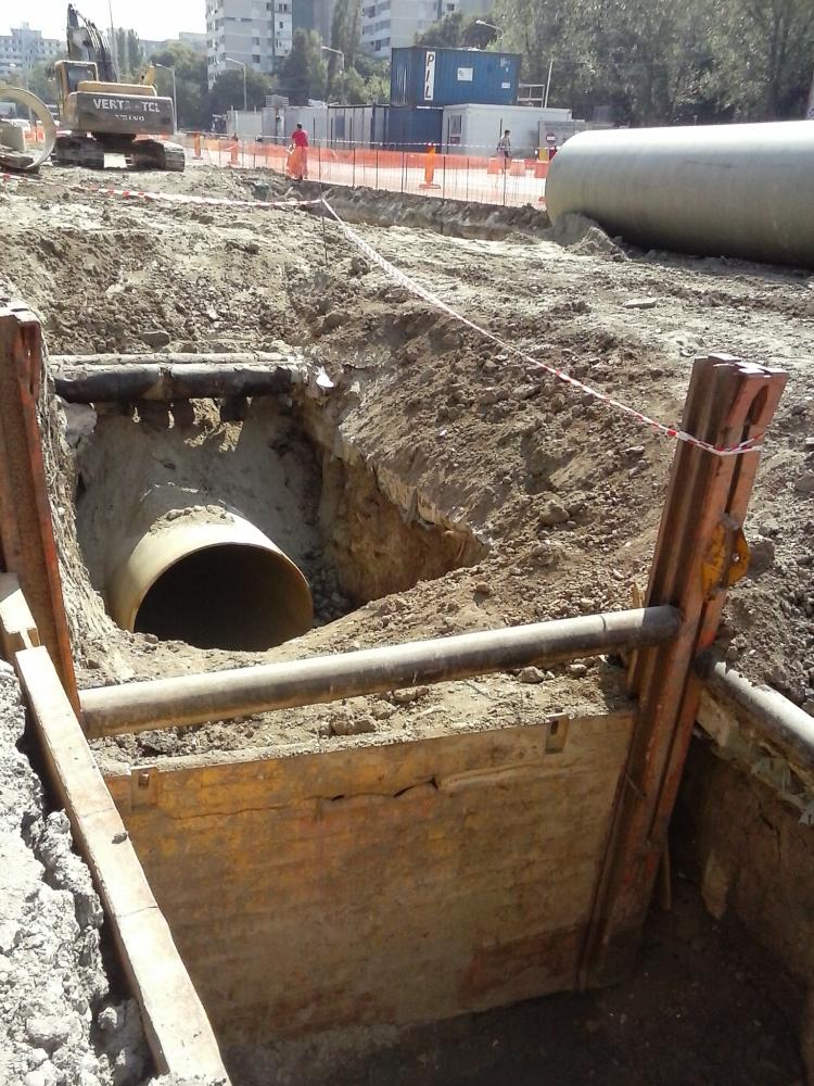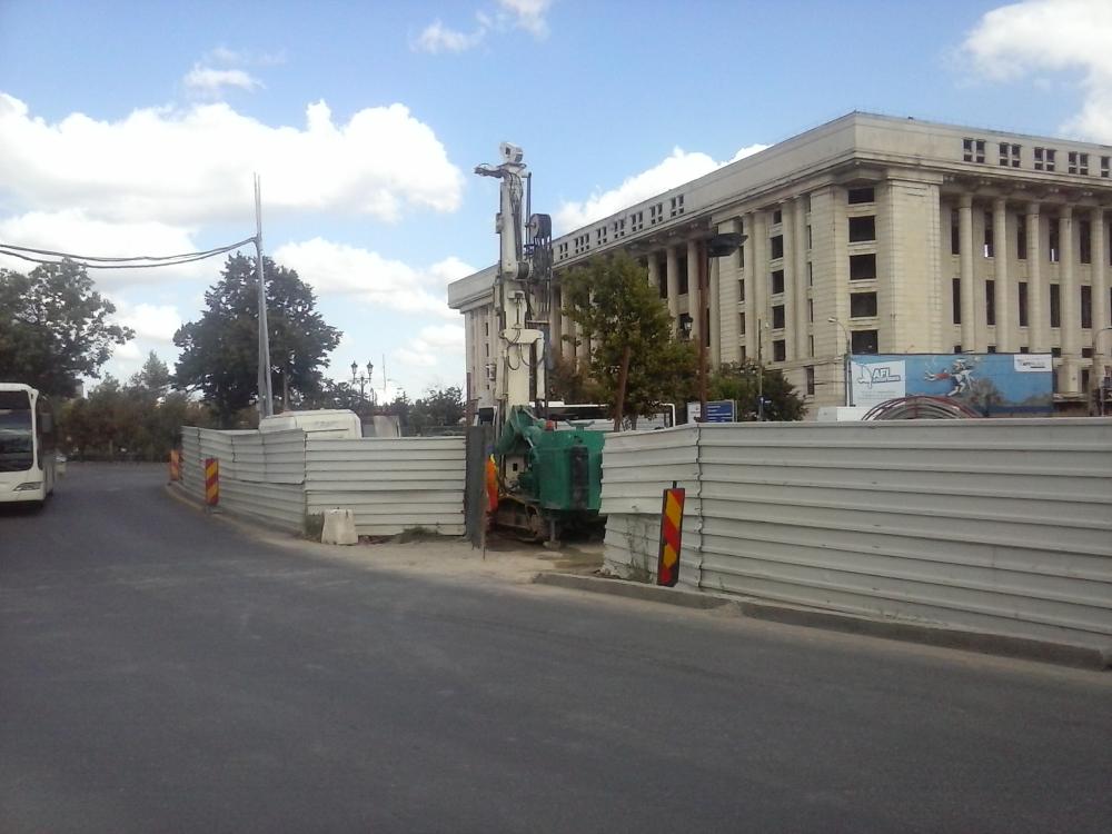 Langa putul de pe Splai, prin care se va lucra la spargerea prealabila a peretilor mulati de la M1 pentru trecerea TBM-urilor spre PSS Opera. Se fac injectii pentru "fortificarea" solului.