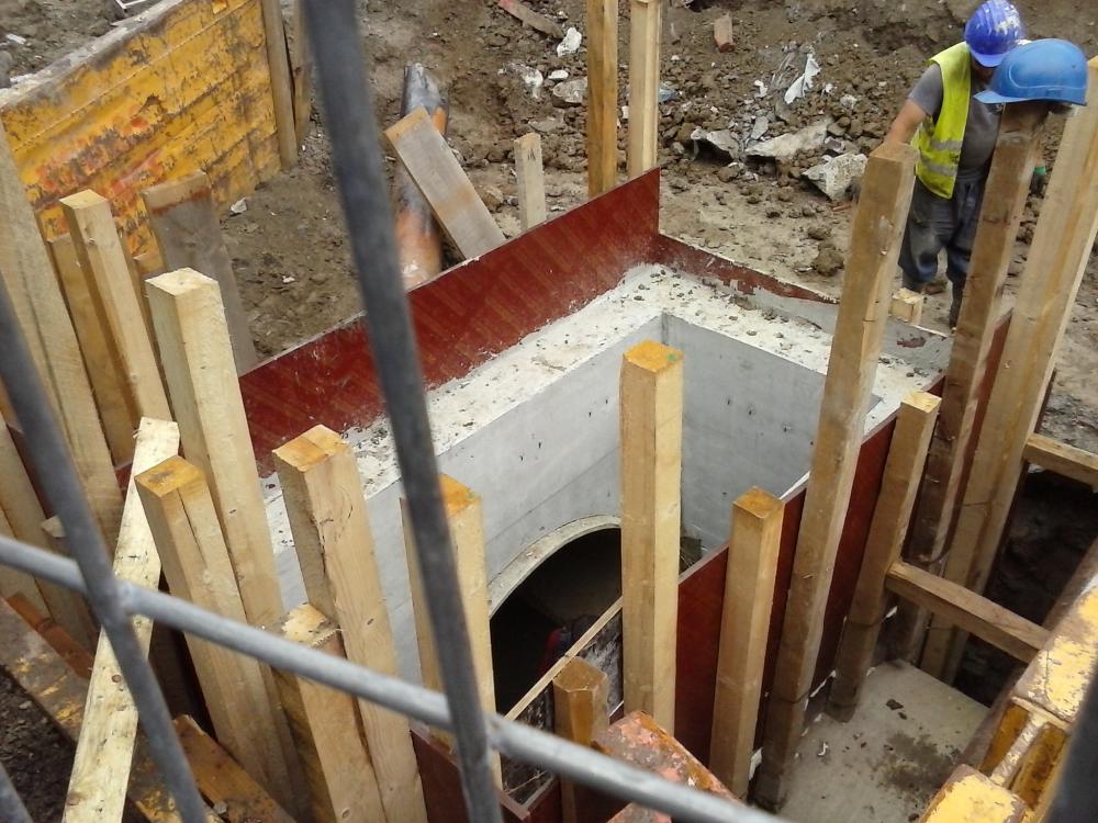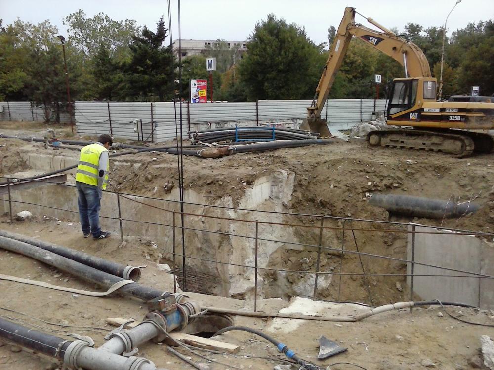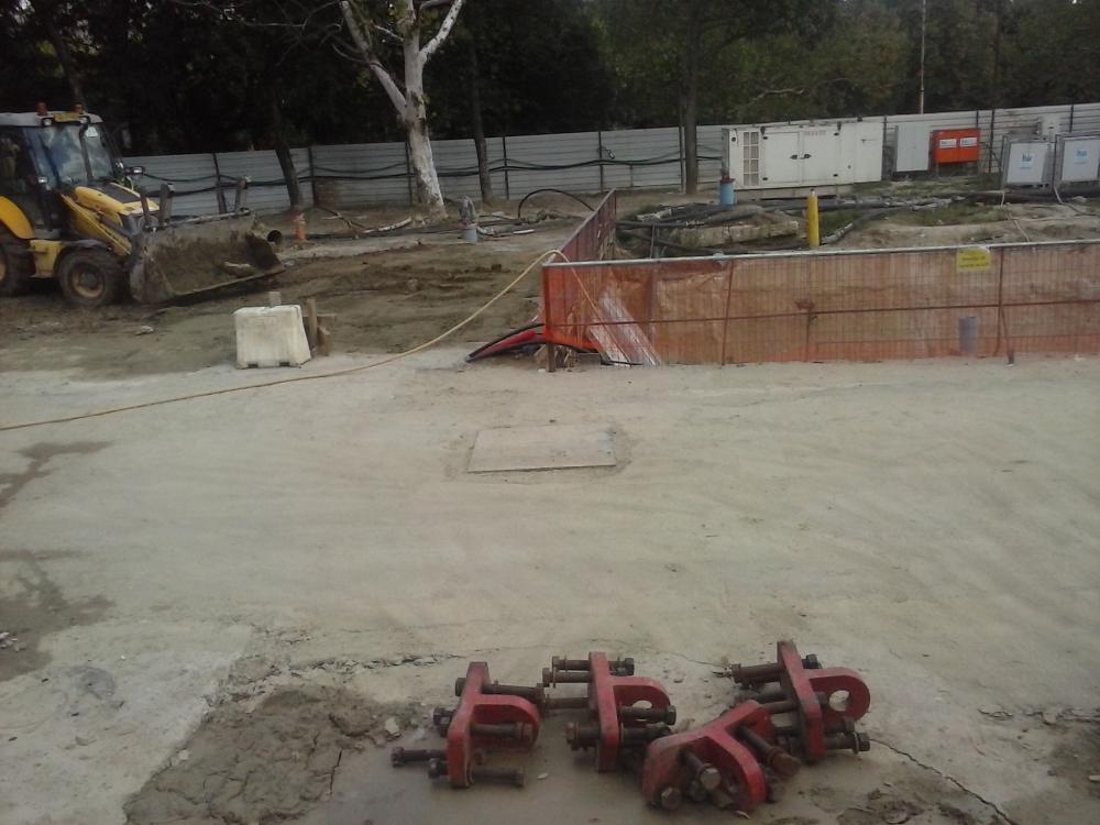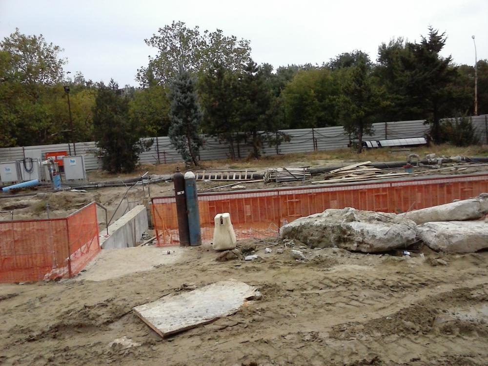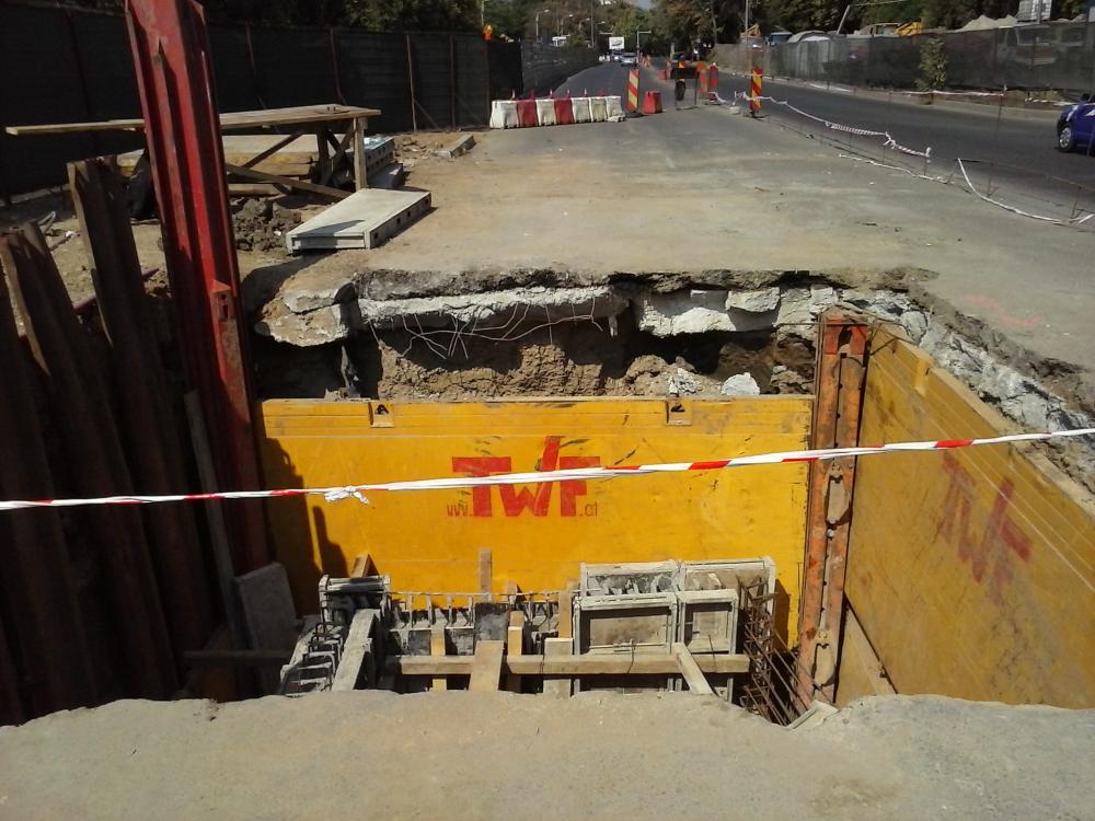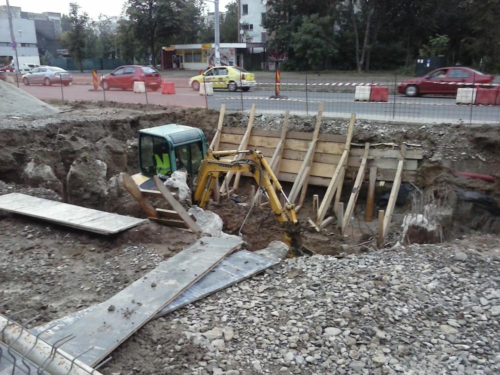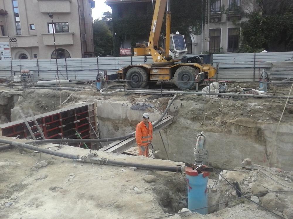 Langa putul de pe Splai, prin care se va lucra la spargerea prealabila a peretilor mulati de la M1 pentru trecerea TBM-urilor spre PSS Opera. Se fac injectii pentru "fortificarea" solului.