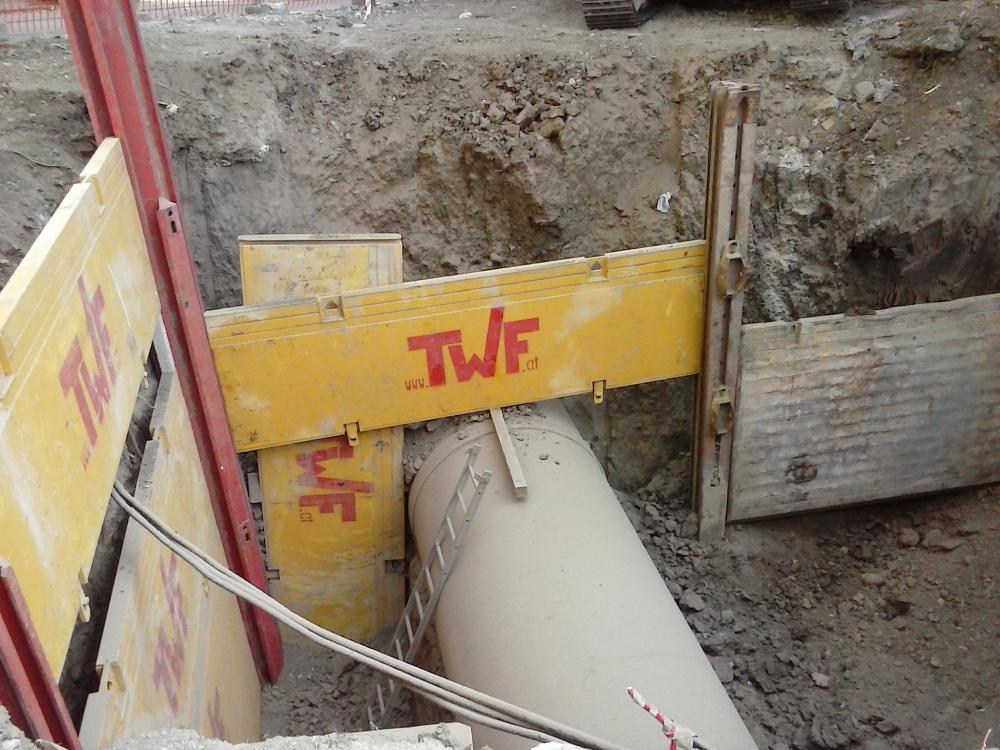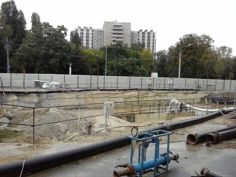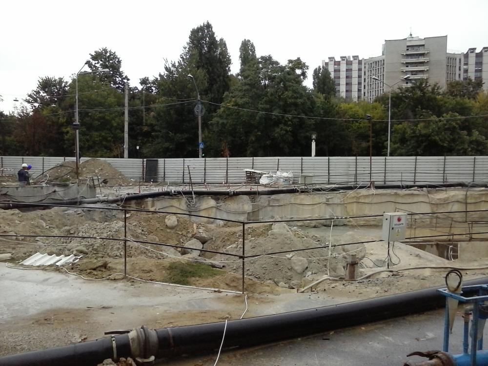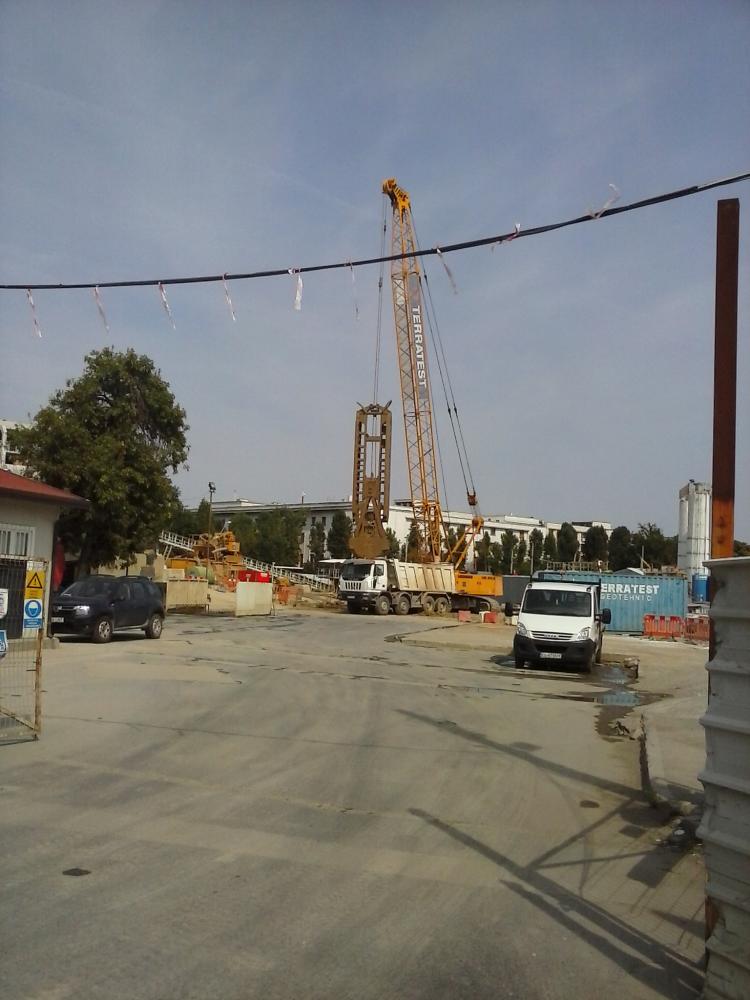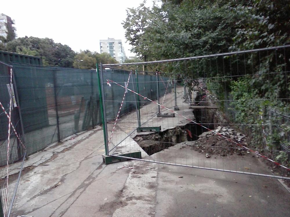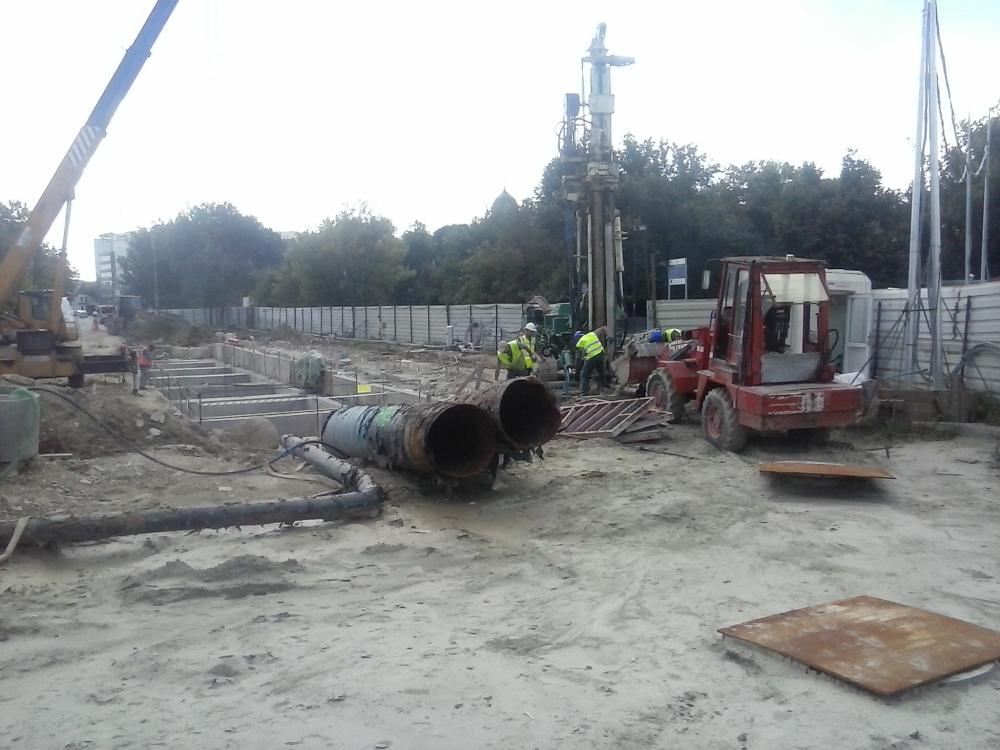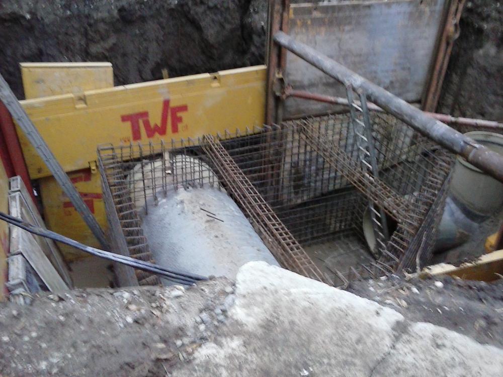 Langa putul de pe Splai, prin care se va lucra la spargerea prealabila a peretilor mulati de la M1 pentru trecerea TBM-urilor spre PSS Opera. Se fac injectii pentru "fortificarea" solului.