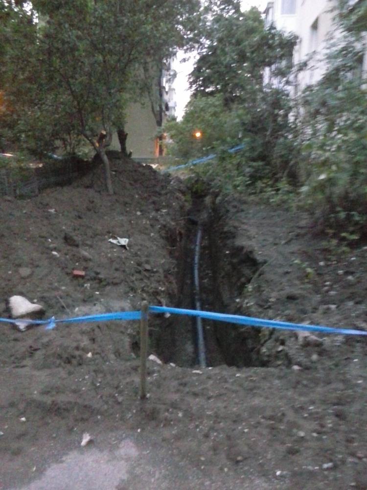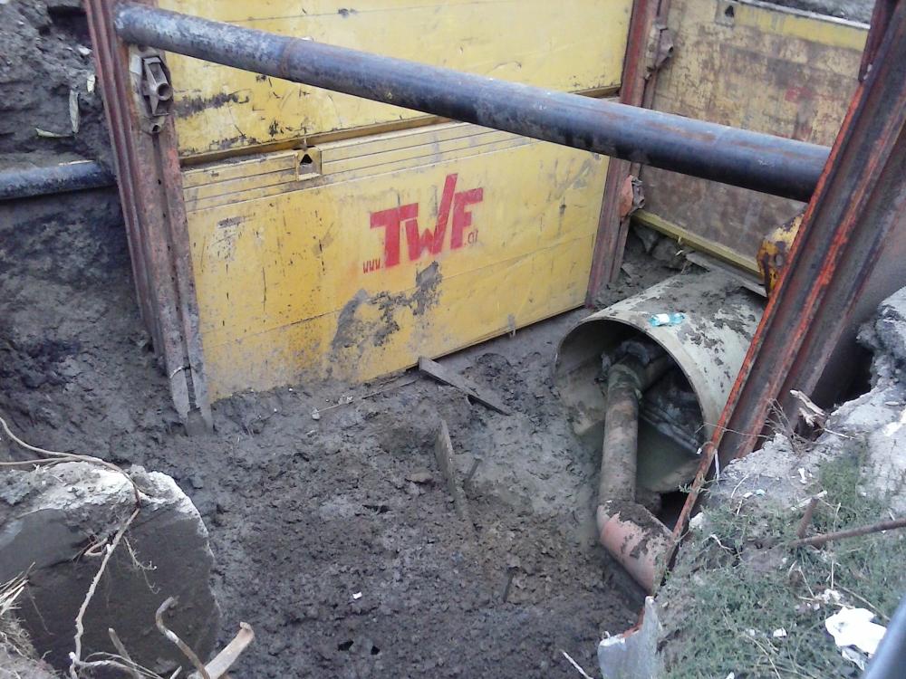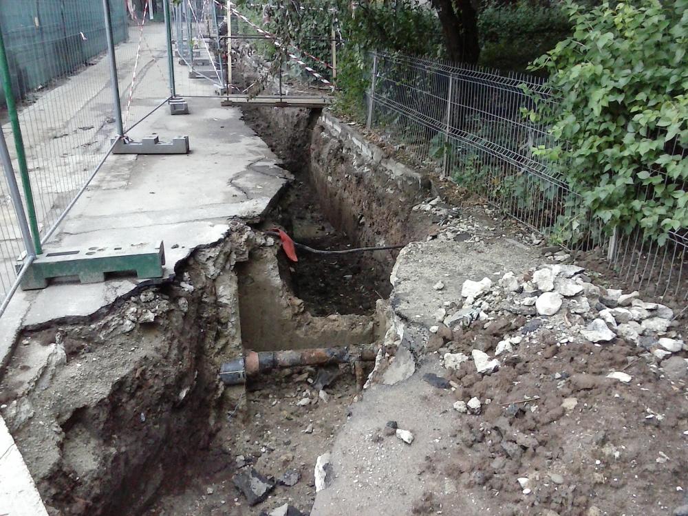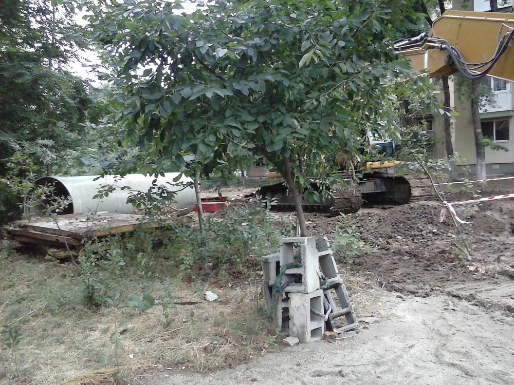 Si in plus... se deviaza o conducta de apa. N-au reusit sa taie becul inca.