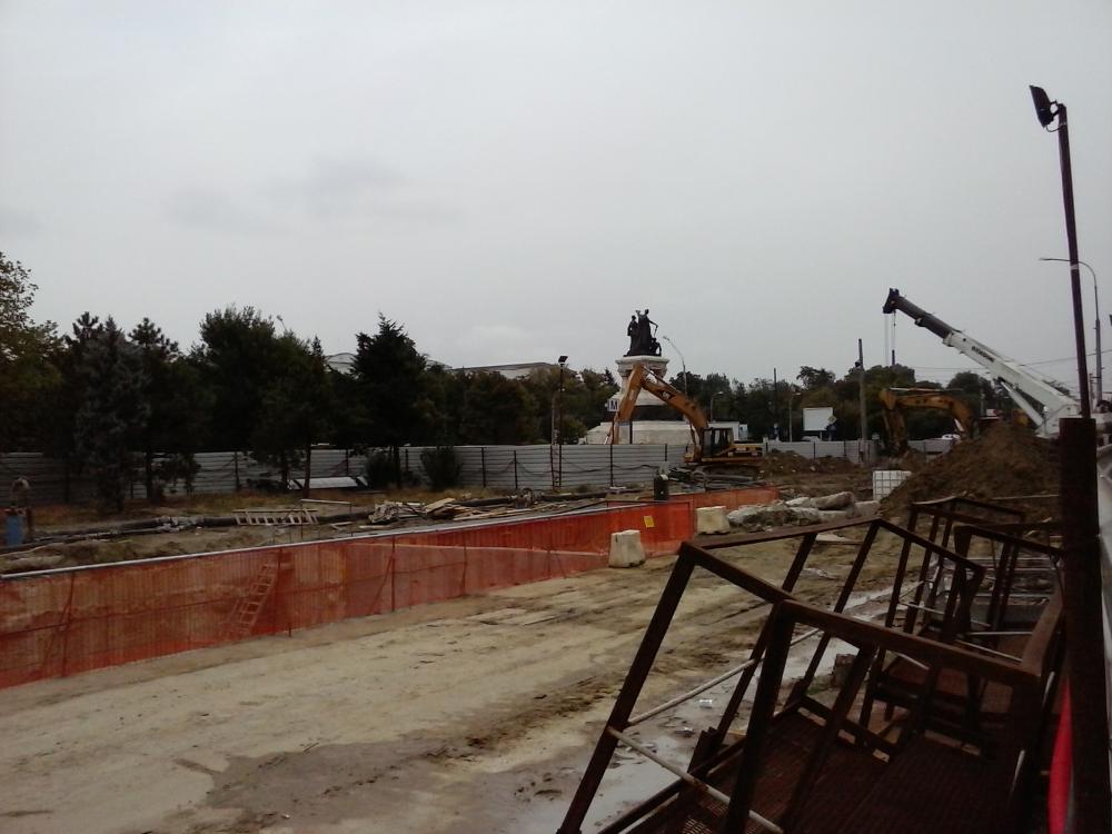 Aici este intradevar o supriza in zona pietei. Au zburat gheretele de lemn! Ori pentru canalizare ori pentru coloane forate la accesul de pe coltul pietei. Ori pentru ambele evident. Si eventual pentru ceva cabluri si alte tevi.