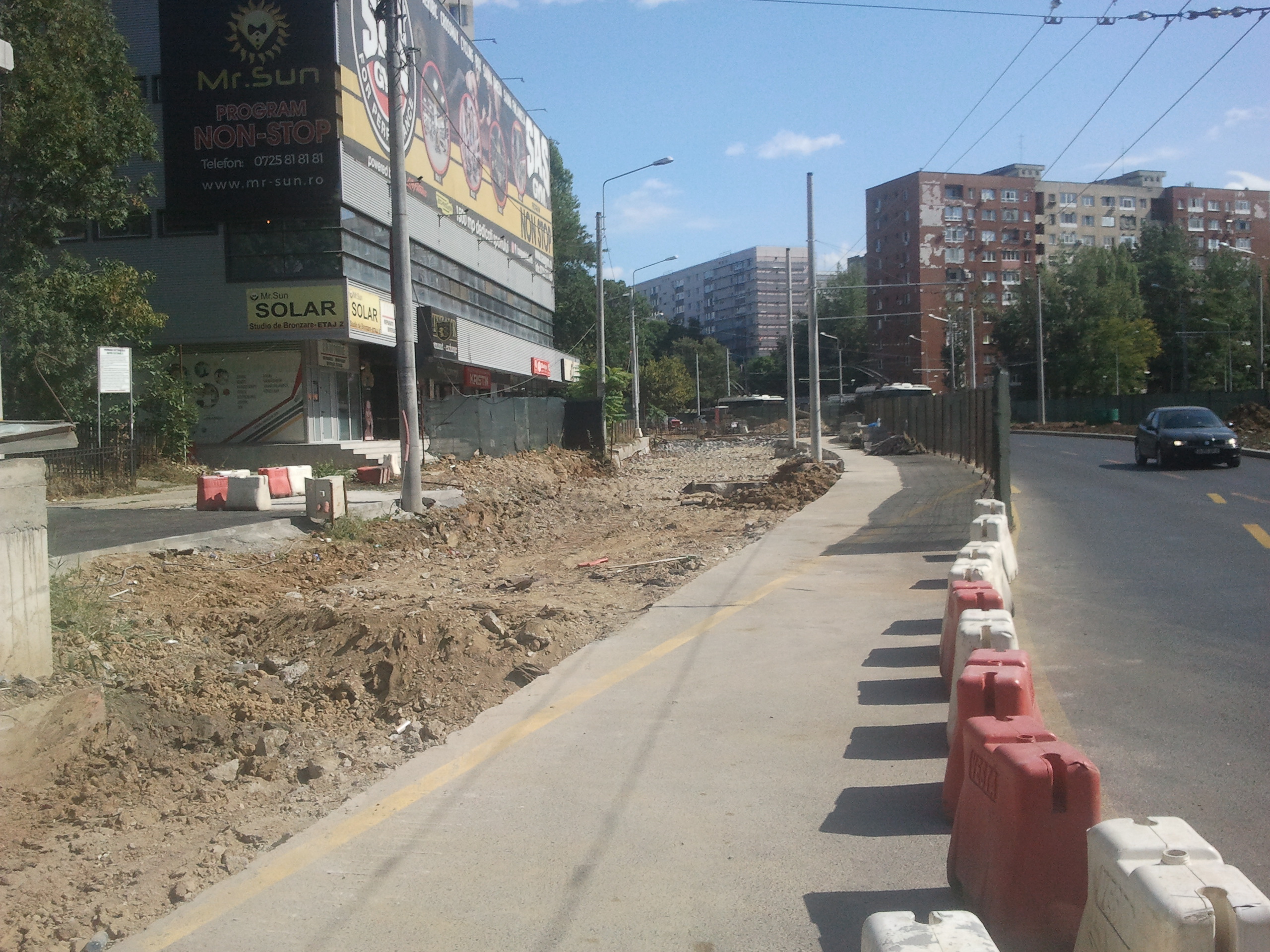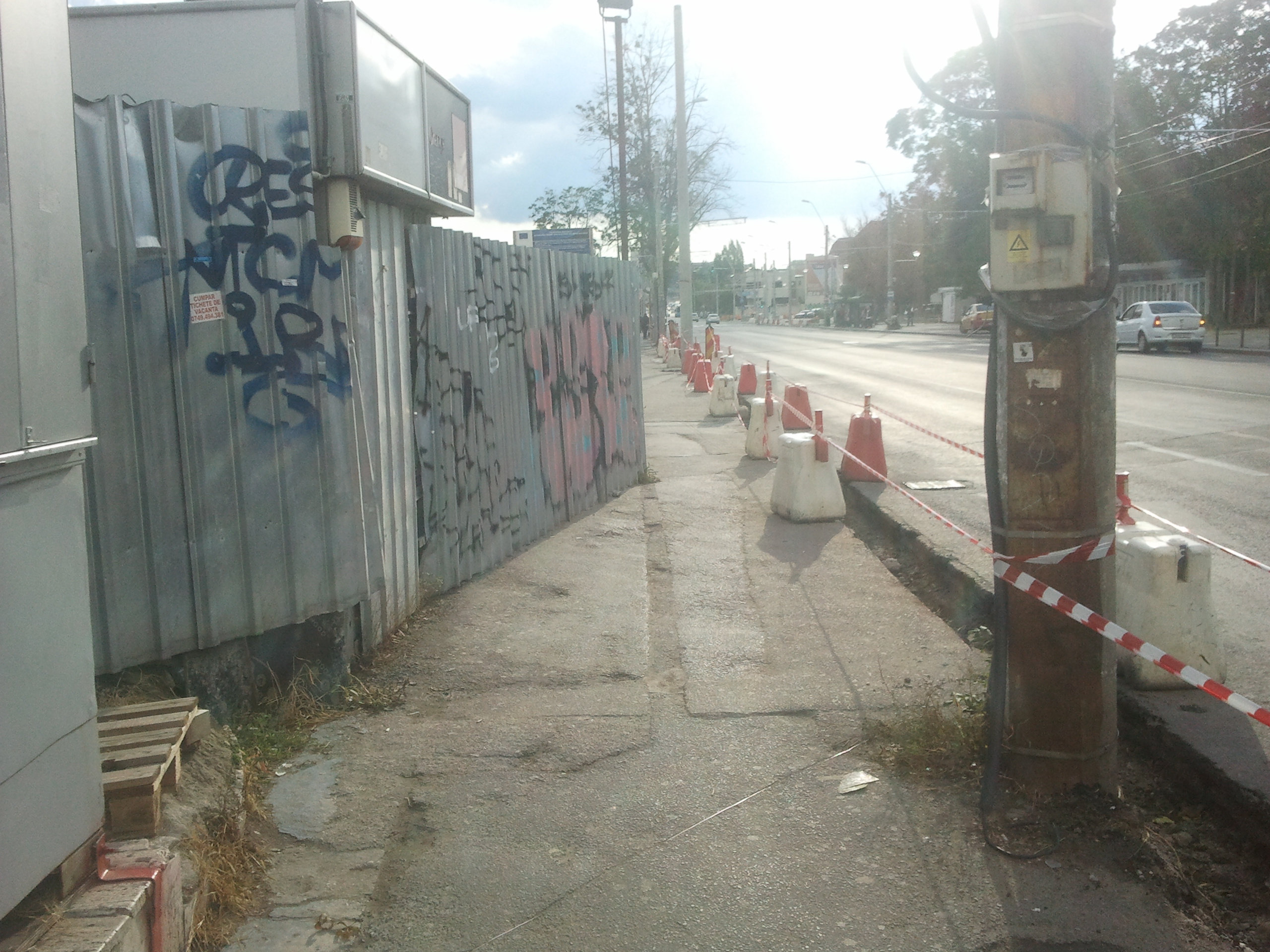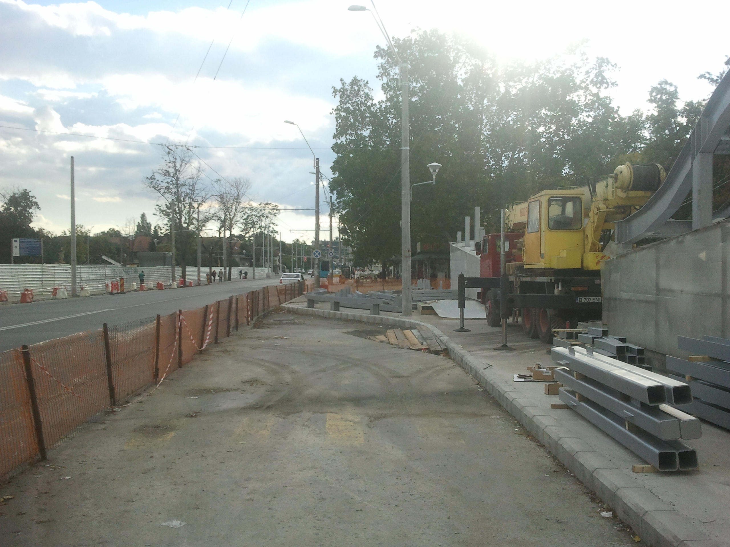 Cat de curand se va muta circulatia pe sensul DT-Academie pe devierea executata pe amplasamentul aproximativ al fostei Str. Razoare. Devierea are doua benzi trasate cu marcaje galbene greu distinctibile pe beton (doua benzi mai mult teoretice deoarece nu exista borduri si trotuare iar carosabilul este din petice betonate, astfel incat soferii vor avea tendinta sa faca slalom si implicit sa slefuiasca gardurile de tabla ce delimiteaza devierea de restul santierului) si este iluminata. Spre Piata Danny Huwe mi se pare ca nici nu mai are poarta, doar spre Academie este inca poarta de plasa sudata si cabina paznicului.