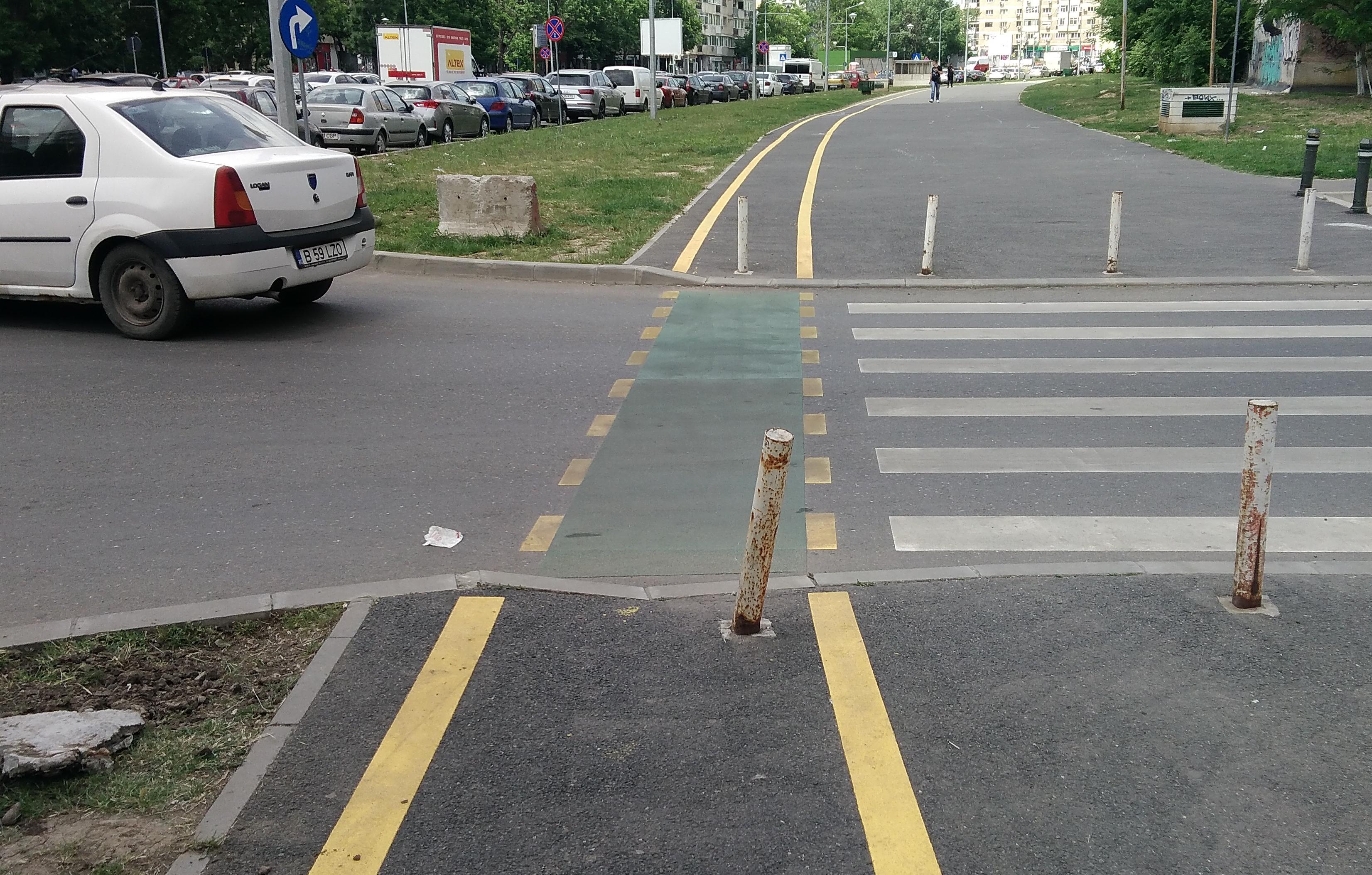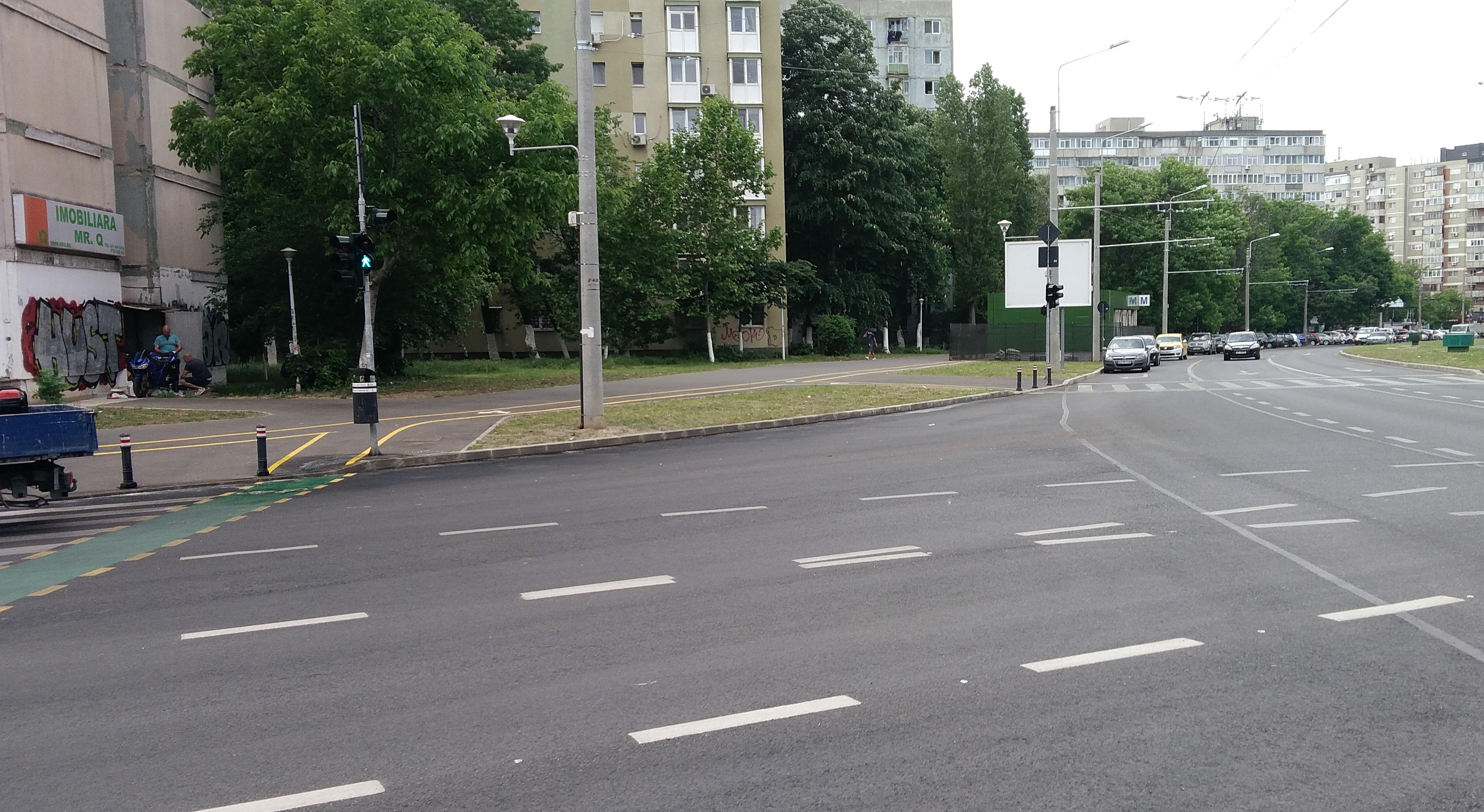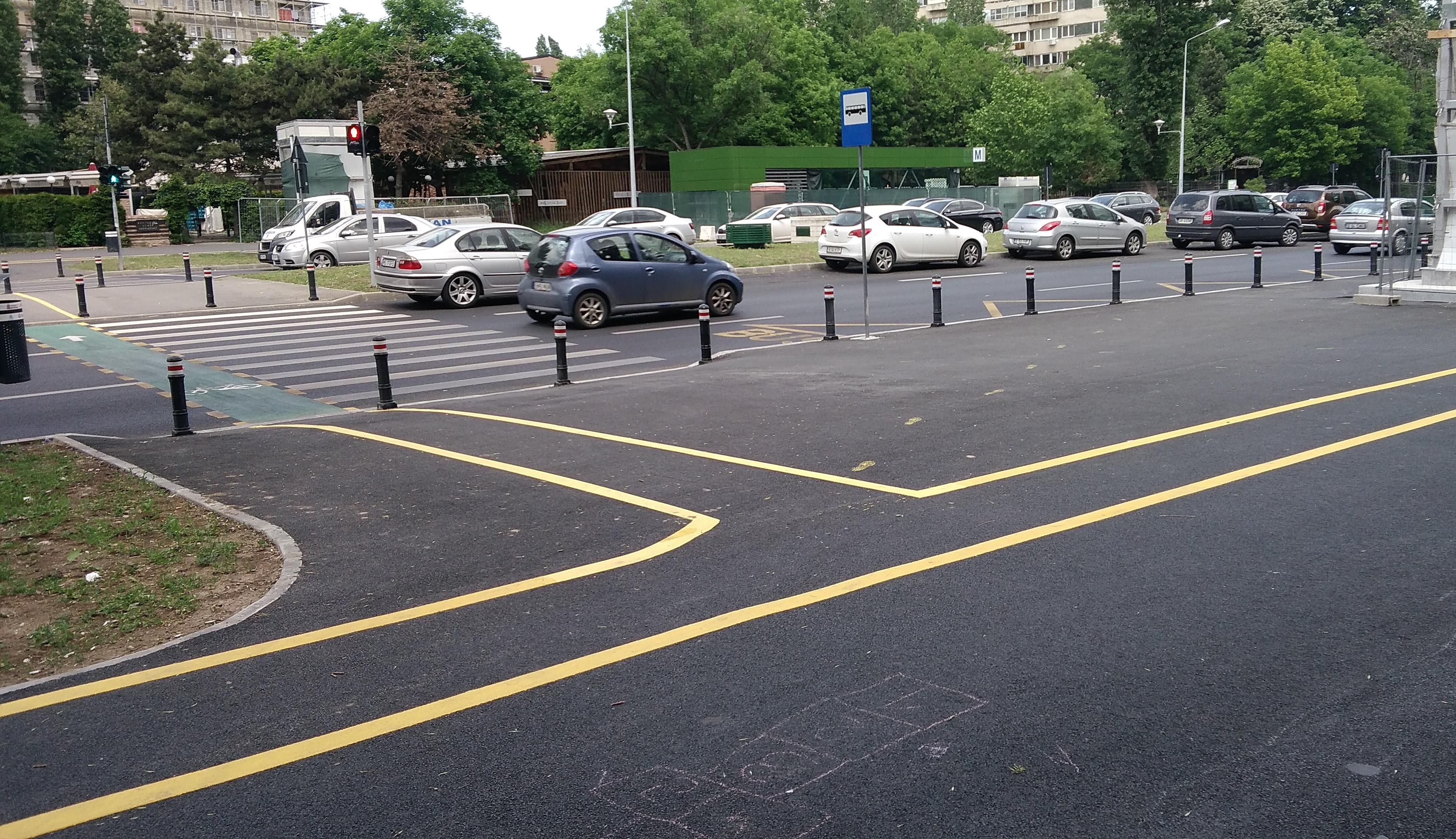 Dar reţeaua de troleibuz a rămas pe vechea poziţie, astfel că troleibuzul face stânga de pe banda cu obligatoriu înainte...