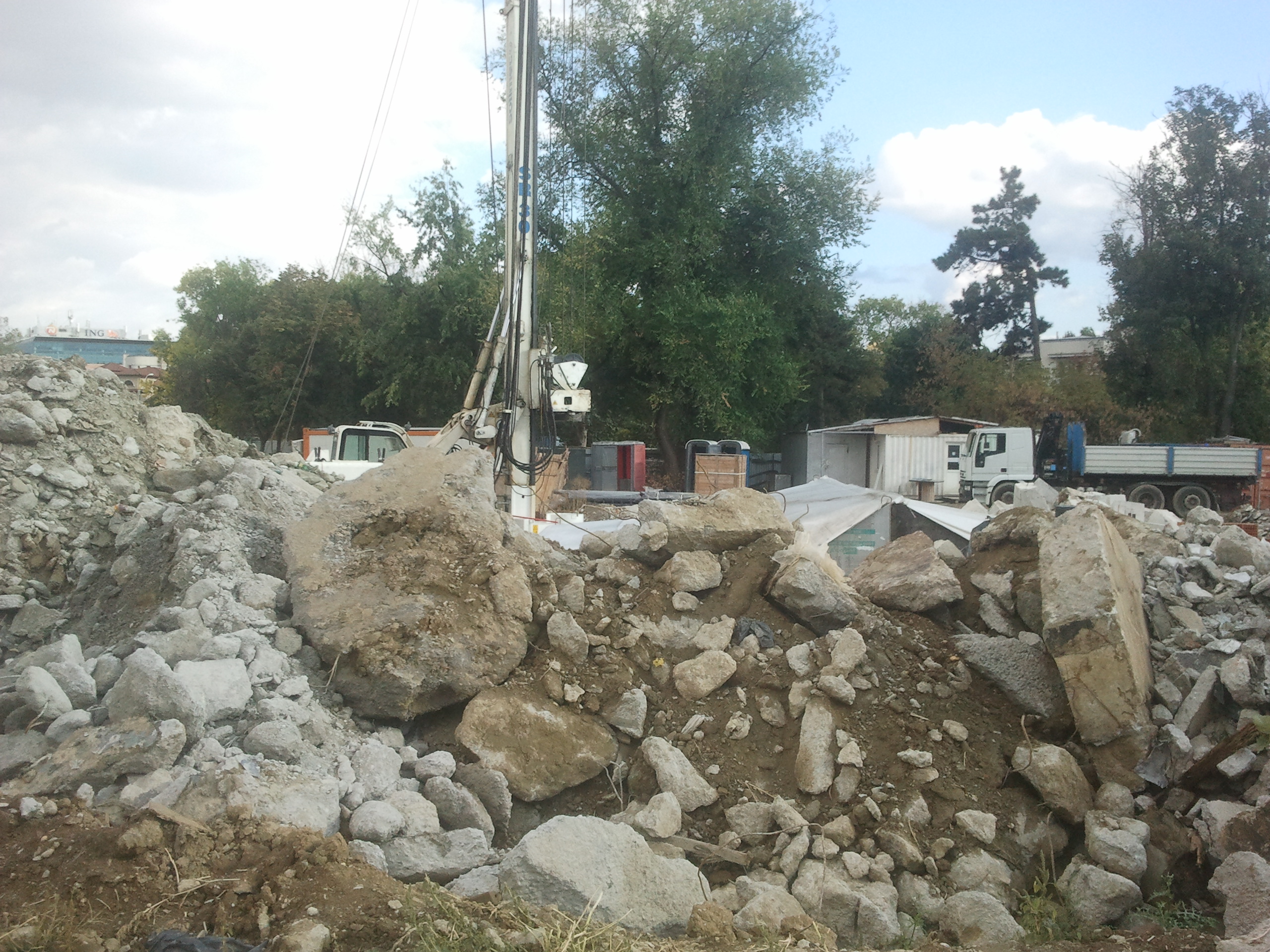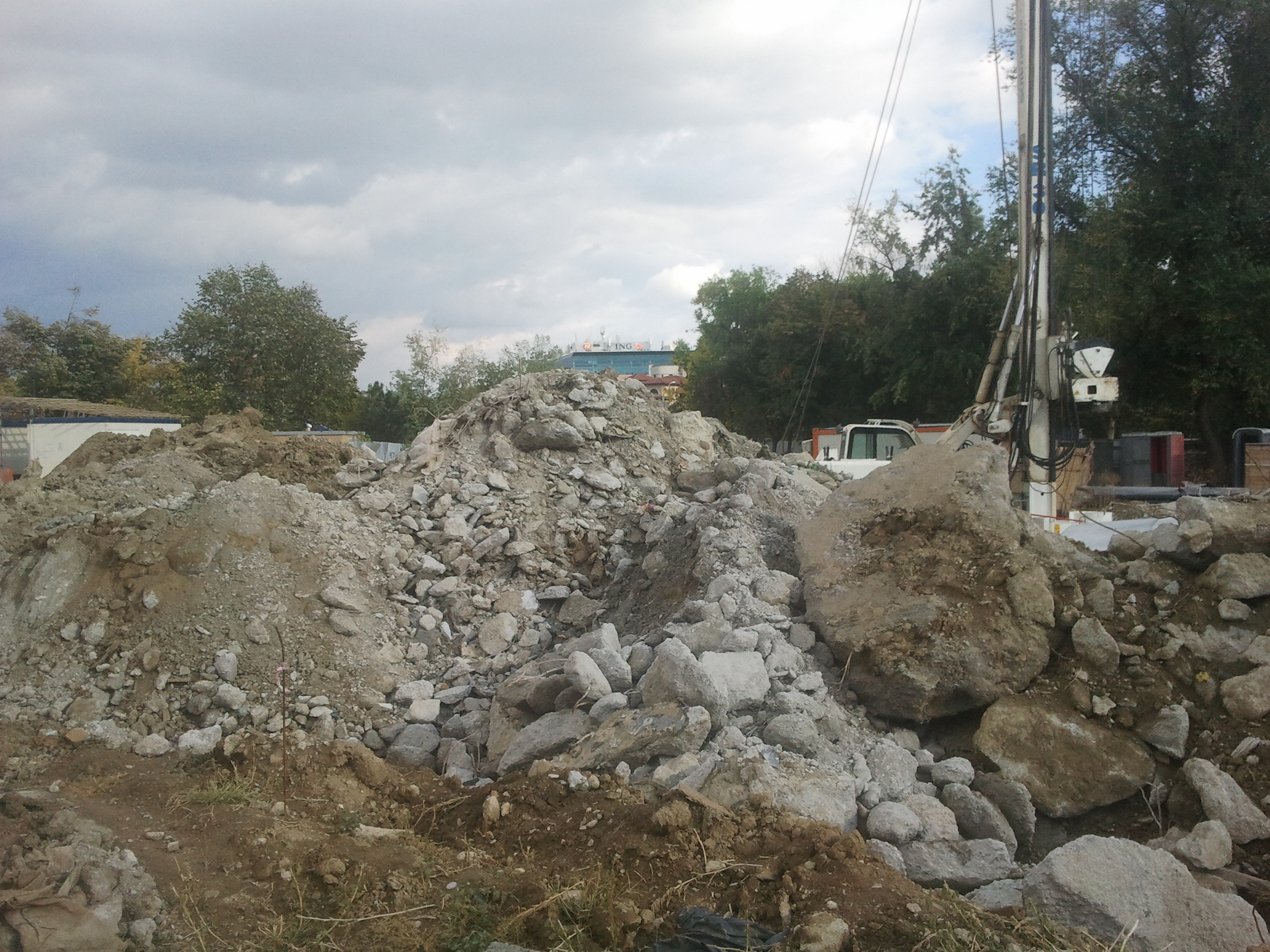 In santierul principal... se sparg betoane, semn ca domol se refac si suprafetele. Avem si o foreza, nu ma prind exact pentru ce.