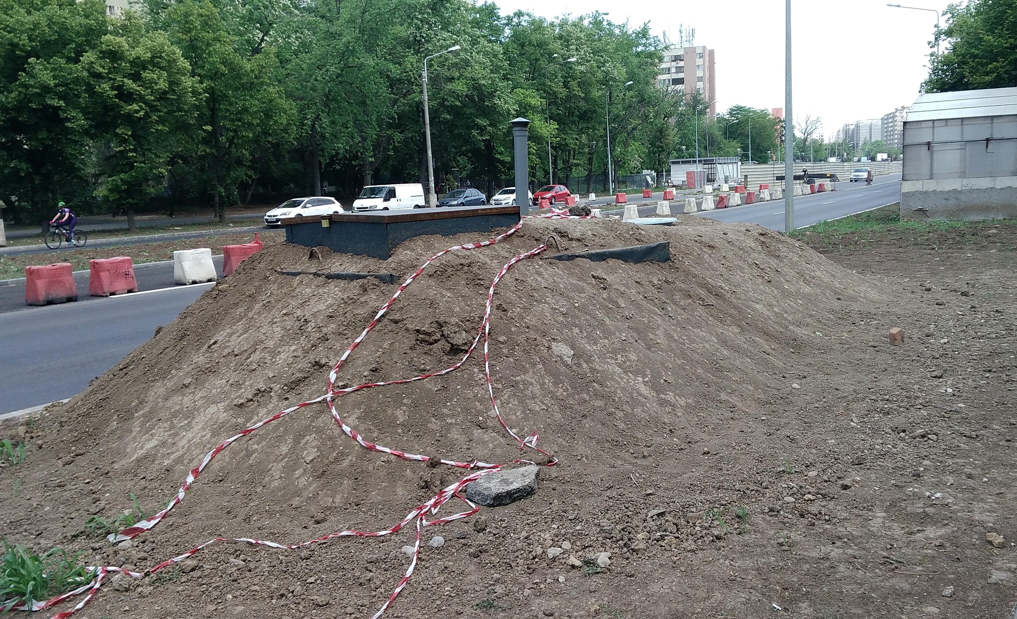 Continua campania de plantat stalpi metalici noi cu alta serie de sapaturi pentru fundatii, in dreptul Academiei Militare si spre Geniului.