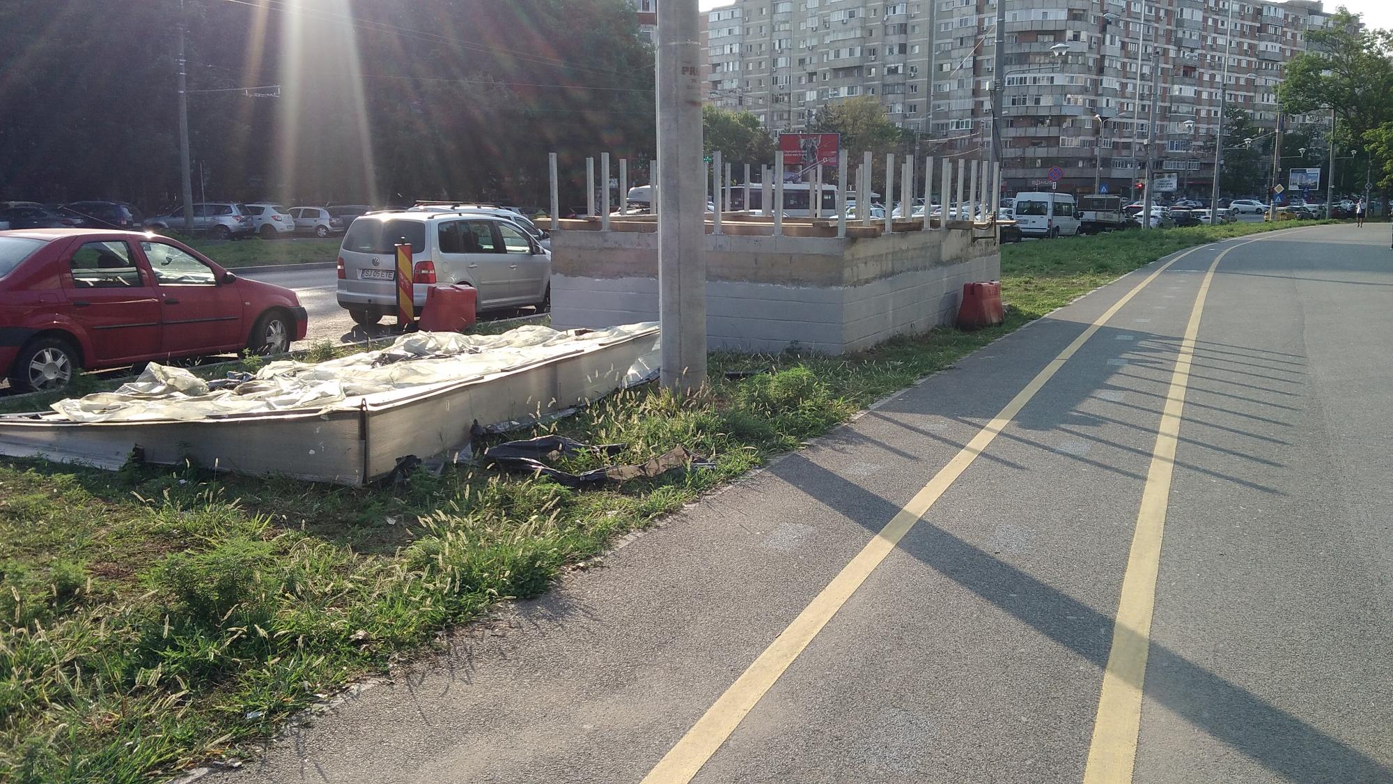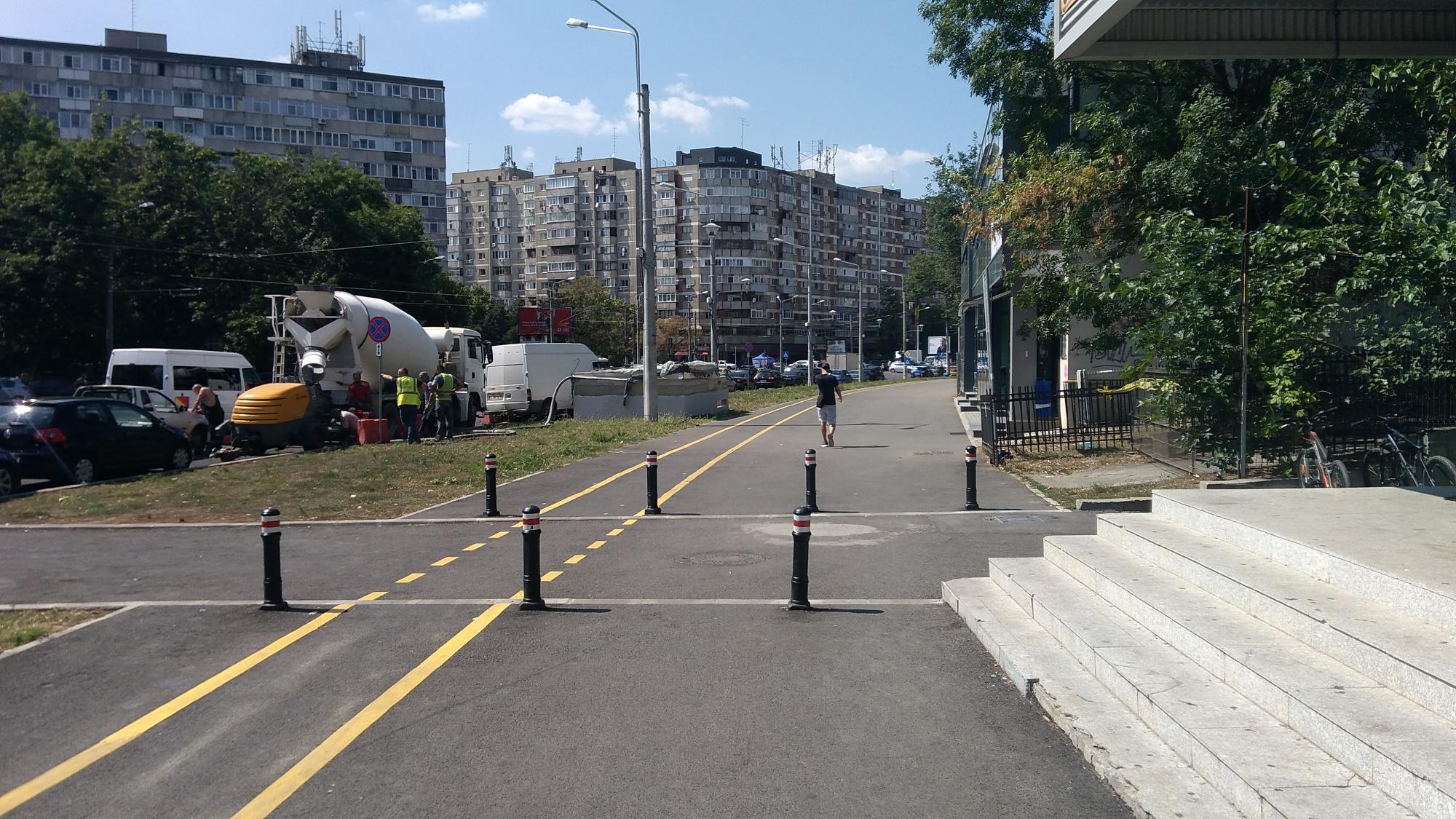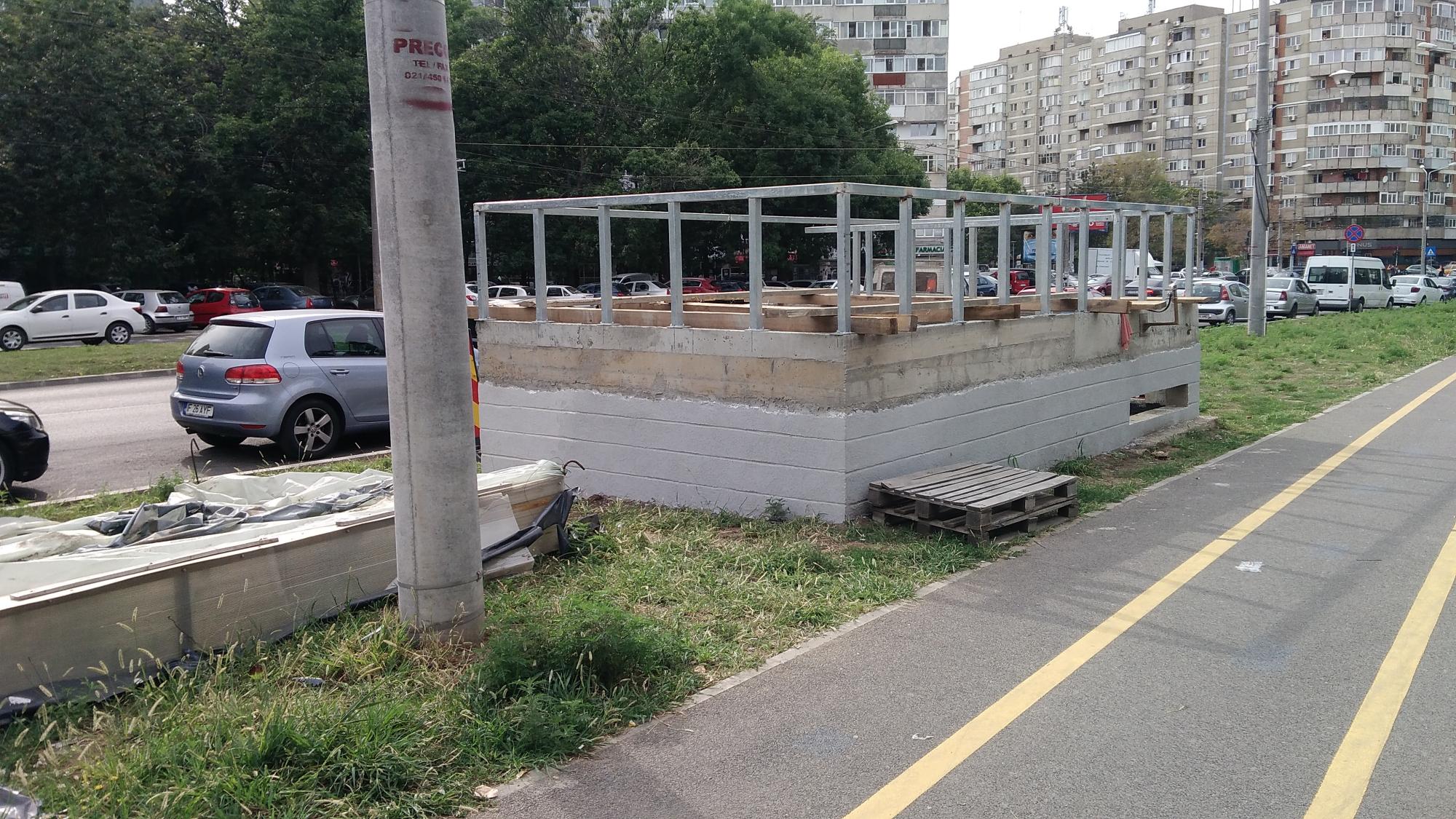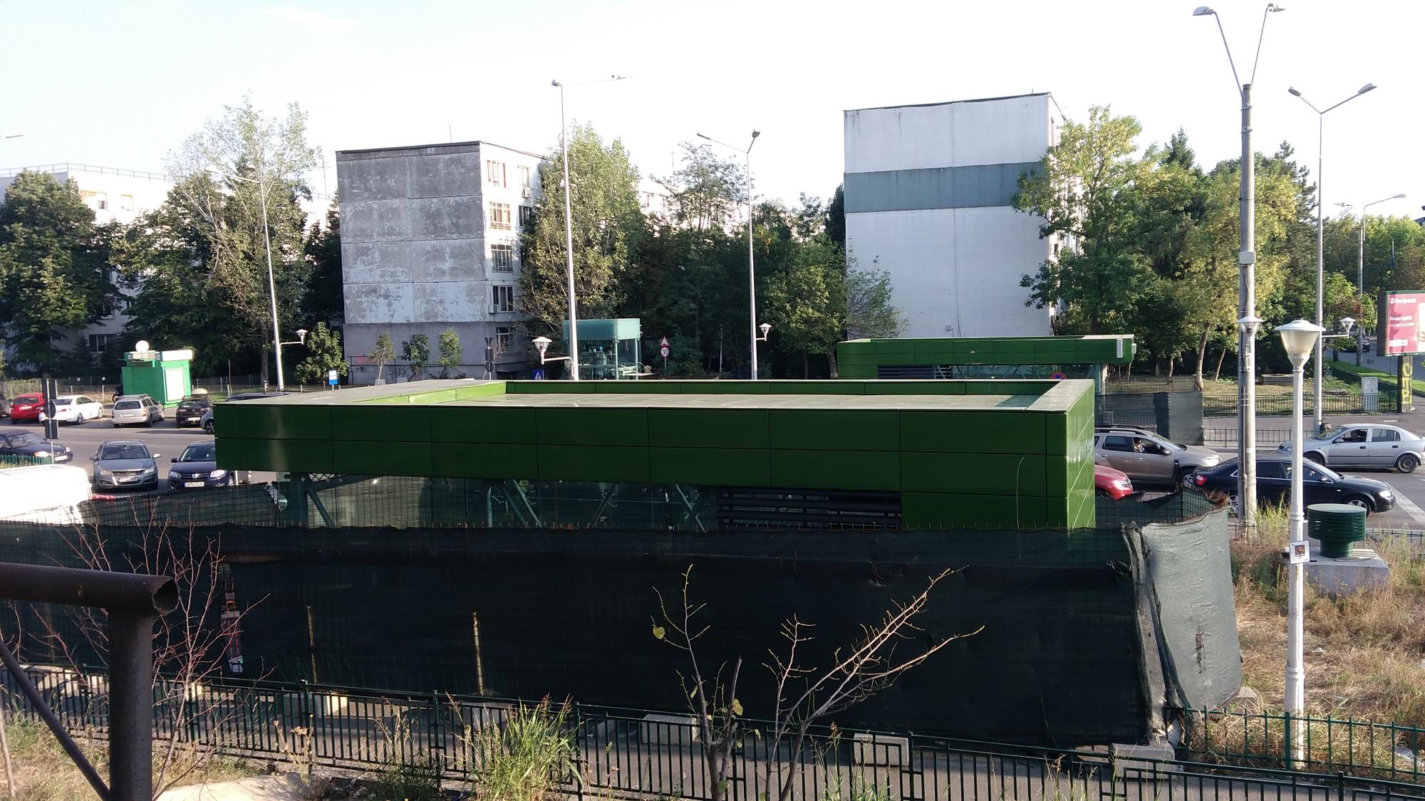 La accesurile valurite cu tabla verde dinspre Spitalul Universitar se punea pamant pe plafon. Imi imaginez cat de udat va fi gazonul teoretic de pe ele (ca o paranteza off, avand in vedere ca nici macar gazonul de la greentrack Pantelimon n-a fost udat decat in anul pif, anul asta adica al doilea an n-a functionat deloc si acum avem yellow-dirt track). Deci dupa ce gazonul va fi pa, la prima ploaie torentiala o sa avem un tsunami noroios de pe acoperis jos pe trotuar intre cele doua accesuri dispuse in oglinda.