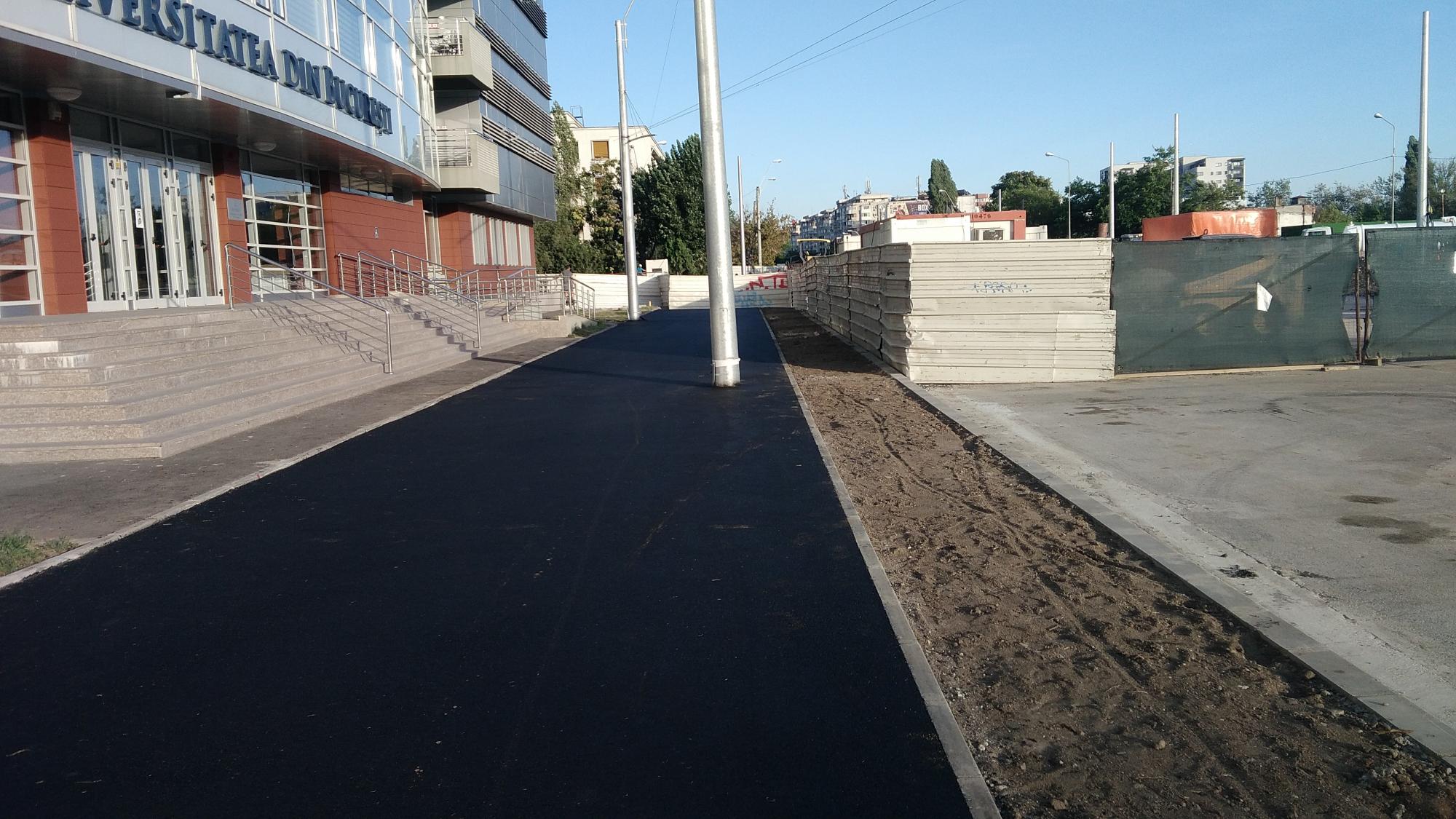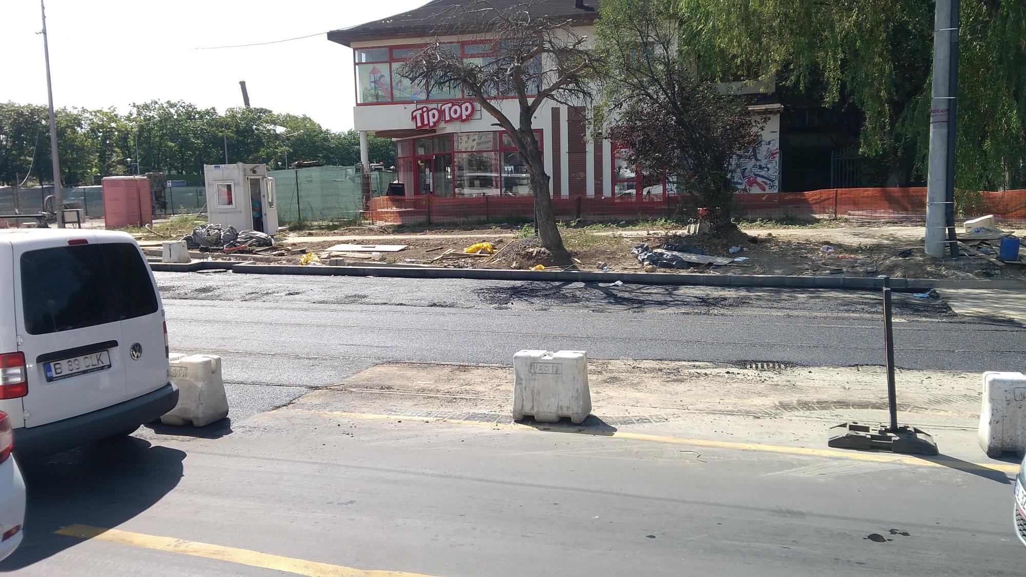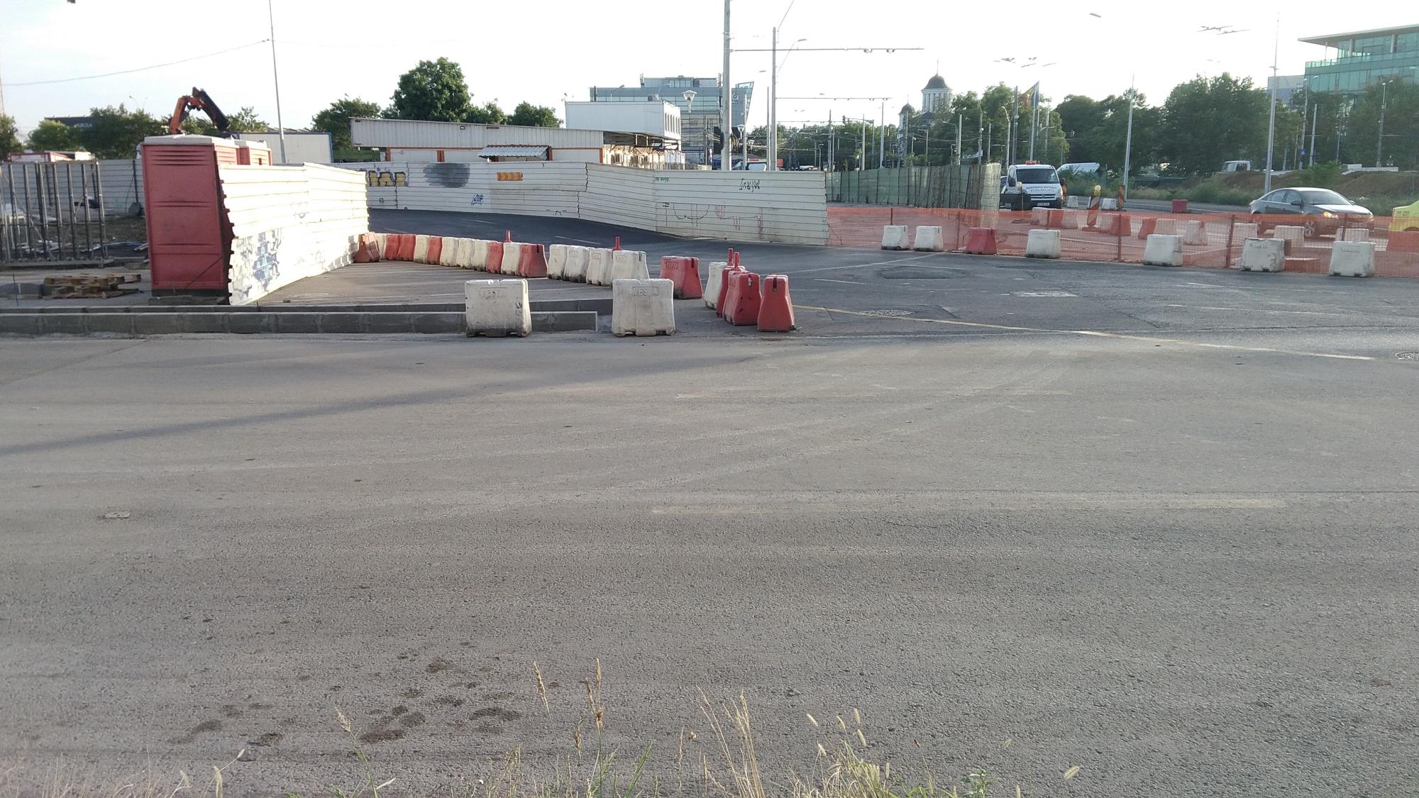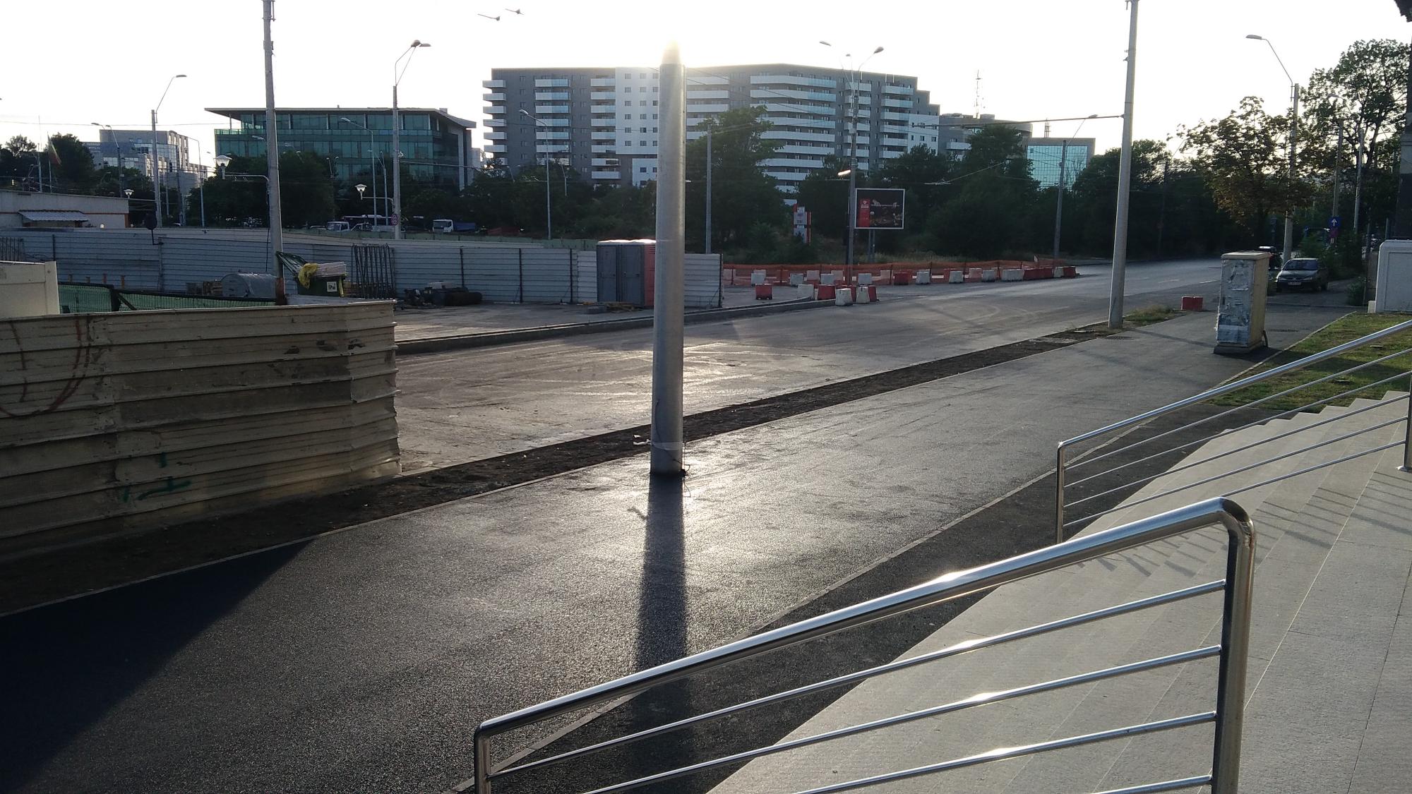 La AM s-a mai restrans un pas tarcul santierului, trotuarul din dreptul rectoratului Univ. Bucuresti a pierdut gardul (care a fost retras in linia rigolei) si acum asteapta asfaltarea.