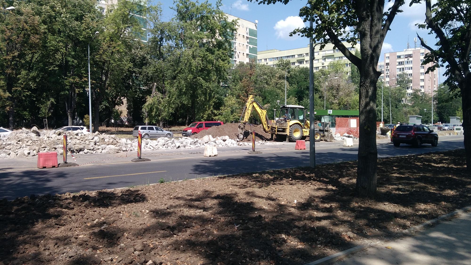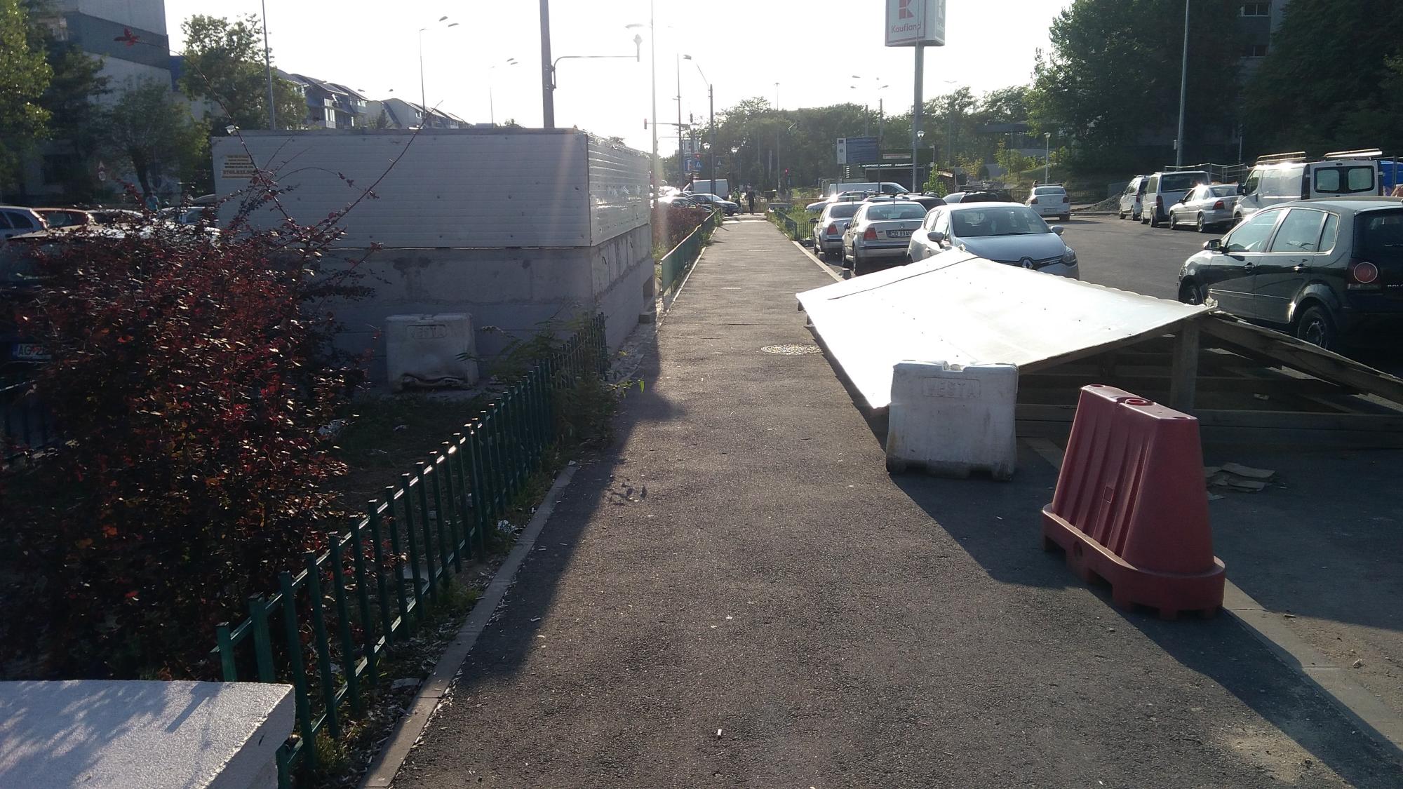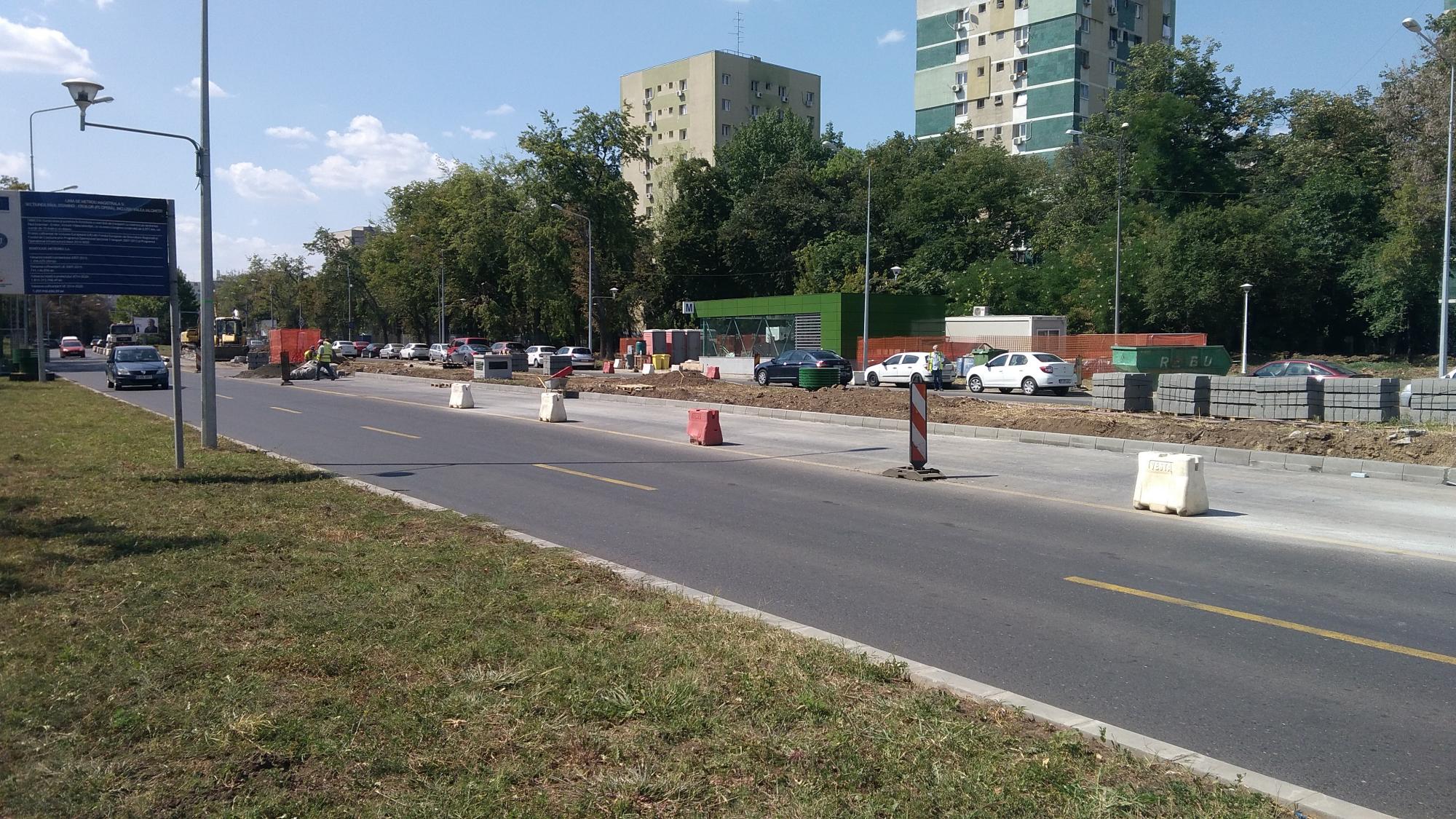 La AM s-a mai restrans un pas tarcul santierului, trotuarul din dreptul rectoratului Univ. Bucuresti a pierdut gardul (care a fost retras in linia rigolei) si acum asteapta asfaltarea.