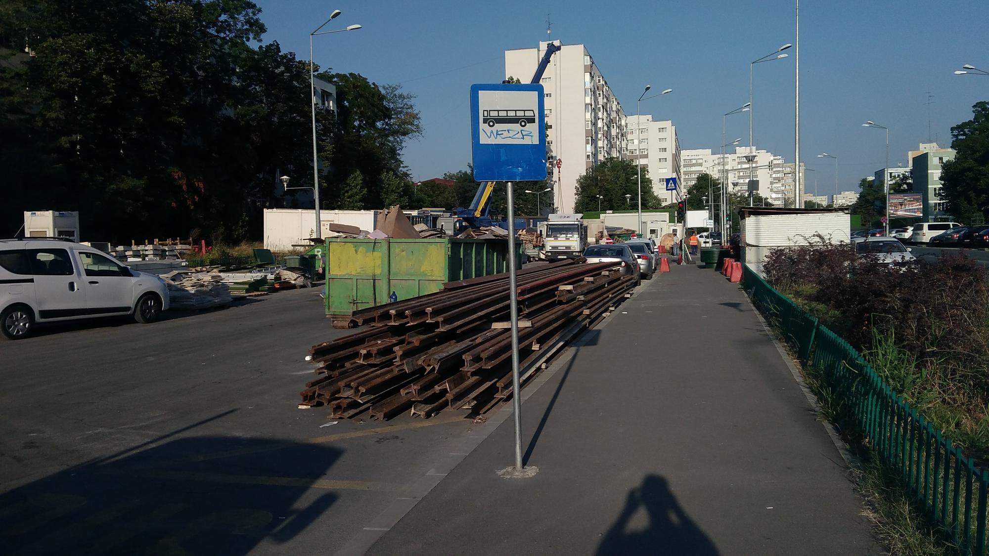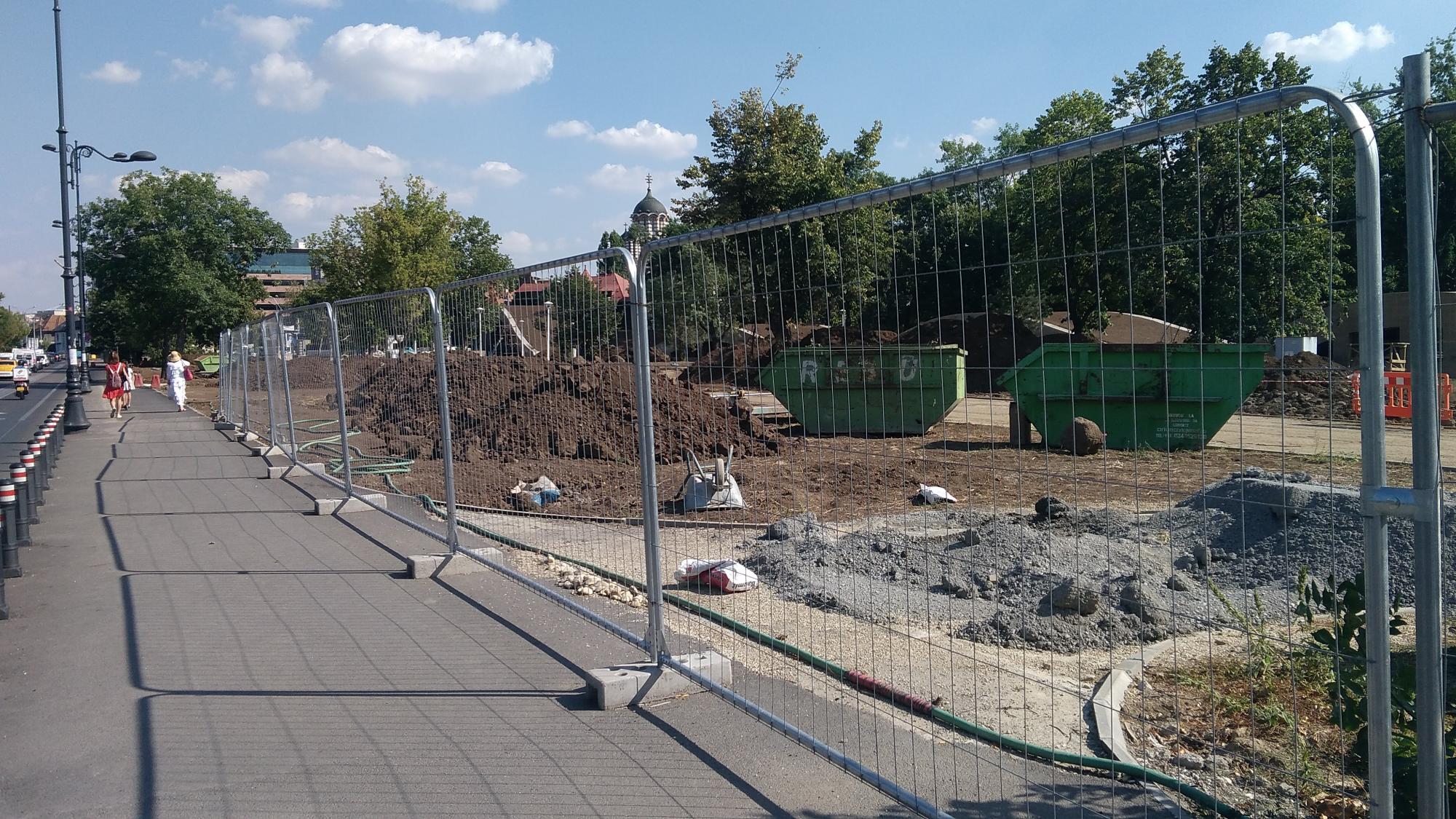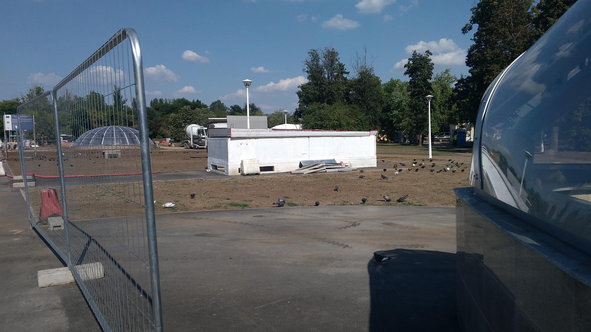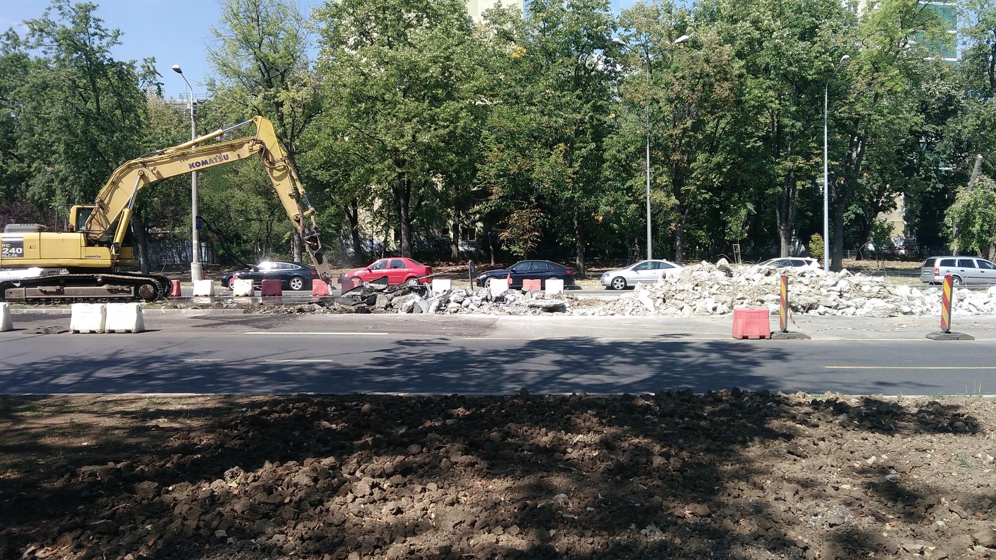 La AM s-a mai restrans un pas tarcul santierului, trotuarul din dreptul rectoratului Univ. Bucuresti a pierdut gardul (care a fost retras in linia rigolei) si acum asteapta asfaltarea.