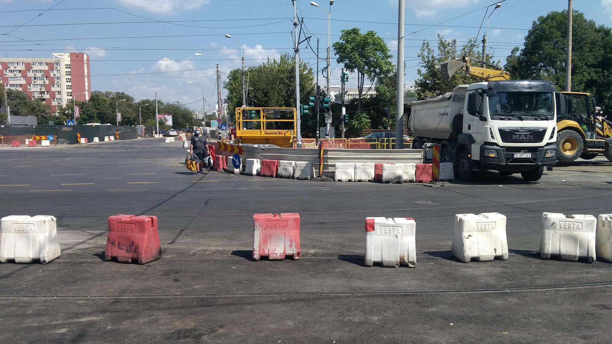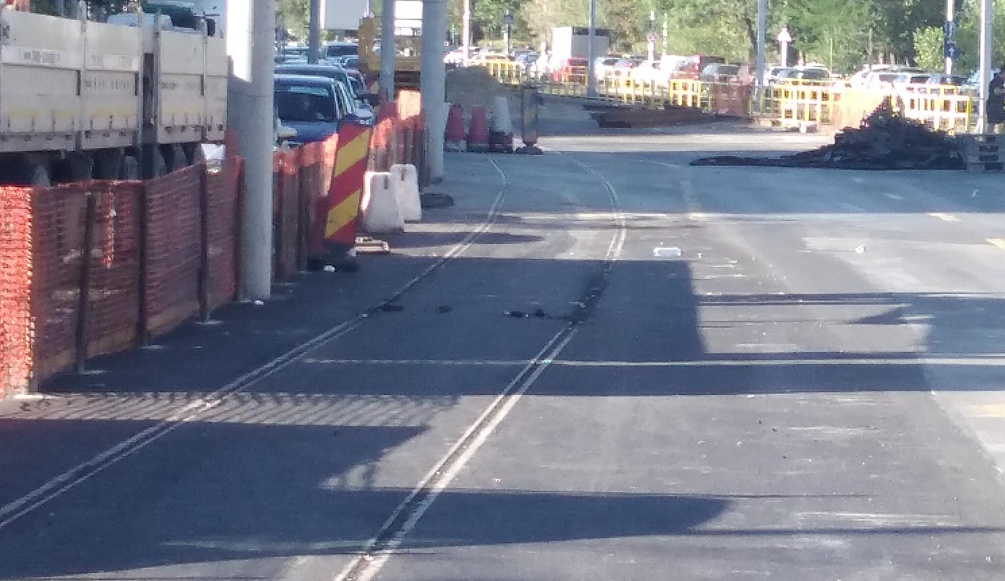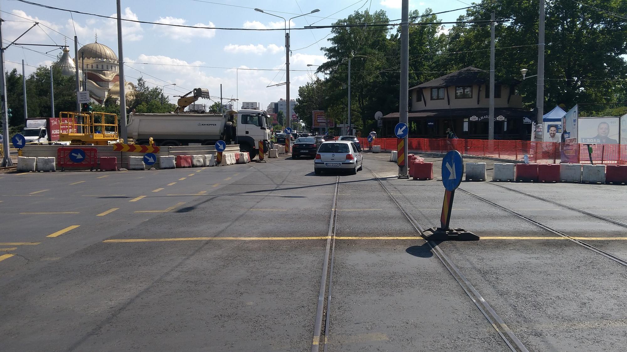De azi s-a mutat circulaţia pe Str. Braşov peste noile linii de tramvai.