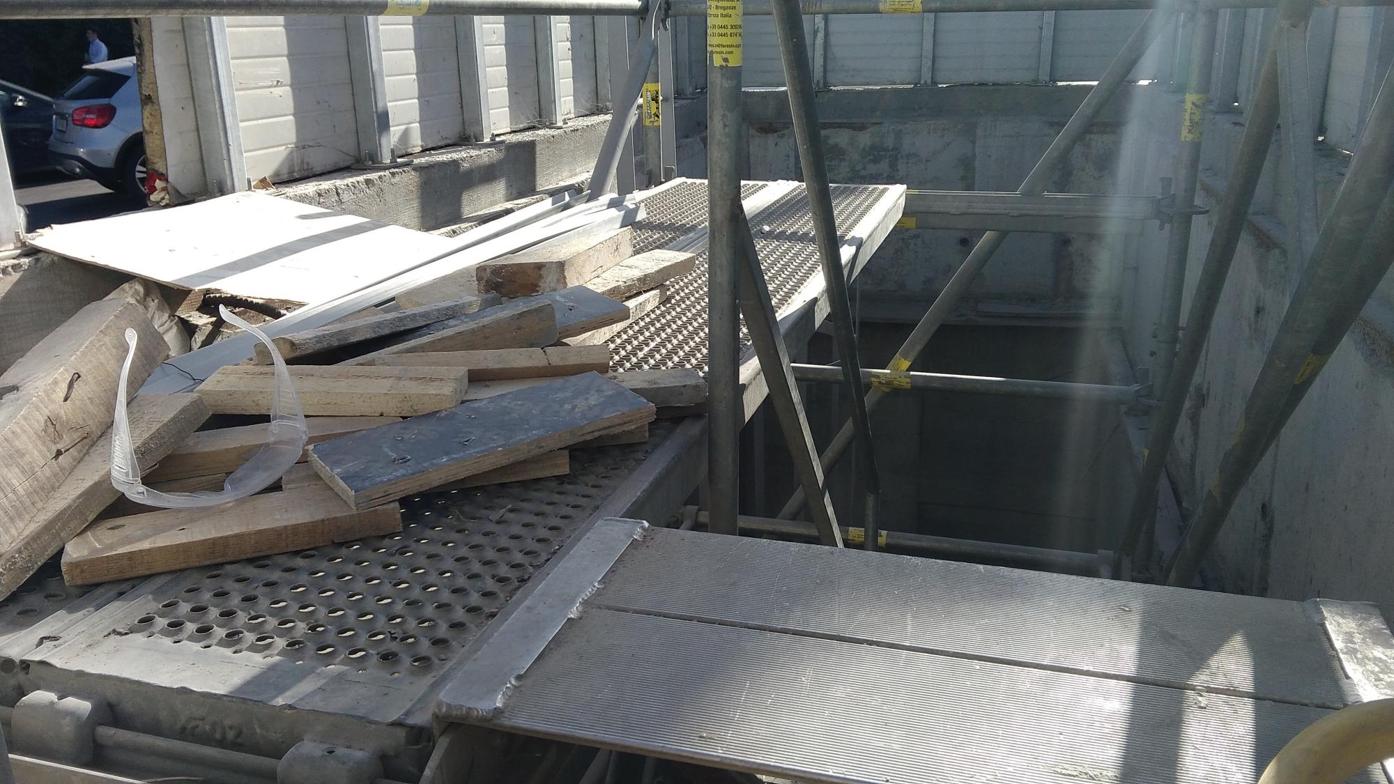 La accesul nou din capul derdelusurilor s-a montat inauntru un esafodaj incropit cu niste doka si metalice, presupun pentru montarea plafonului fals...