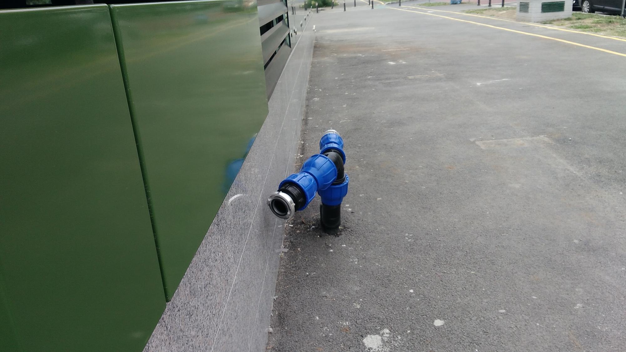 Doar o observatie, solutia aleasa pentru cei doi hidranti exteriori de pe langa accesuri nu este buna, or sa se fure...