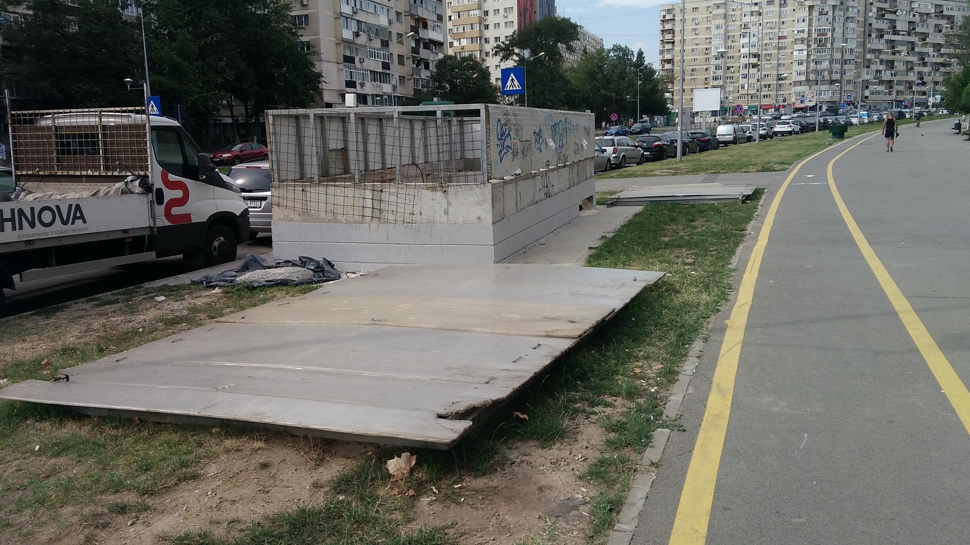 La Eroilor a aparut si scheletul custii pentru lift de langa luminatoare dar epuismentul ala functioneaza in continuare. Ma intreb daca nu cumva folosesc apa in scopuri tehnologice, gen preparat mortare la lopata, udat gazonul teoretic din semintele deja mancate de porumbei...