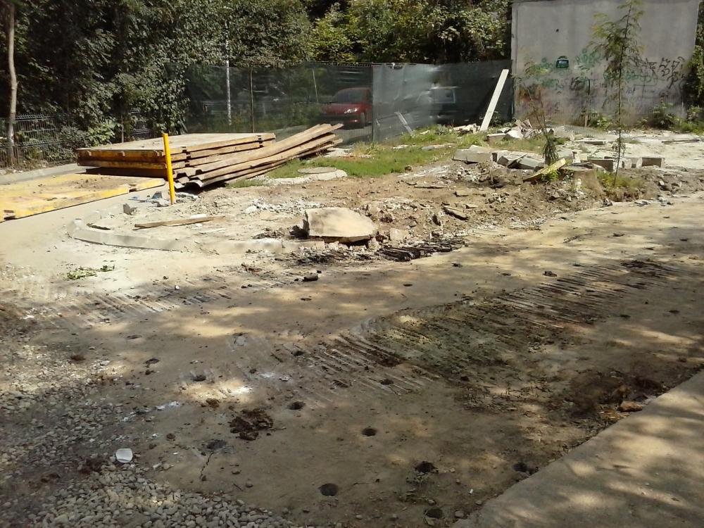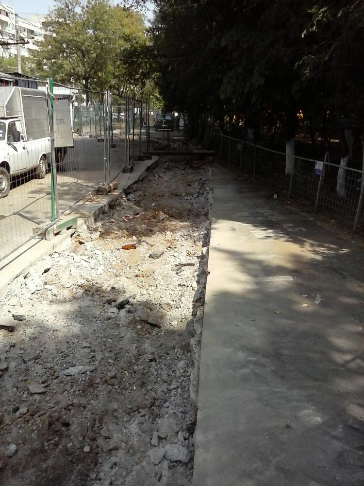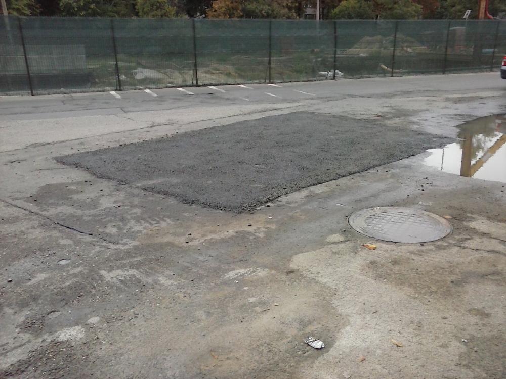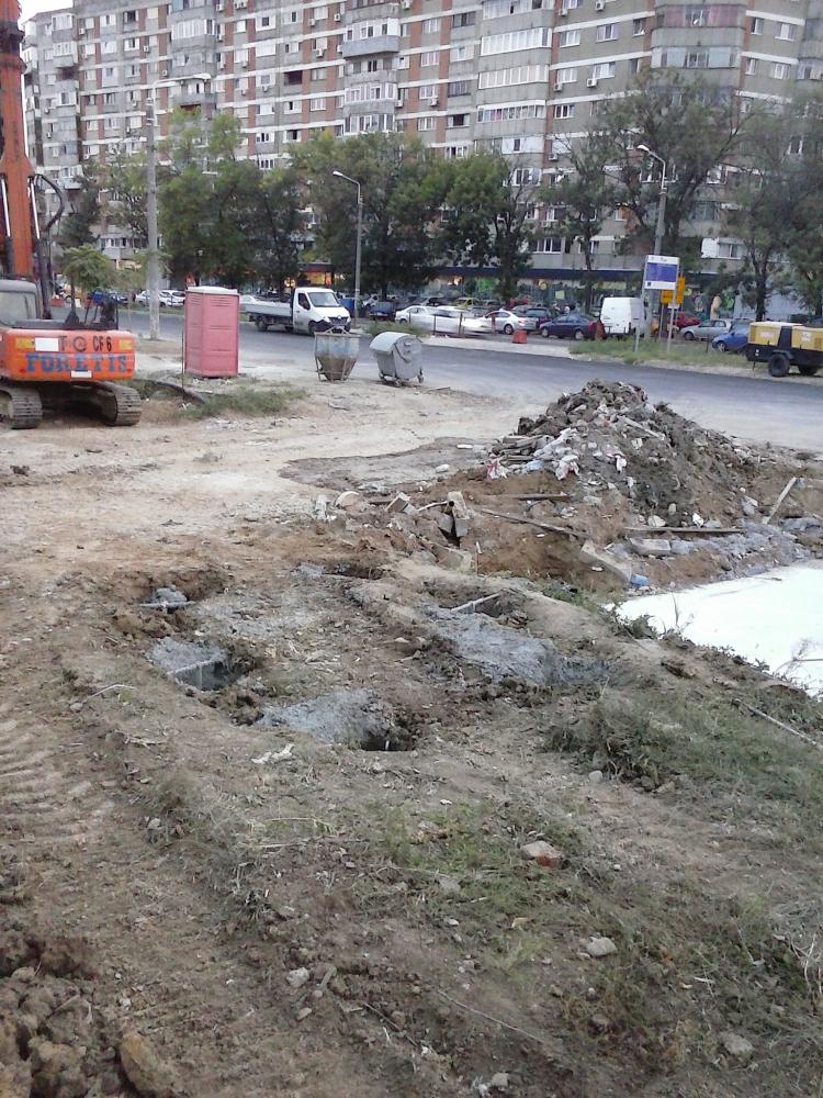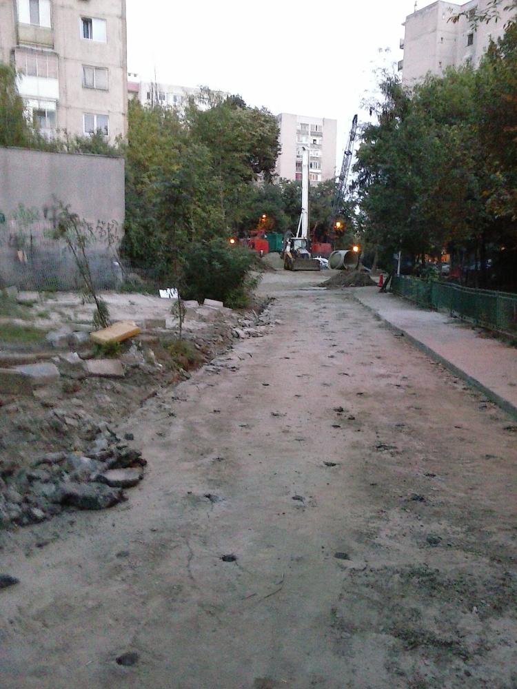 La RO este adusa o razatoare de asfalt, continua in ritmul acut refacerea intrarii in str. Cetatea Histria, peste acces si se sparge din betonul de pe margine pe la DT61, zona extinsa pe spatiul verde.