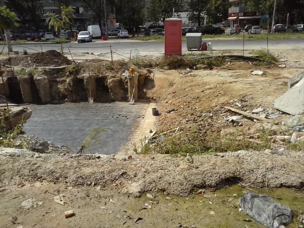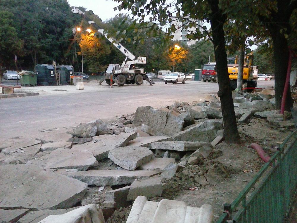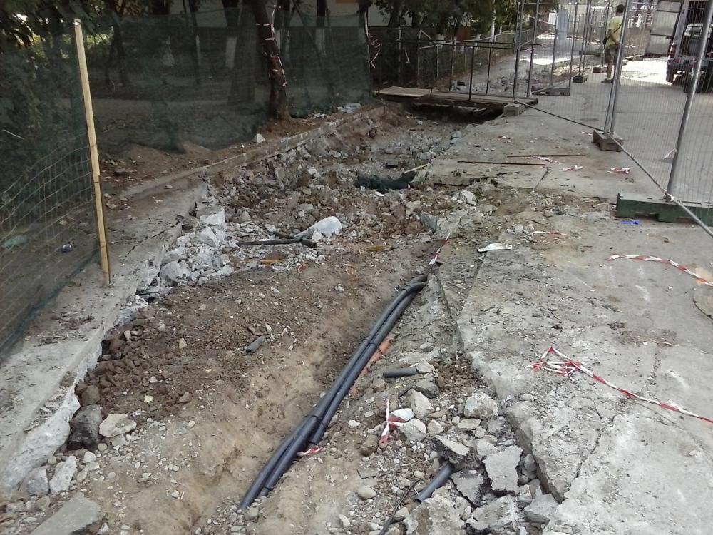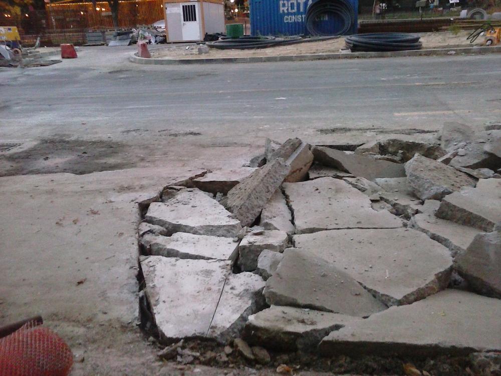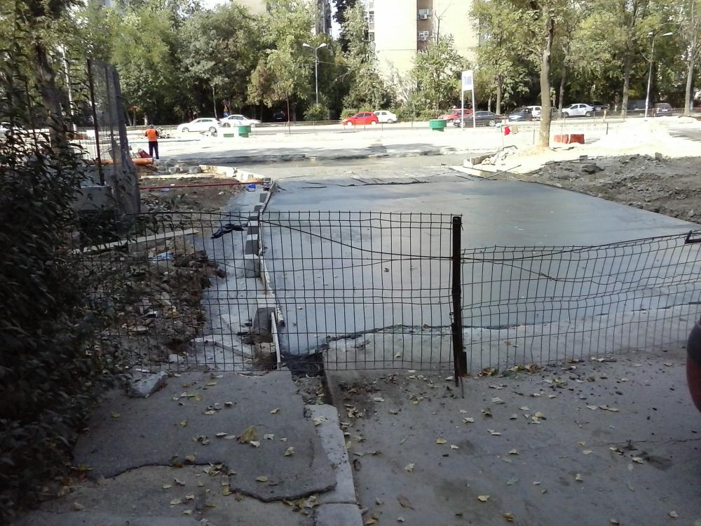 La RO este adusa o razatoare de asfalt, continua in ritmul acut refacerea intrarii in str. Cetatea Histria, peste acces si se sparge din betonul de pe margine pe la DT61, zona extinsa pe spatiul verde.