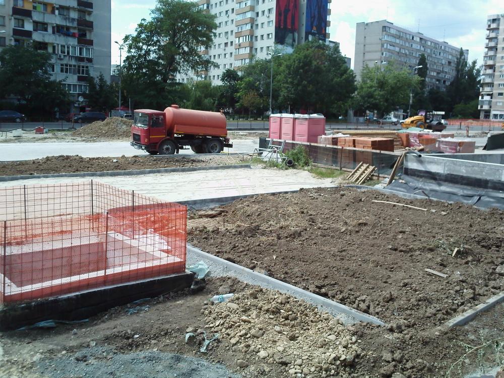 Valea Ialomitei +galerie spre Romancierilor (VI): lucrari suspendate la refacerea spatiilor peste depou-statie si strada VI, se executa lucrari la retele edilitare in intersectia DT-VI, s-a finalizat delimitarea cu borduri a spatiului verde si a scuarului de la trecerea de pietoni in zona de bulevard si betonarile pentru carosabil.