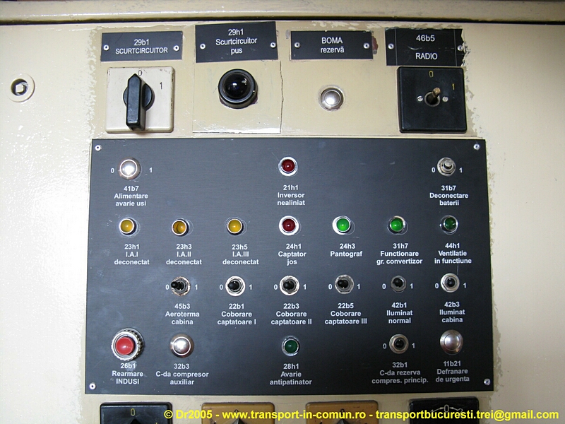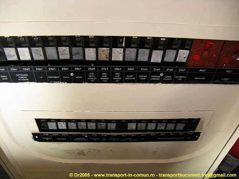 Captarea curentului: şina a treia (captatoare amplasate pe boghiuri) / pantograf (pentru manevra în depou, cu viteza maximă 15 km/h)