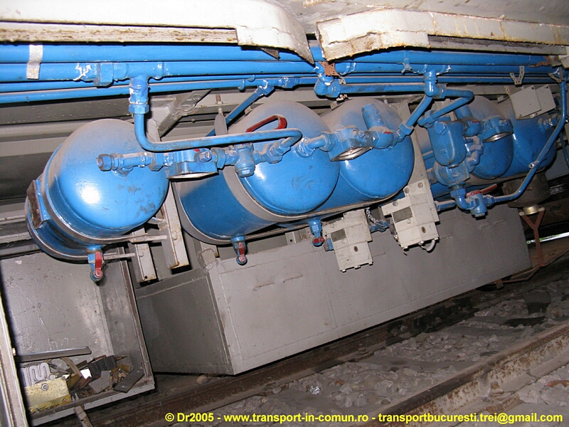 Frâna de urgenţă: pneumatică, la care se suprapune frâna cu resort