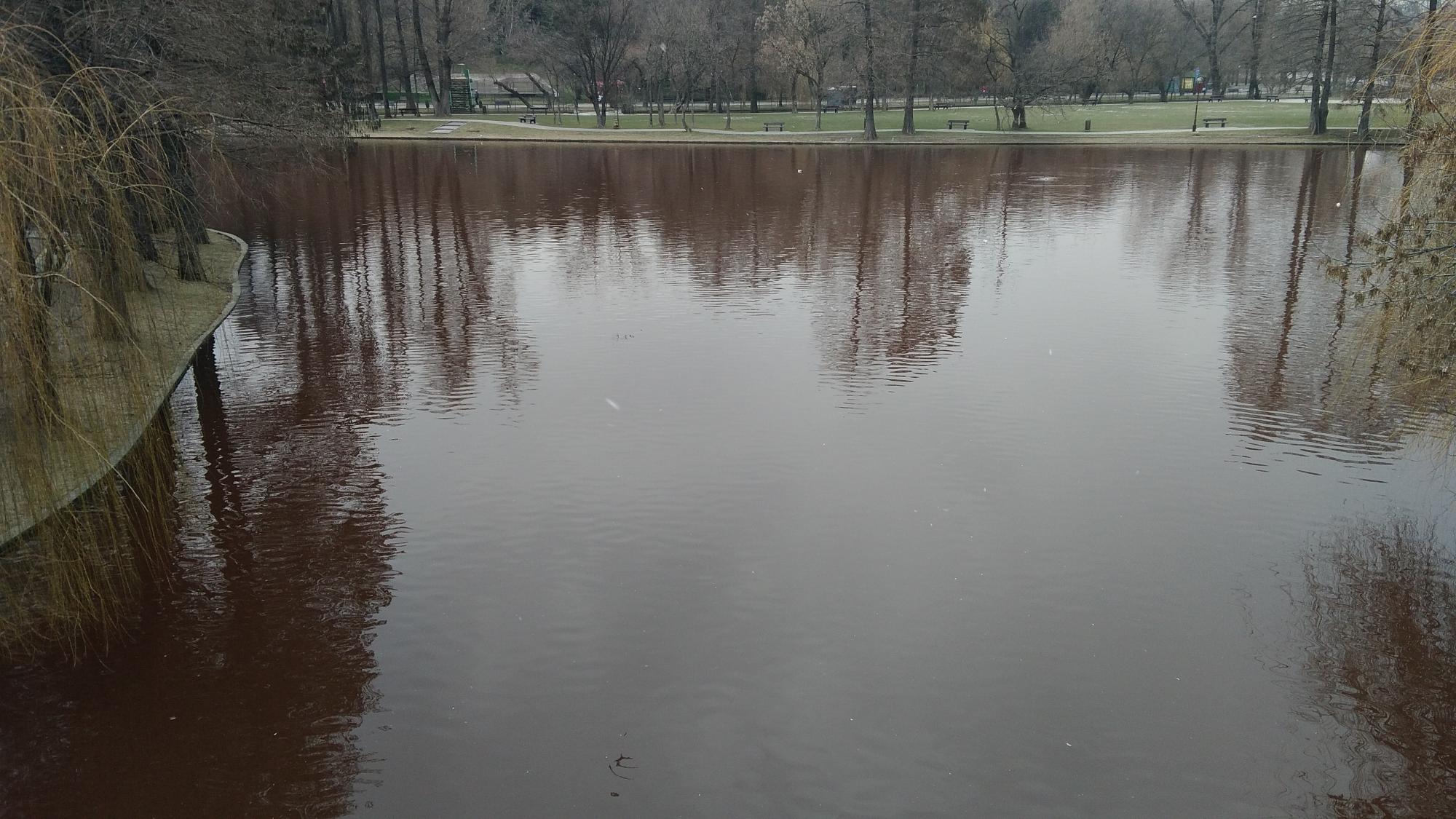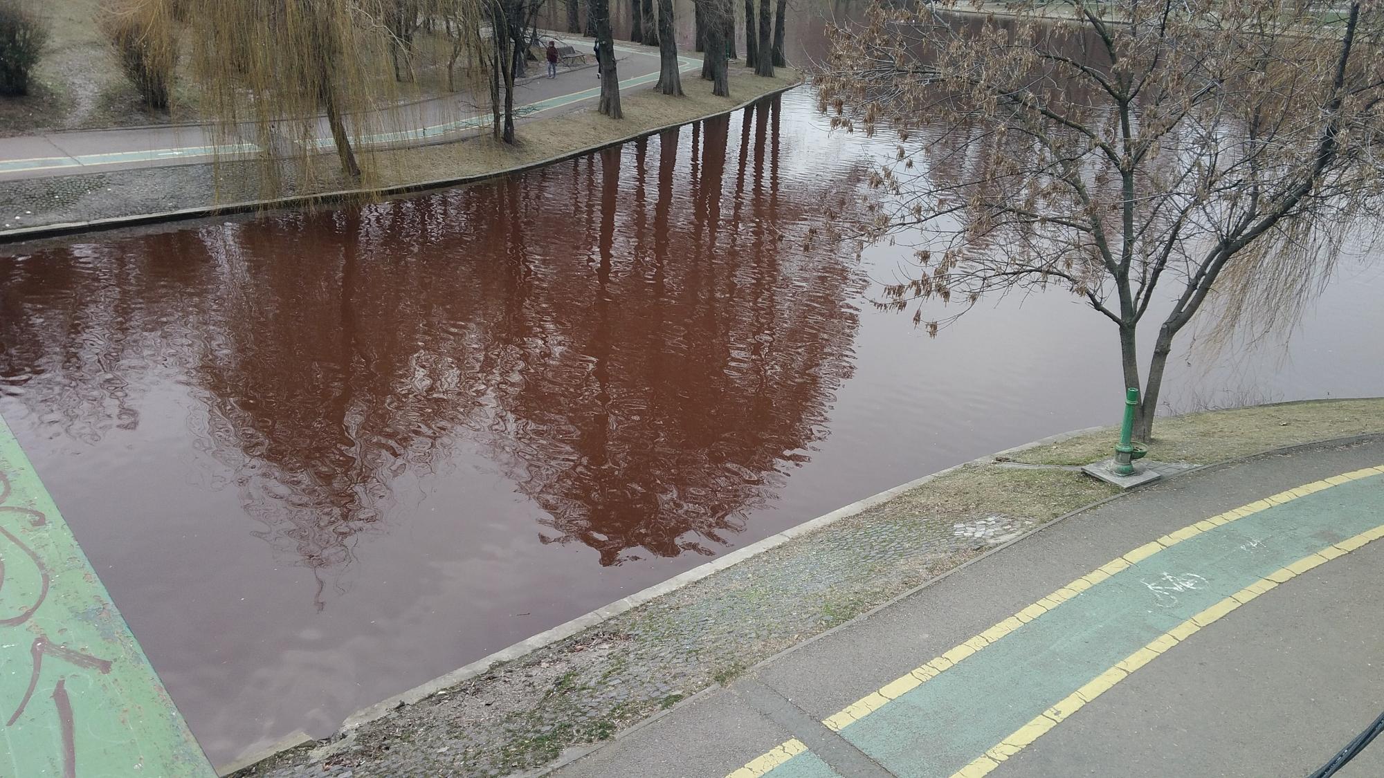Neogita a incercat sa vopseasca rosu lacul IOR? Sau e doar colorantul din pavelele-caramizi infiltrat in apa freatica... Ar fi numai bun de puscarie daca s-ar usca toti copacii din sector de la otrava asta... :evil: