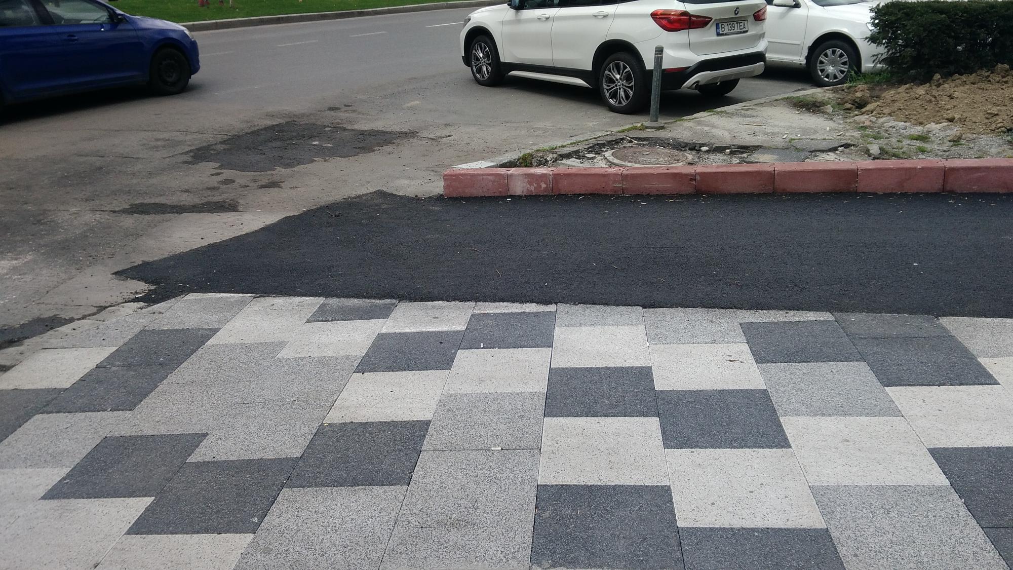 Dupa cum se poate vedea asfaltul trotuarelor este parfect dar cum lui dom primar trebuie sa-i mearga fabrica de caramizi... scuzati, pavele... Va imaginati ca porcariile astea nu vor tine mai mult de doua ierni planeitatea. Unde asfaltul a stat bine mersi mai bine de doua decenii,
