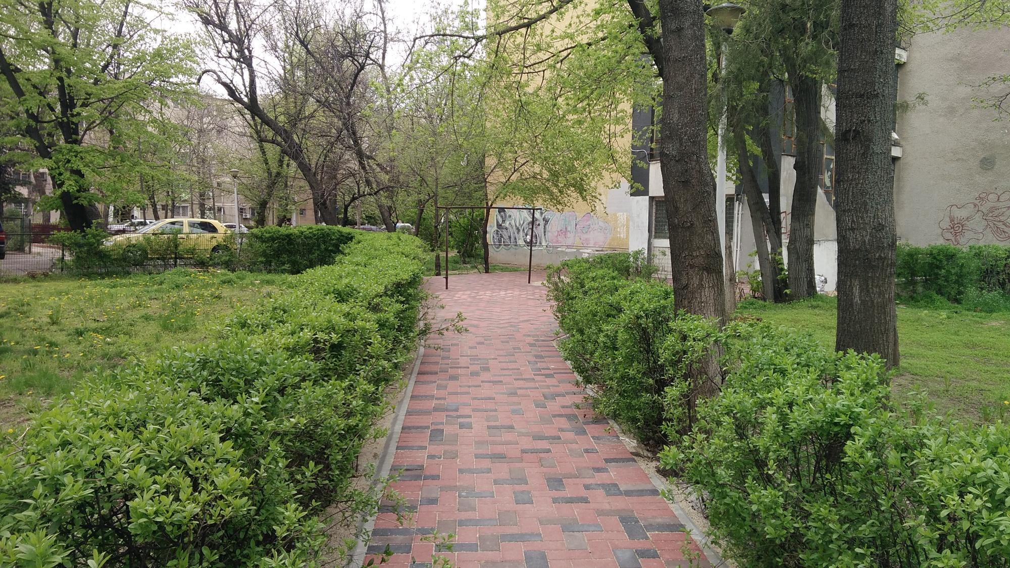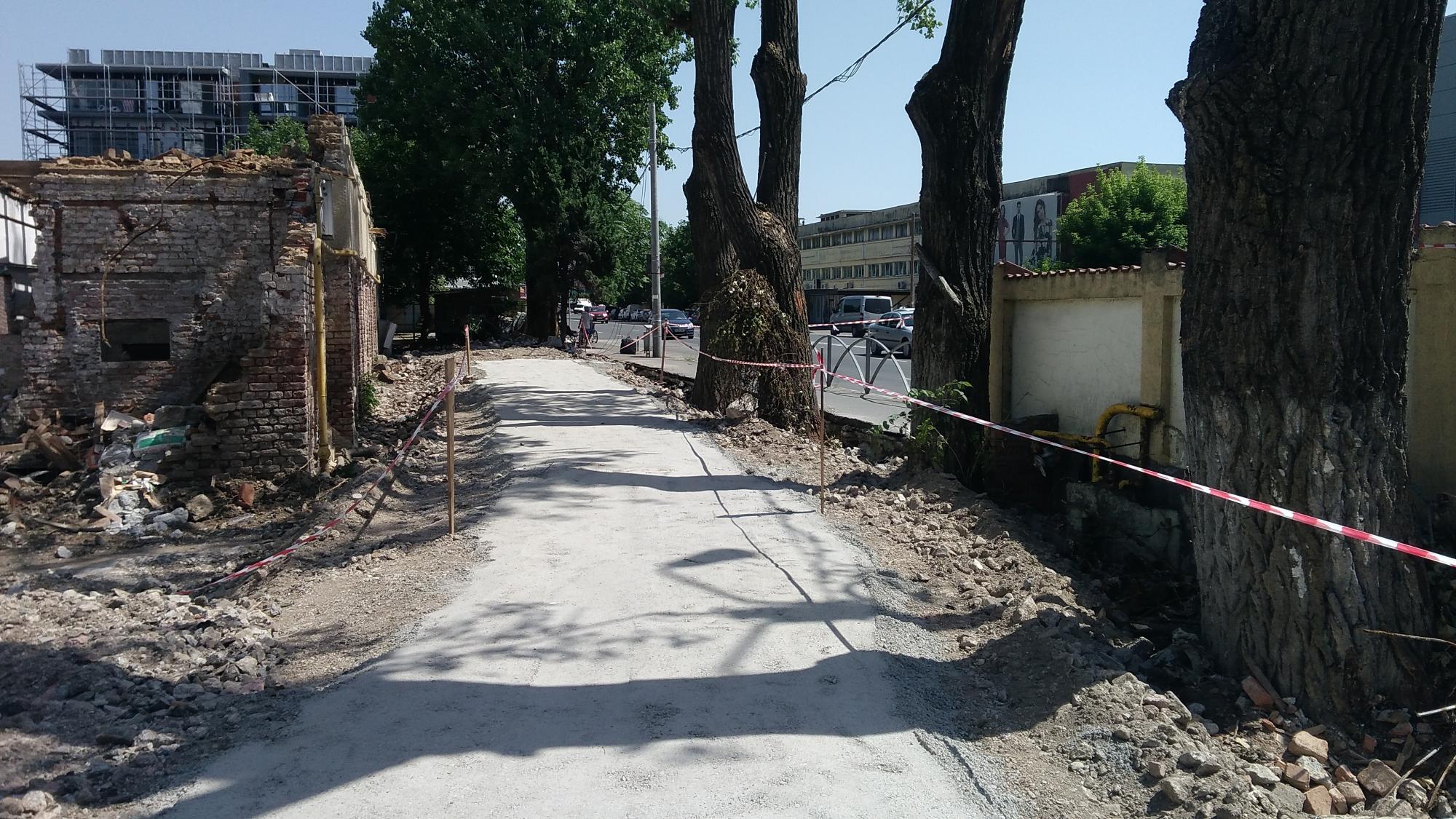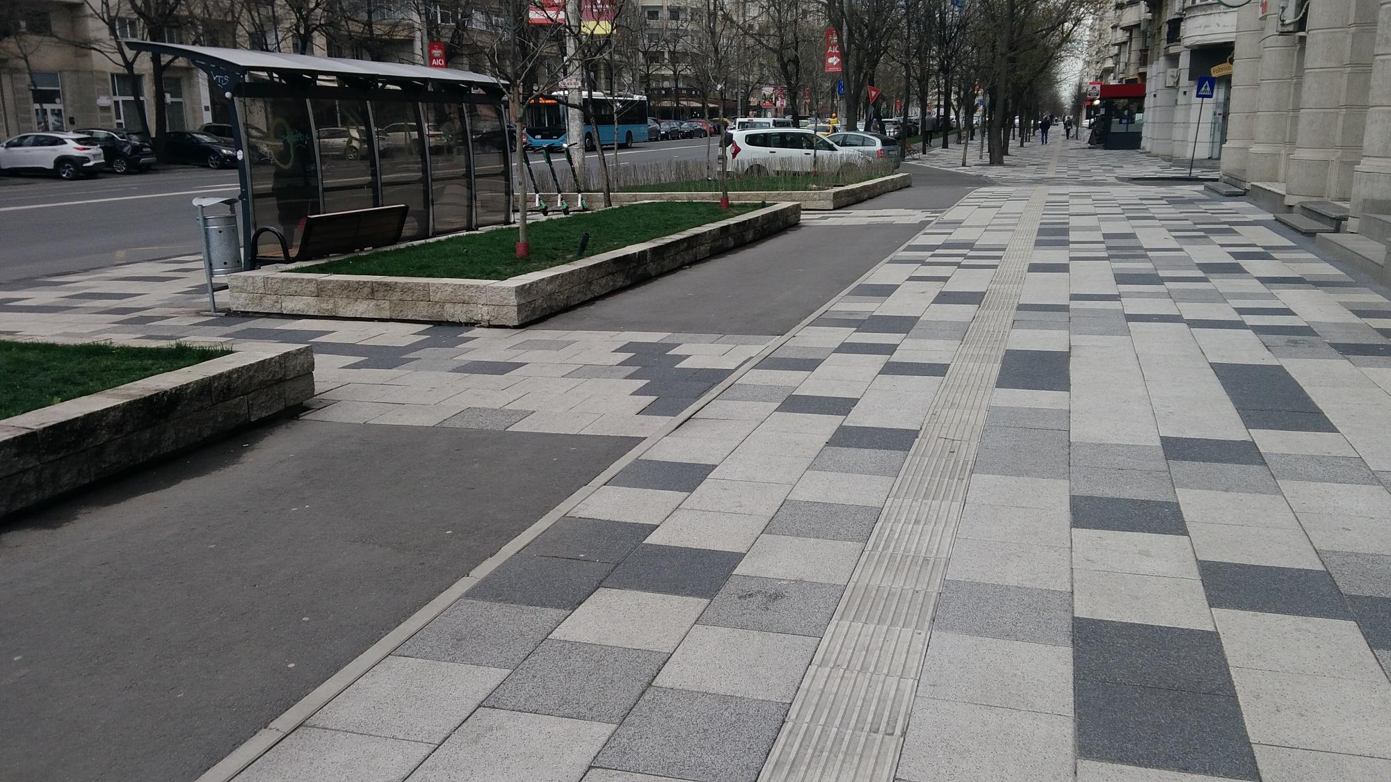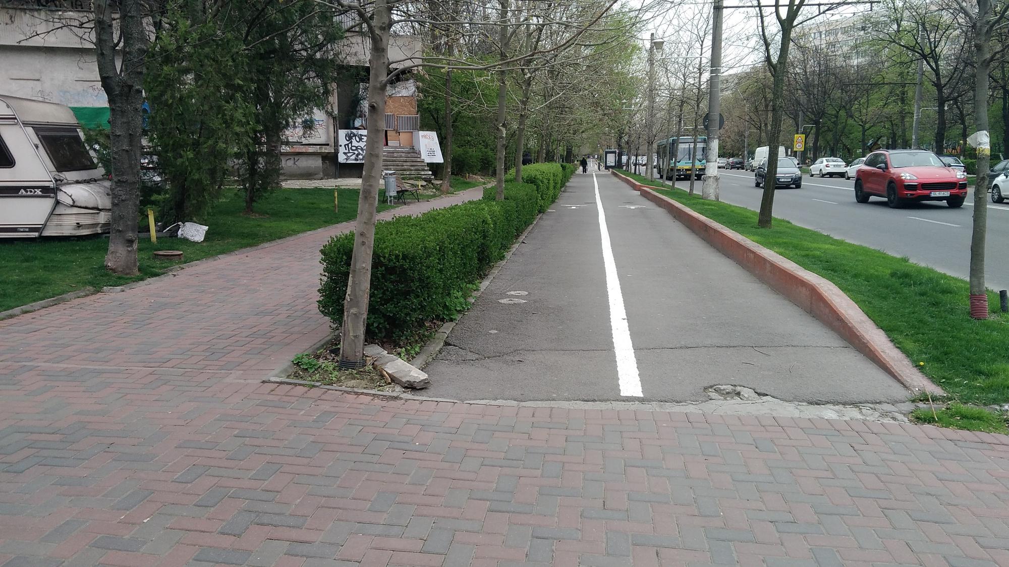 P.S. Sistemul ala de irigare nu pare prea eficient. Si a inceput sa se simta austeritatea intre pavele si asfaltul presupusei piste de biciclete lipseste randul traditional de borduri.