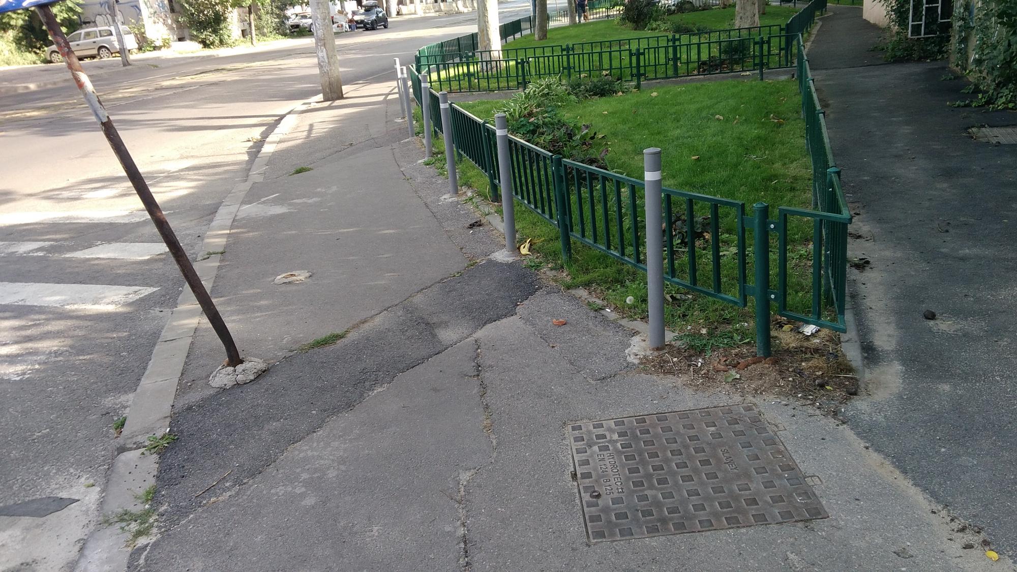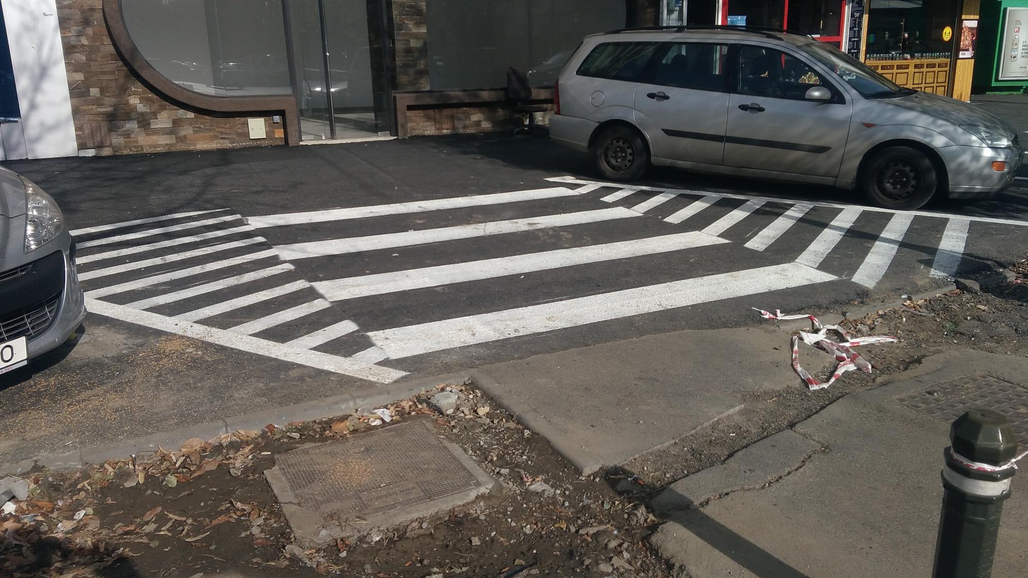 Ce avem aici? O trecere de pietoni! Ce are voie sa faca conducatorul de vehicul pe trecerea de pietoni? EI bine conform regulamentului rutier... nu are voie sa opreasca, sa stationeze, sa schimbe directia de deplasare, sa intoarca sau sa mearga cu spatele. Si cu siguranta nu are voie sa foloseasca trecerea de pietoni ca rampa de acces! Garcon, o amenda mare la dom' primar s'il vous plait!