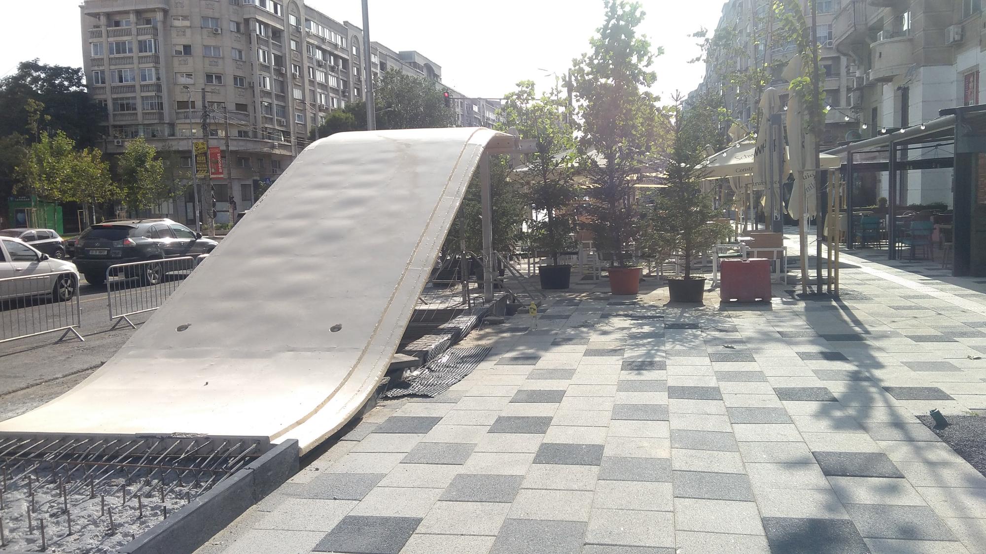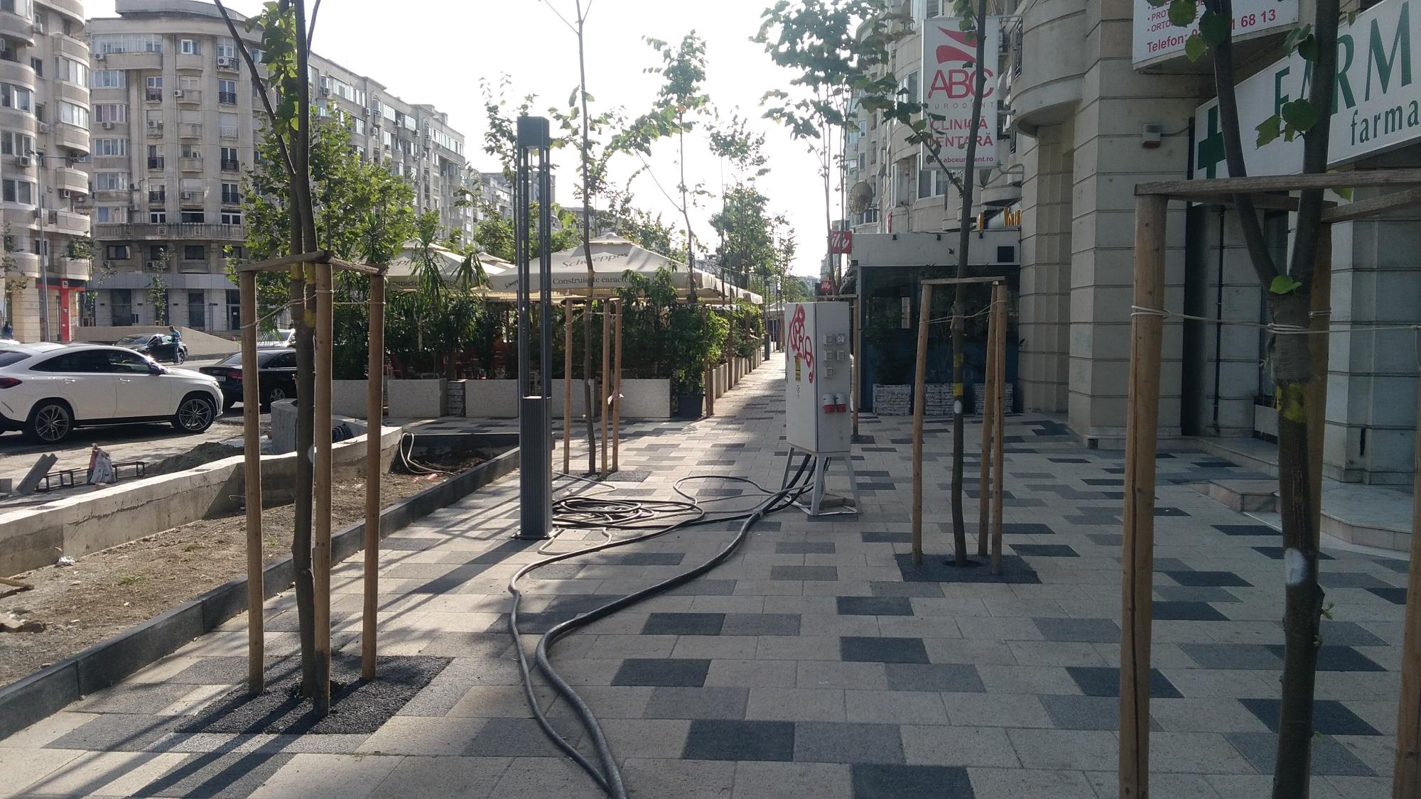 P.S. Un patronache de bodega a trecut linia rosie si s-a mai extins o palma dincolo de pavelele alb-gri cu boschetii si tarabele, pardon, cu mesele, pe pista de biciclete (nefinalizata inca).