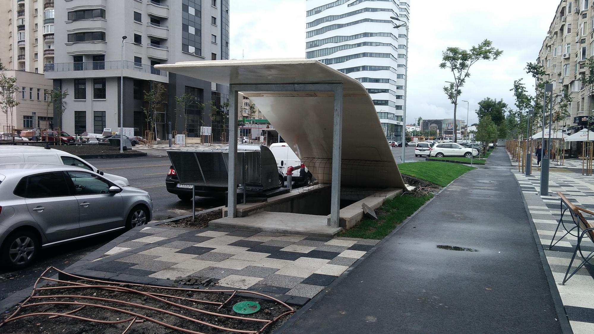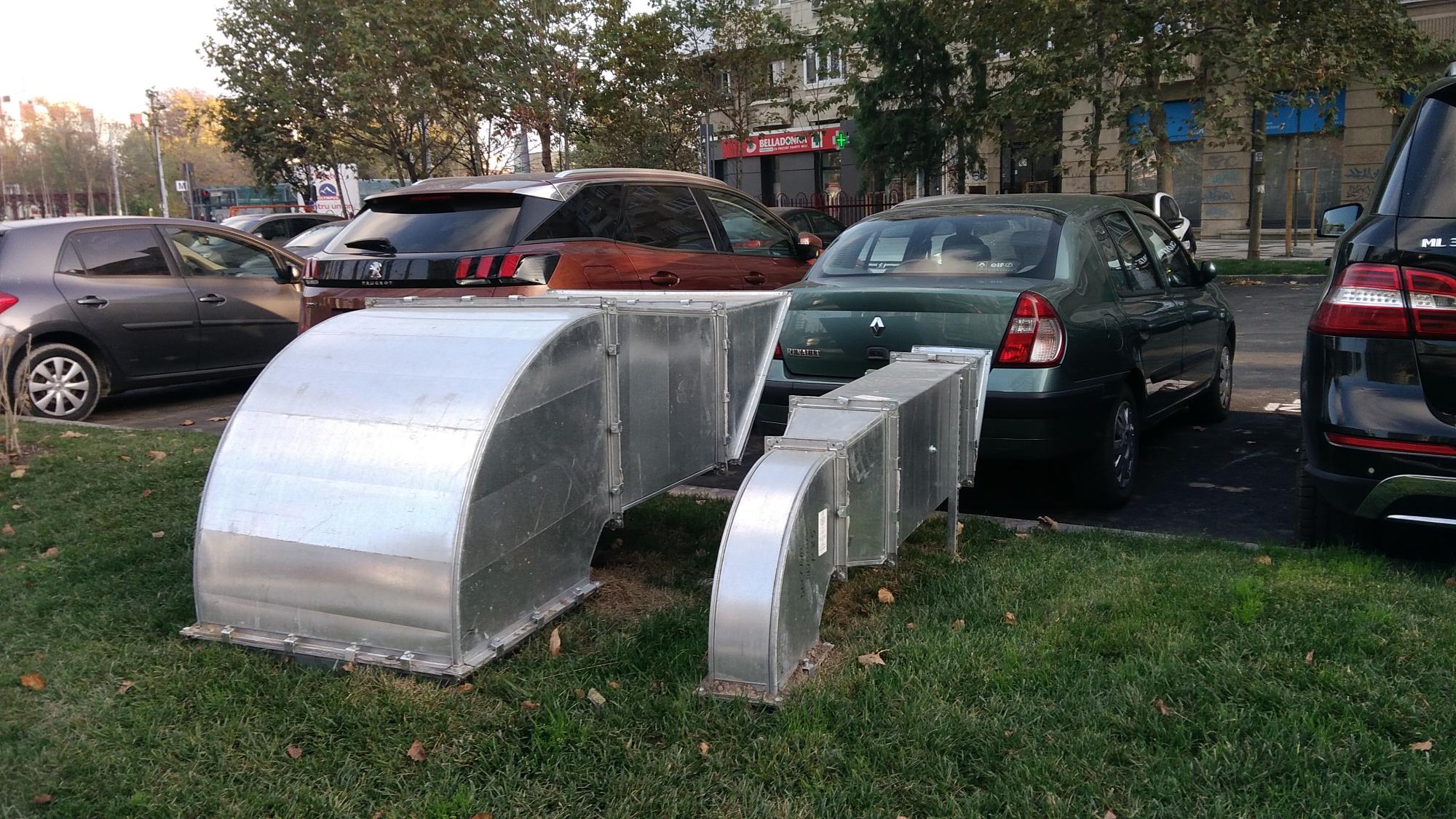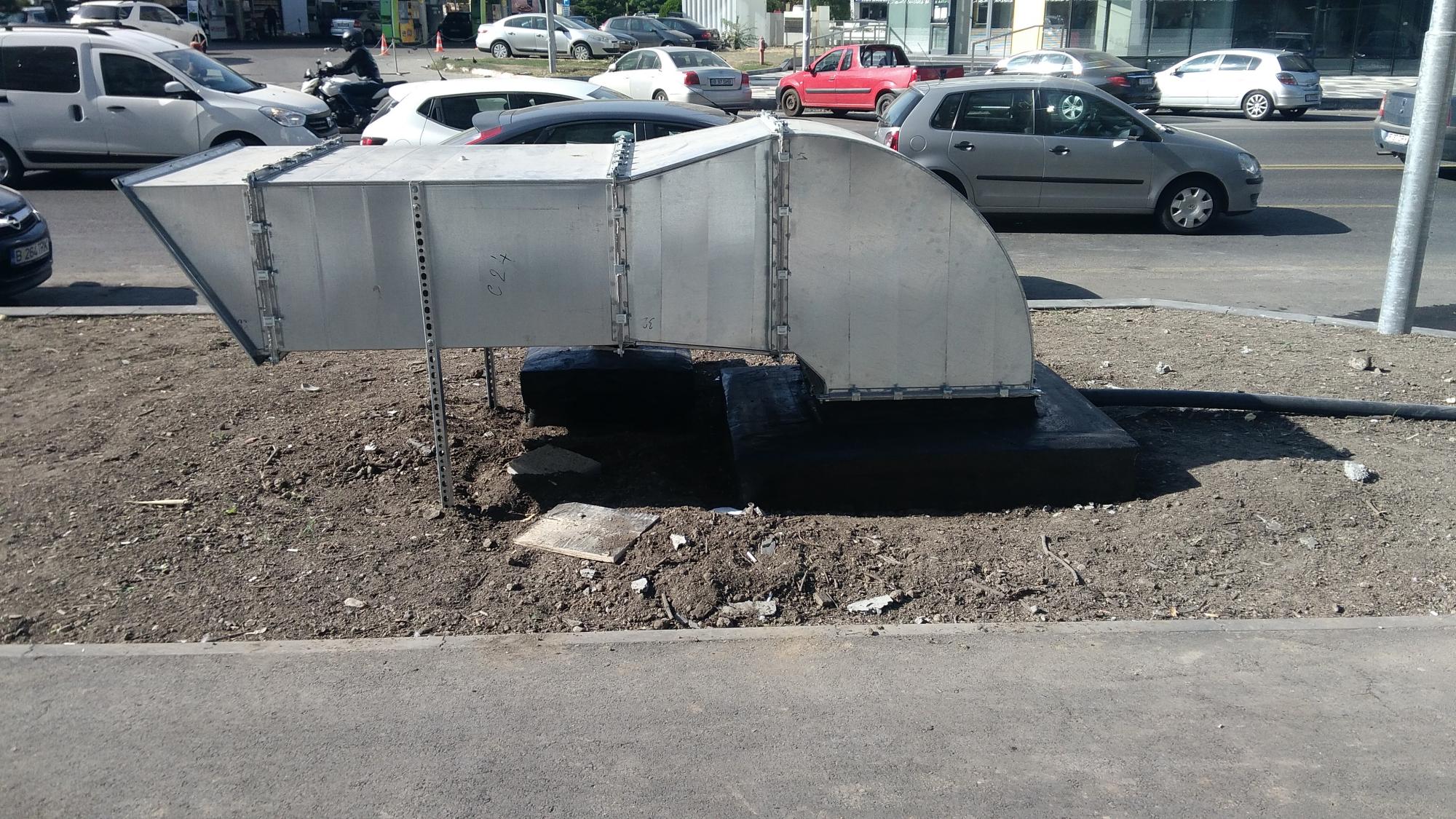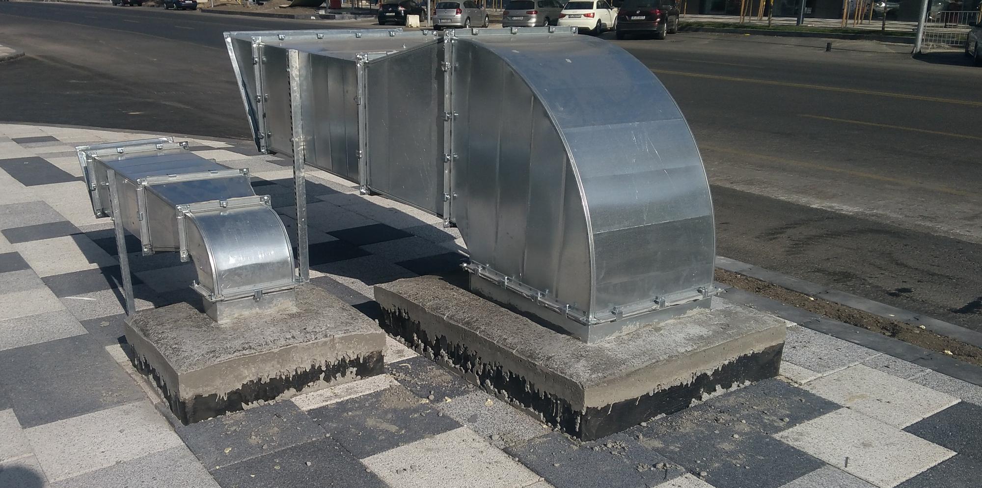 Mda... deci evacuarile astea pentru noxele din subteran sunt destul de rarefiate si au sectiuni destul de modeste raportat la volumul parcarii ceea ce indica... viteza de refulare va fi mare... si zgomotoasa, deci ele trebuiau indreptate musai spre carosabil, nicidecum paralel cu trotuarul sau pista de biciclete...
