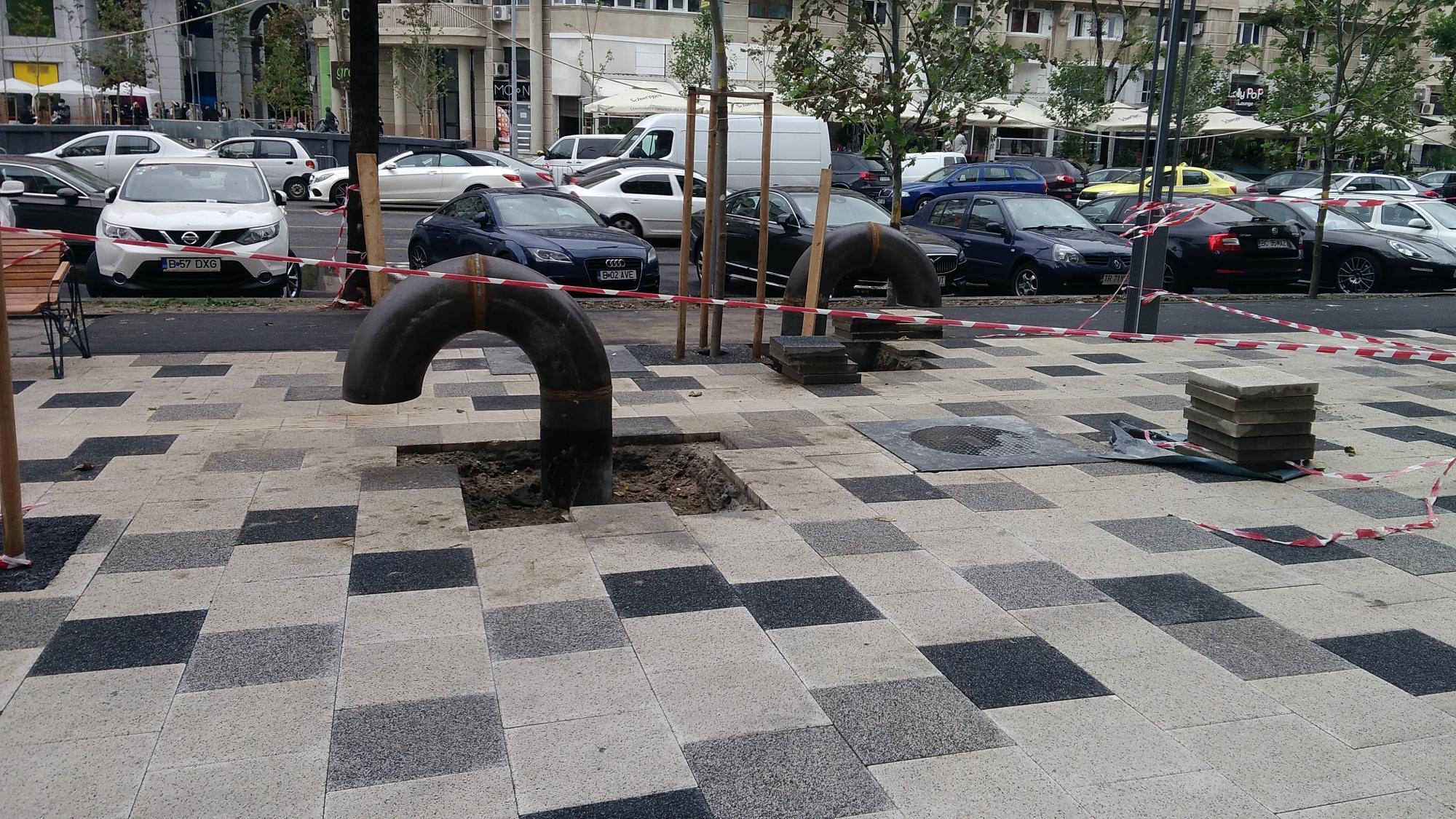 Operatiuni cu acelasi accent de tristete se desfasoara si la Pasajul Doamna Ghica, unde canalizarea este tratata punctual foarte superficial (la nivel de fundare si etanseitate), ca nu e la vedere.