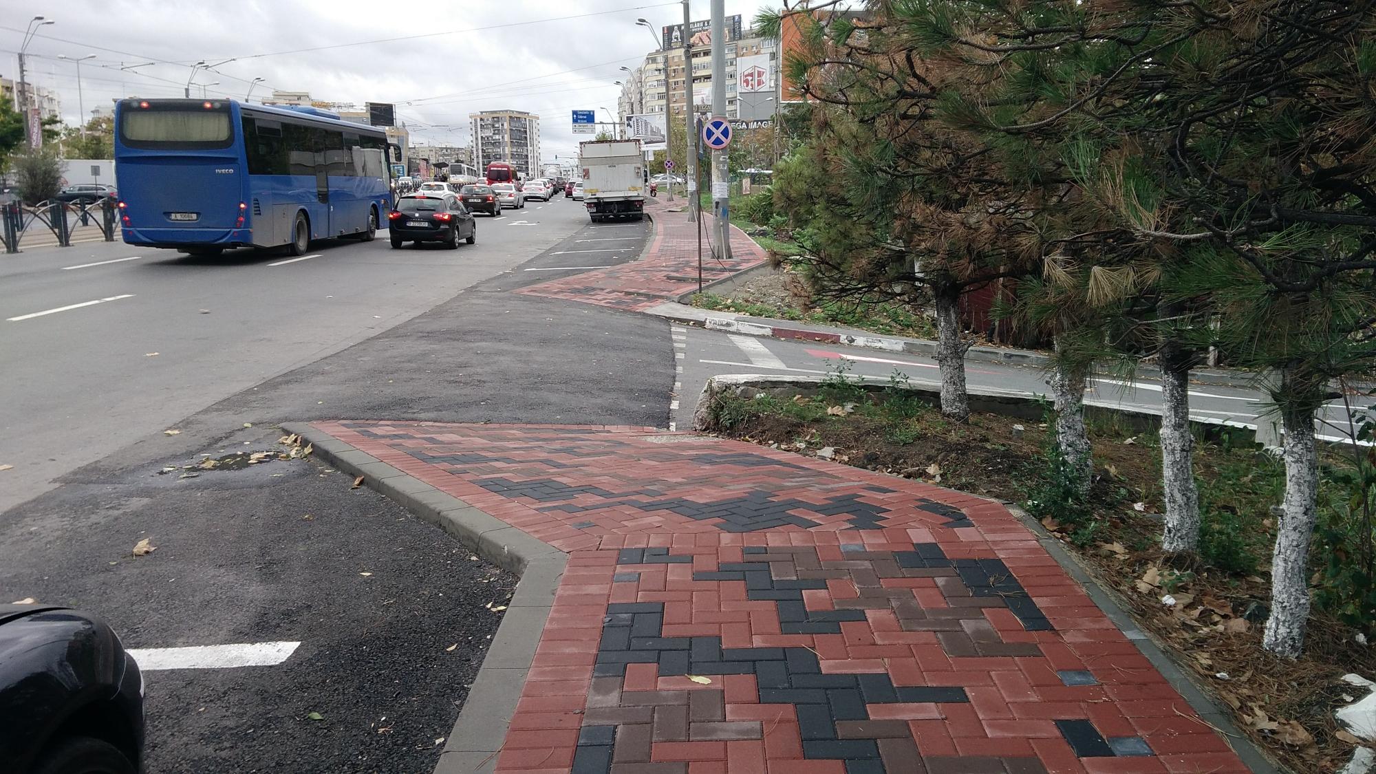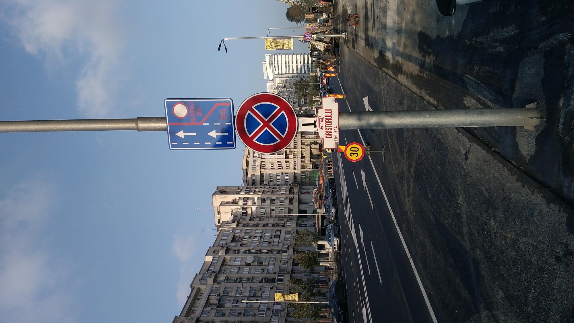Avem indicator de oprirea interzisa dar ma intreb... alveolele astea de pe dreapta nu seamana cu o parcare in spic? Indicatorul eptnru banda bus este comandat incorect, lipseste o banda de circulatie pe el.