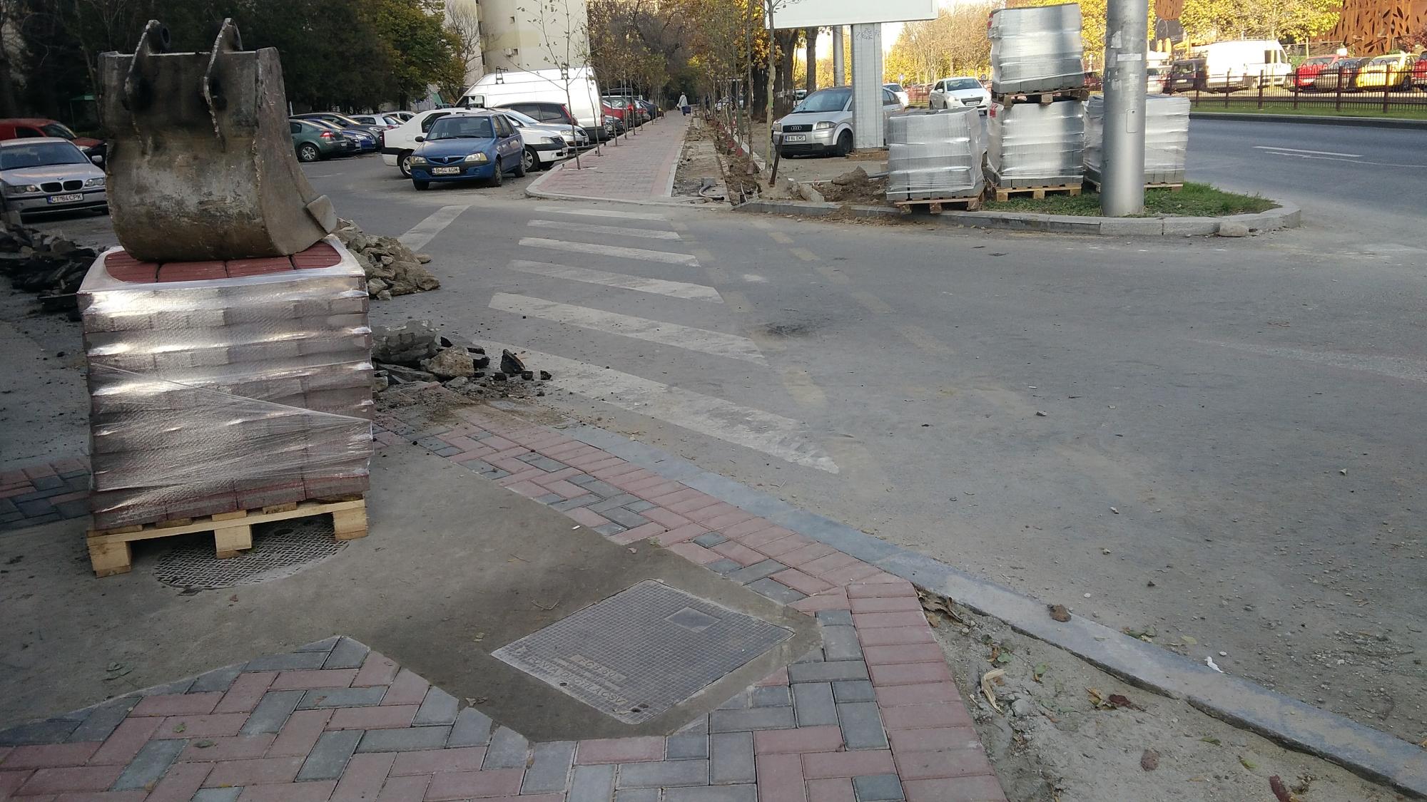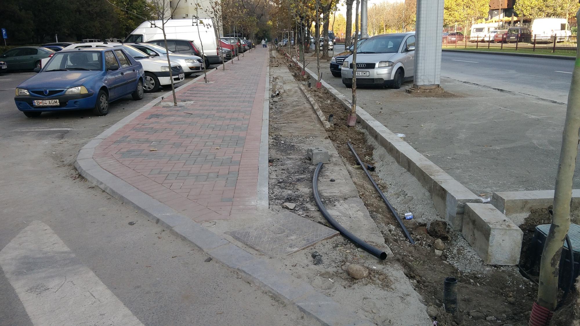 Se acopera cu pamant pe la accesul auto principal de la alveola, sens Muncii. Si se mai rade asfalt in alveola dintre stalpii de iluminat.